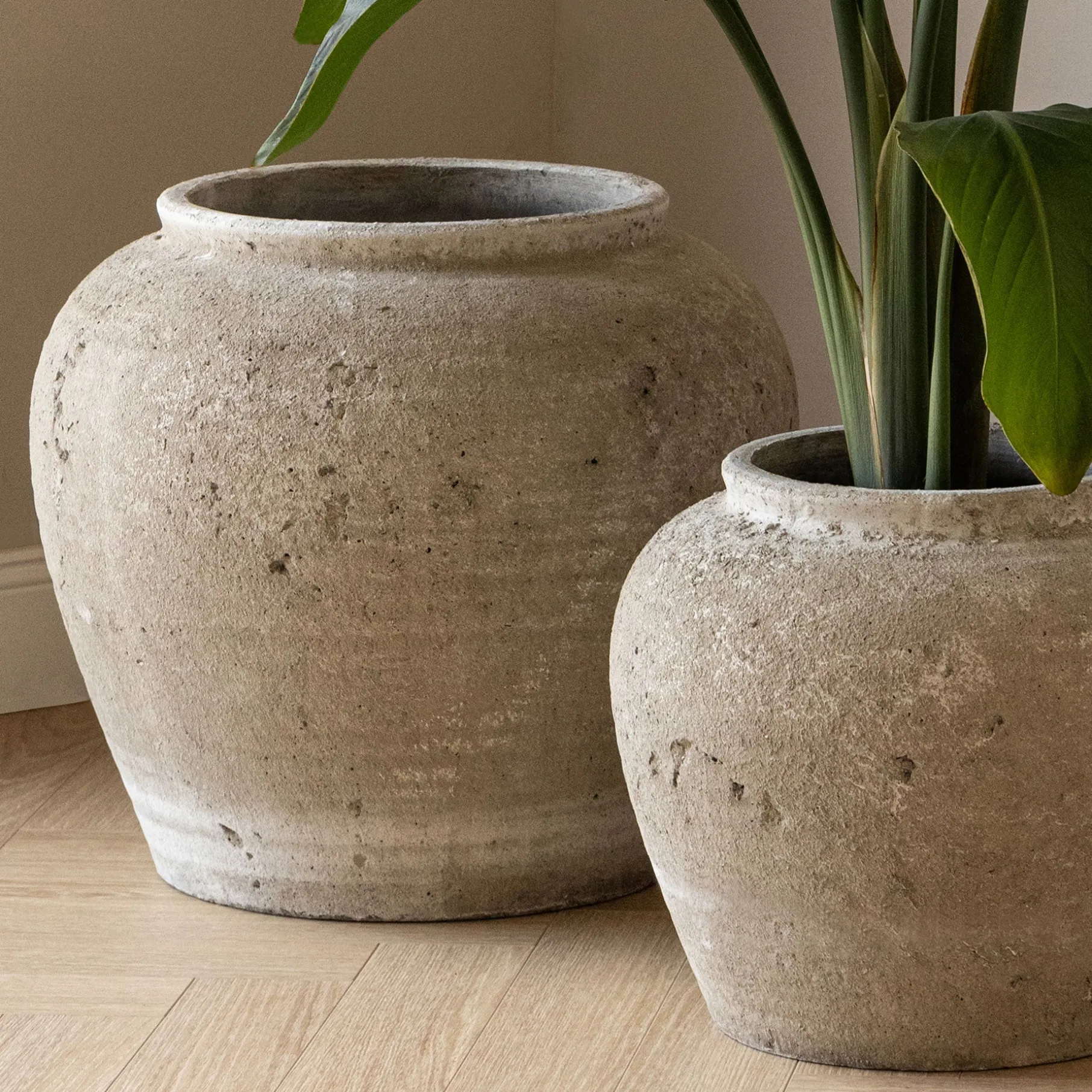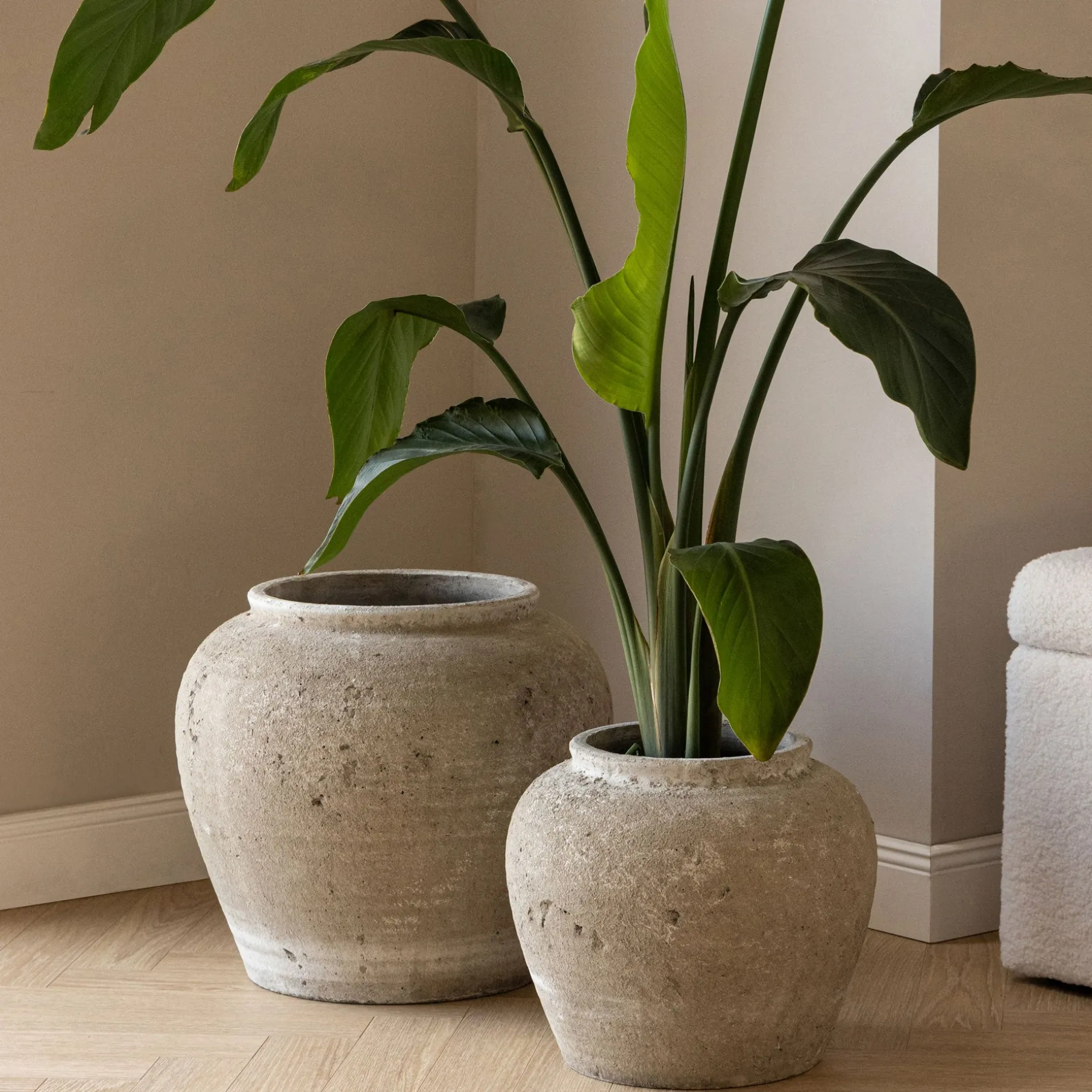 Urtepotte i cement med et rustikt udtryk, som kan bruges til alle typer og størrelser af planter. Urtepotterne har en lukket bund.