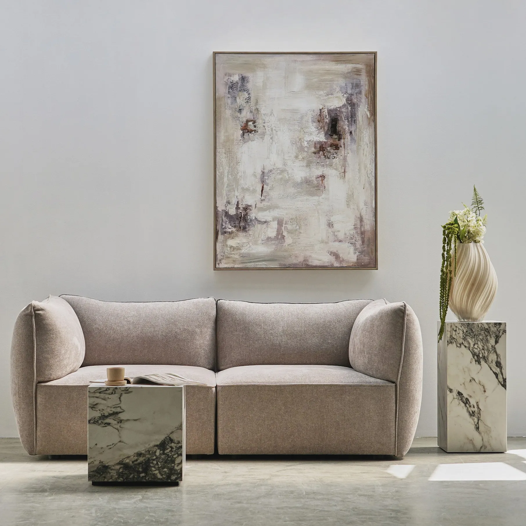 Sæderne er polstret med fast skum og afsluttet med et blødt lag dun, som giver en dyb, loungevenlig komfort. En sofa, der inviterer til ro og samvær – hver dag.
