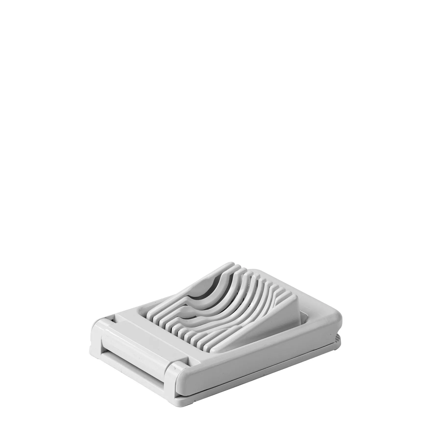 Simpel æggedeler i hvid plast, der kan adskilles for nemmere rengøring.