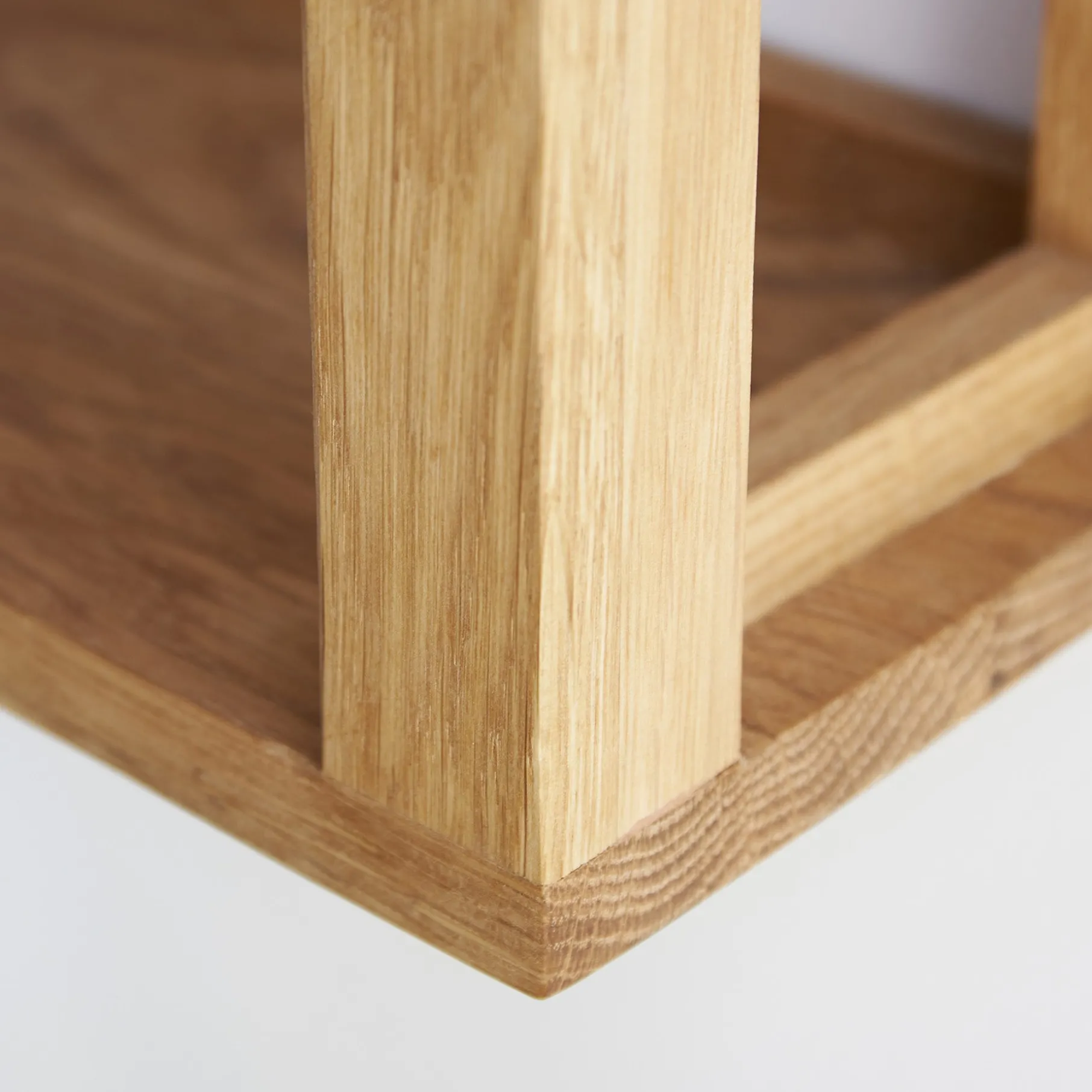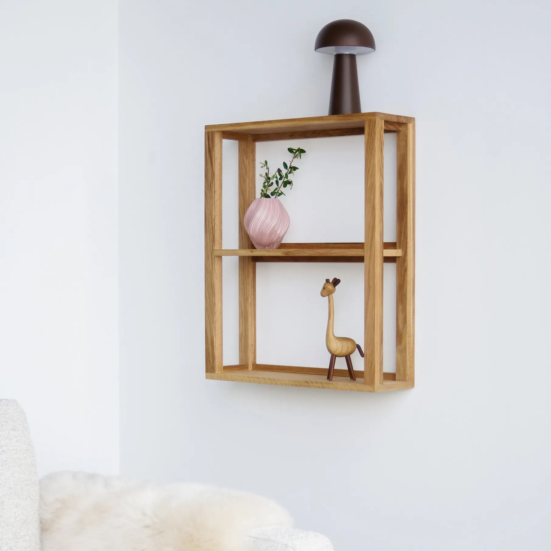 Tilføj både funktionalitet og æstetik til dit hjem med Akeru II væghylde. Denne stilrene væghylde er fremstillet i FSC-certificeret olieret egetræ. Med sine to rummelige hylder giver Akeru II dig mulighed for at udstille dine yndlingsdekorationer, bøger eller planter på en elegant og organiseret måde.
