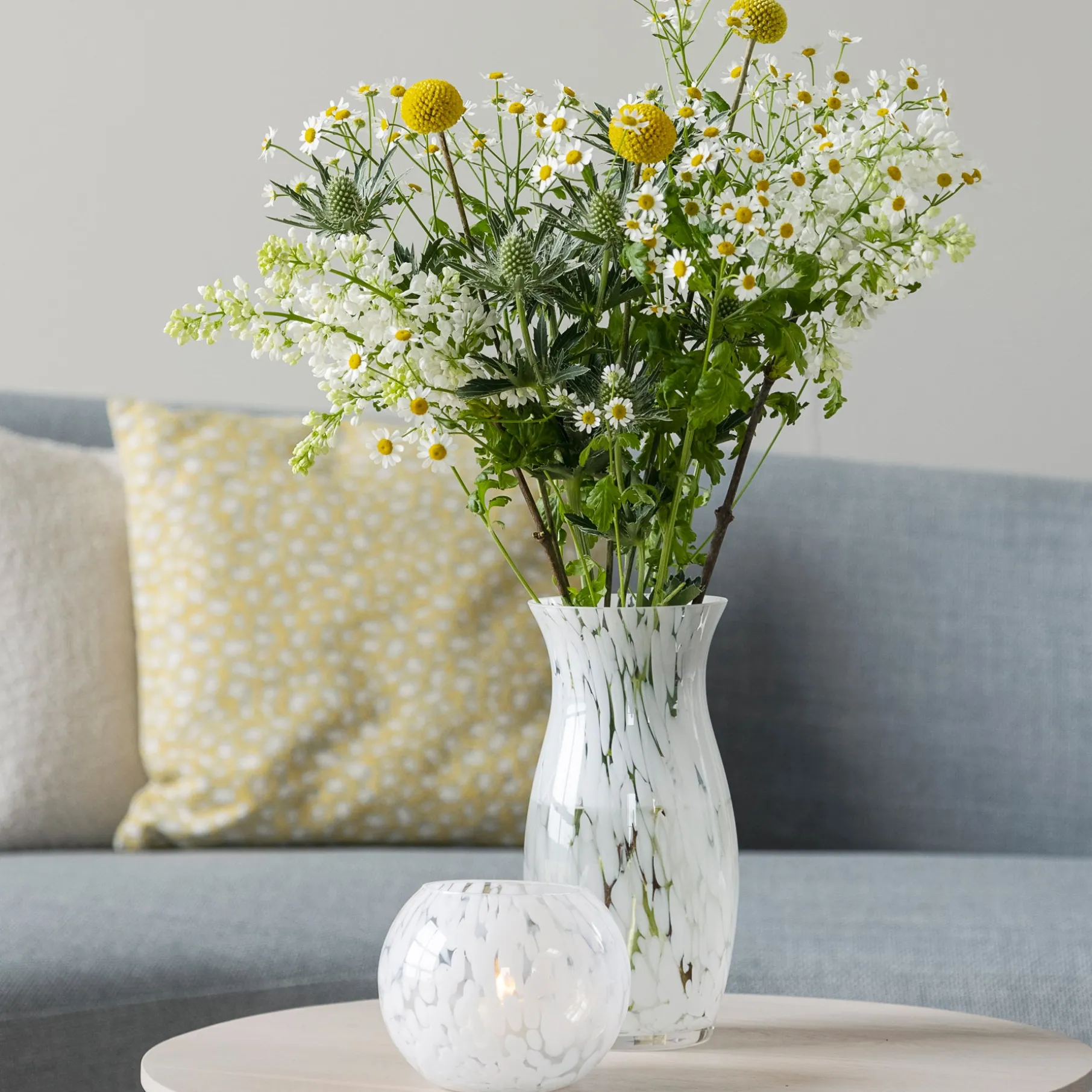 Da vaserne er mundblæste, varierer de i udtrykket, og er derfor helt unikke med hver deres særpræg – der findes altså ikke to, der er ens. De fine pastelfarvede mønstre spreder glæde på borddækningen og lyser indretningen op med glade nuancer, som man ikke kan få nok af.