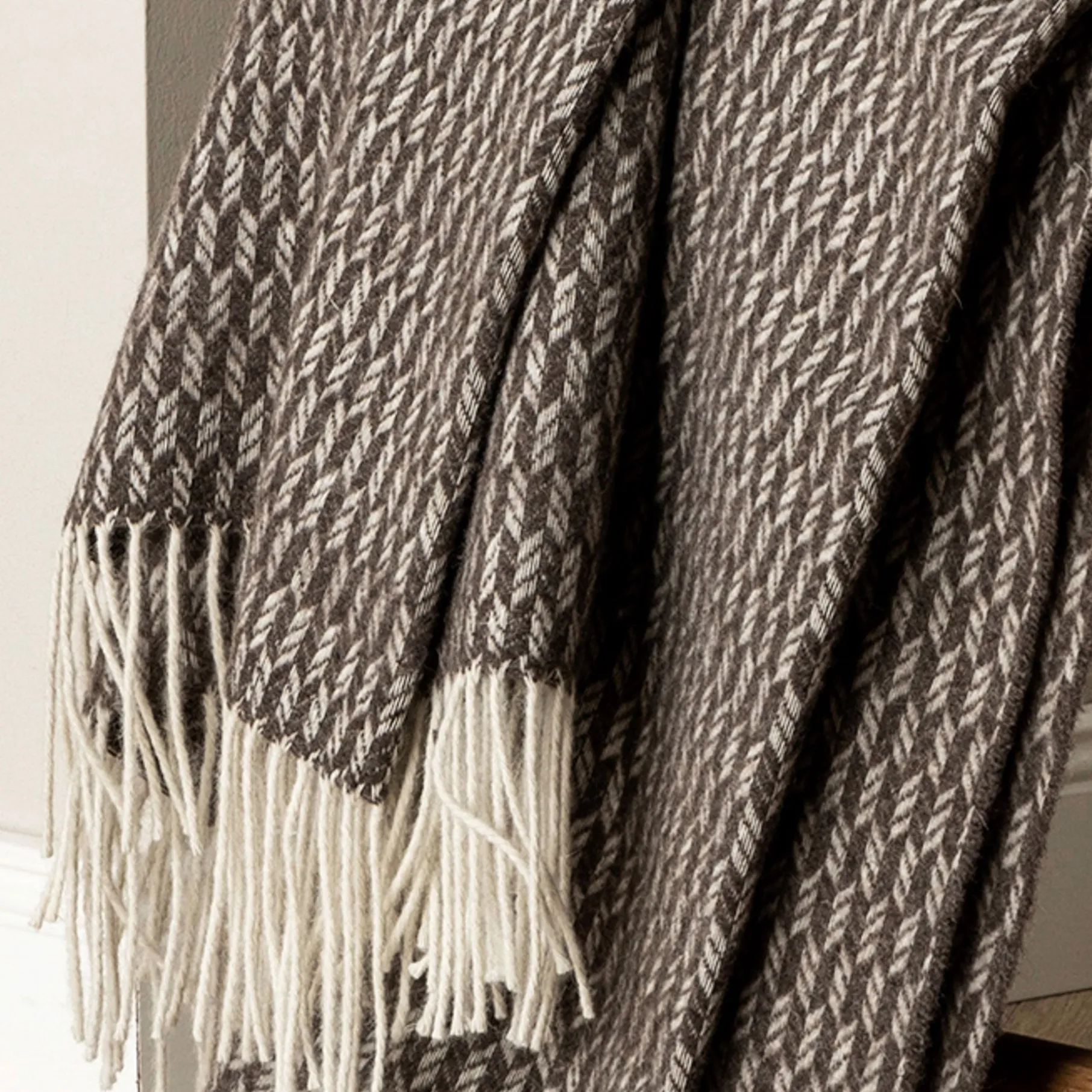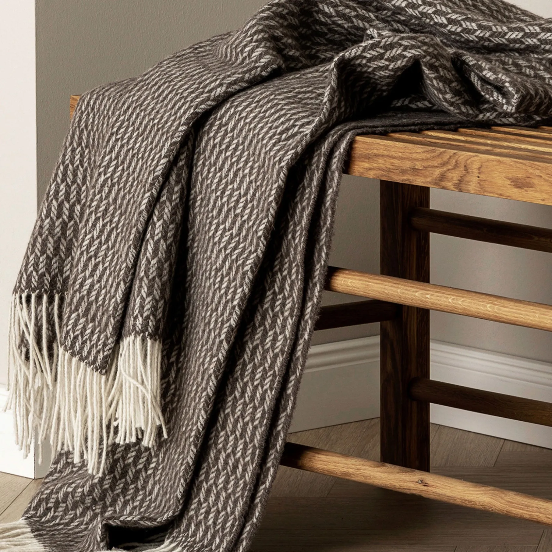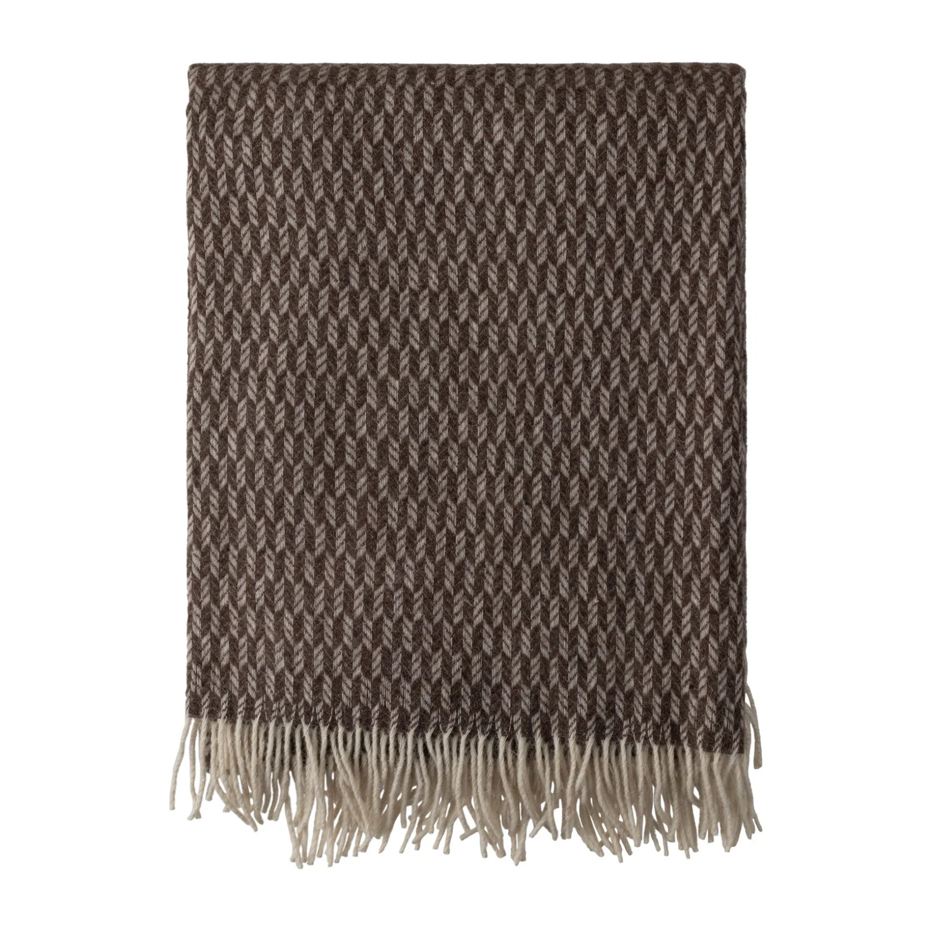Hold varmen med denne lækre bløde plaid, som indeholder 80% merinould og dermed har gode varmeegenskaber. Plaiden har et tidløst mønster og frynser i begge ender.