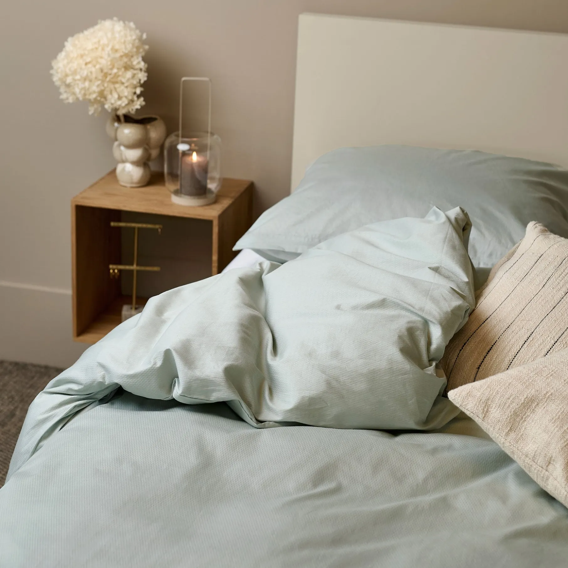 Tilgængelig i to størrelser – 140×200 cm og 140×220 cm – passer Arrow sengetøjet til både standard og ekstra lange dyner. Vælg mellem tre smukke farver, der hver især skaber en unik stemning: