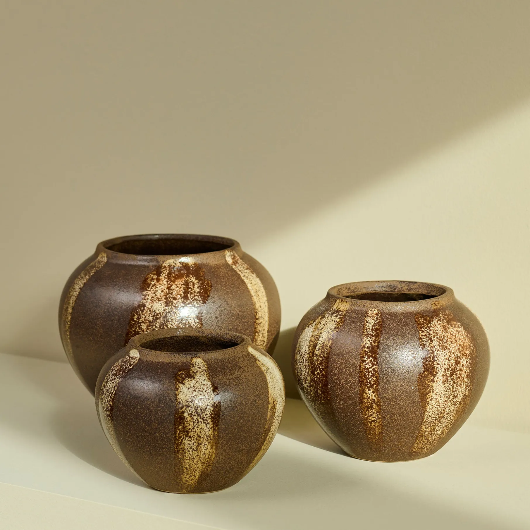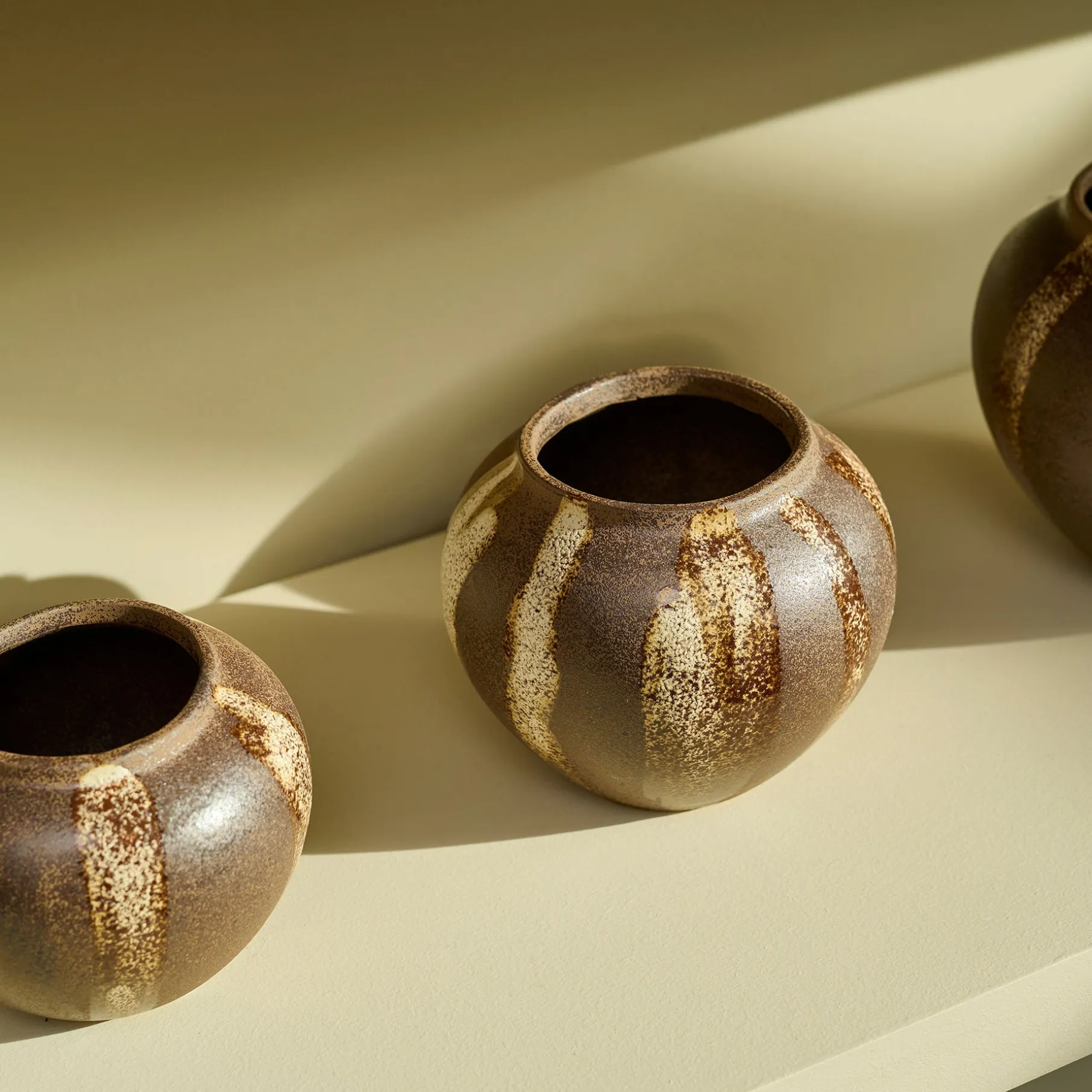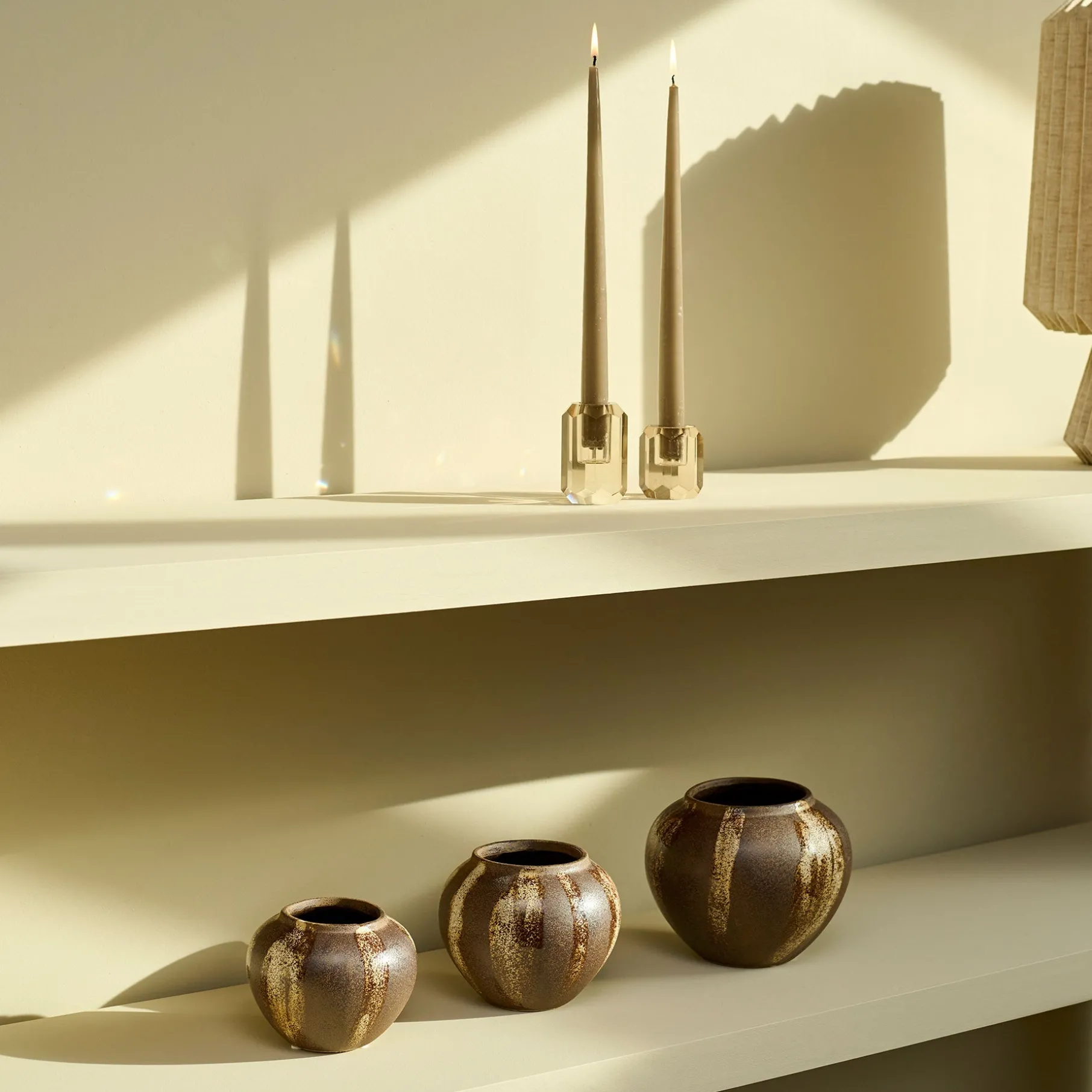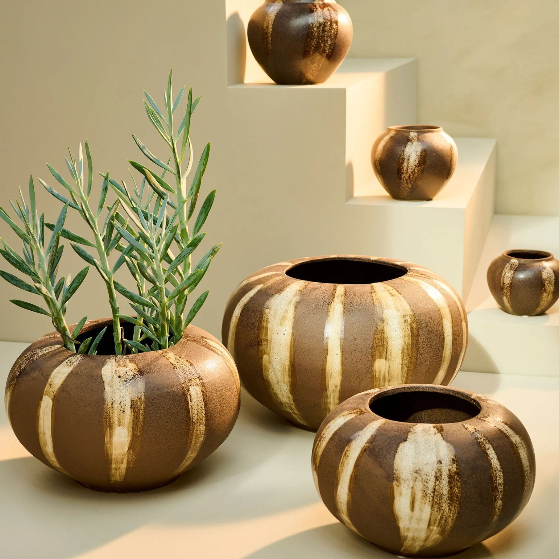 Hver genstand i Arti-serien er lavet af stentøj og er håndmalet med omhu. Den rustikke struktur i cremede beige og brune farver giver hvert stykke en unik karakter, der taler til naturens æstetik. De organiske former, inspireret af naturen selv, bringer en følelse af ro og harmoni ind i dit hjem.