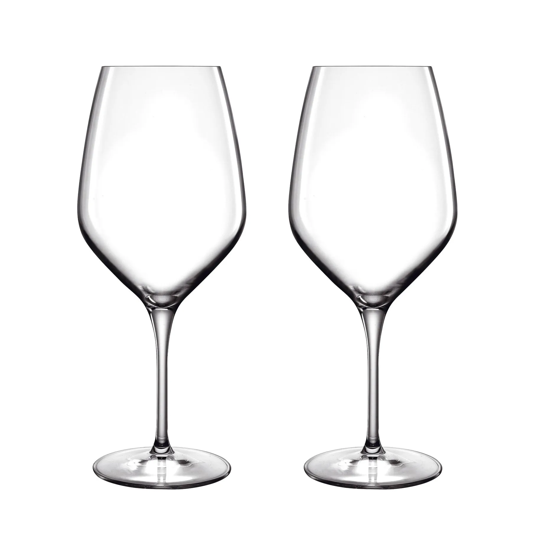 Sæt med to stilfulde vinglas, der er designet til at fremhæve smagen og aromaen af rødvine som Merlot.
