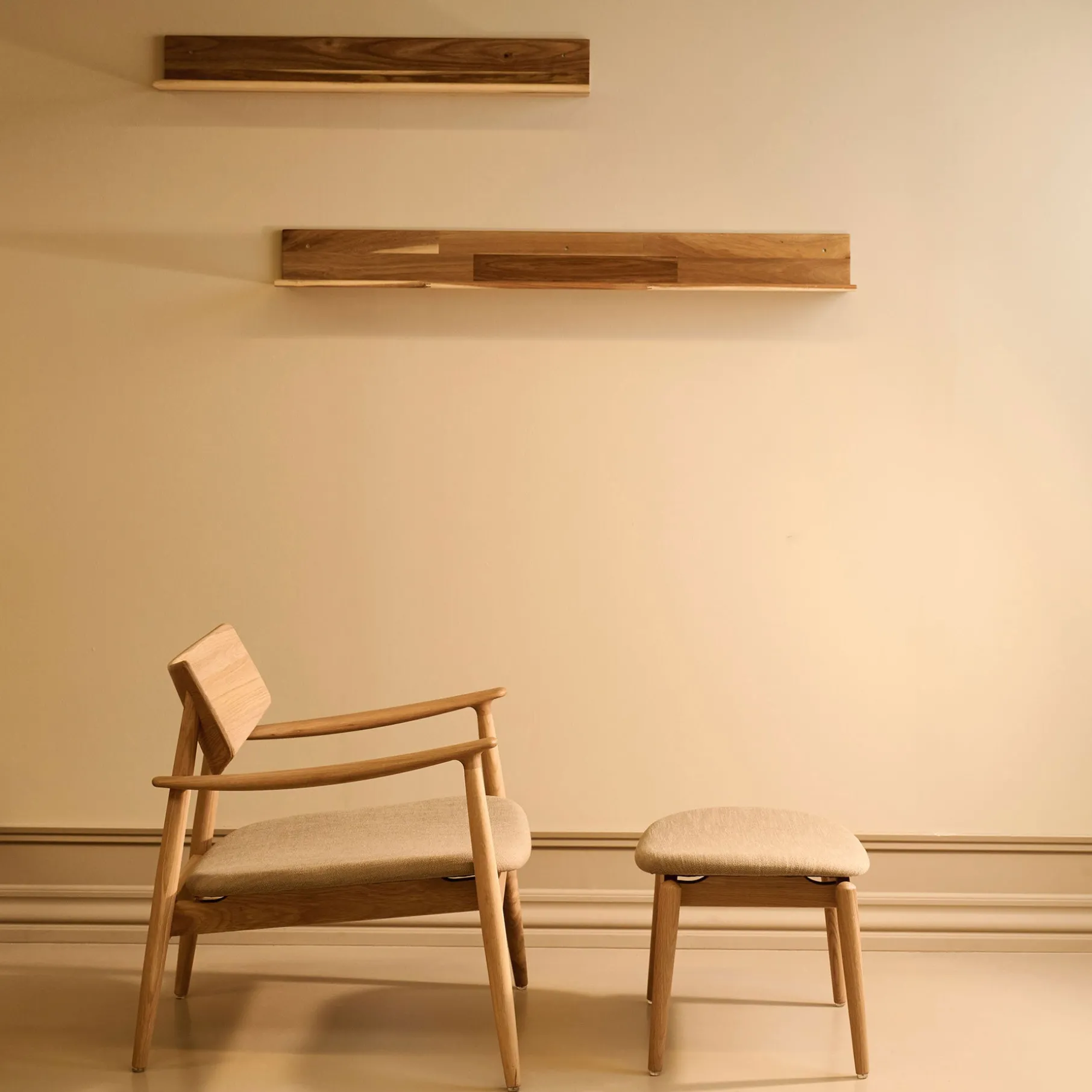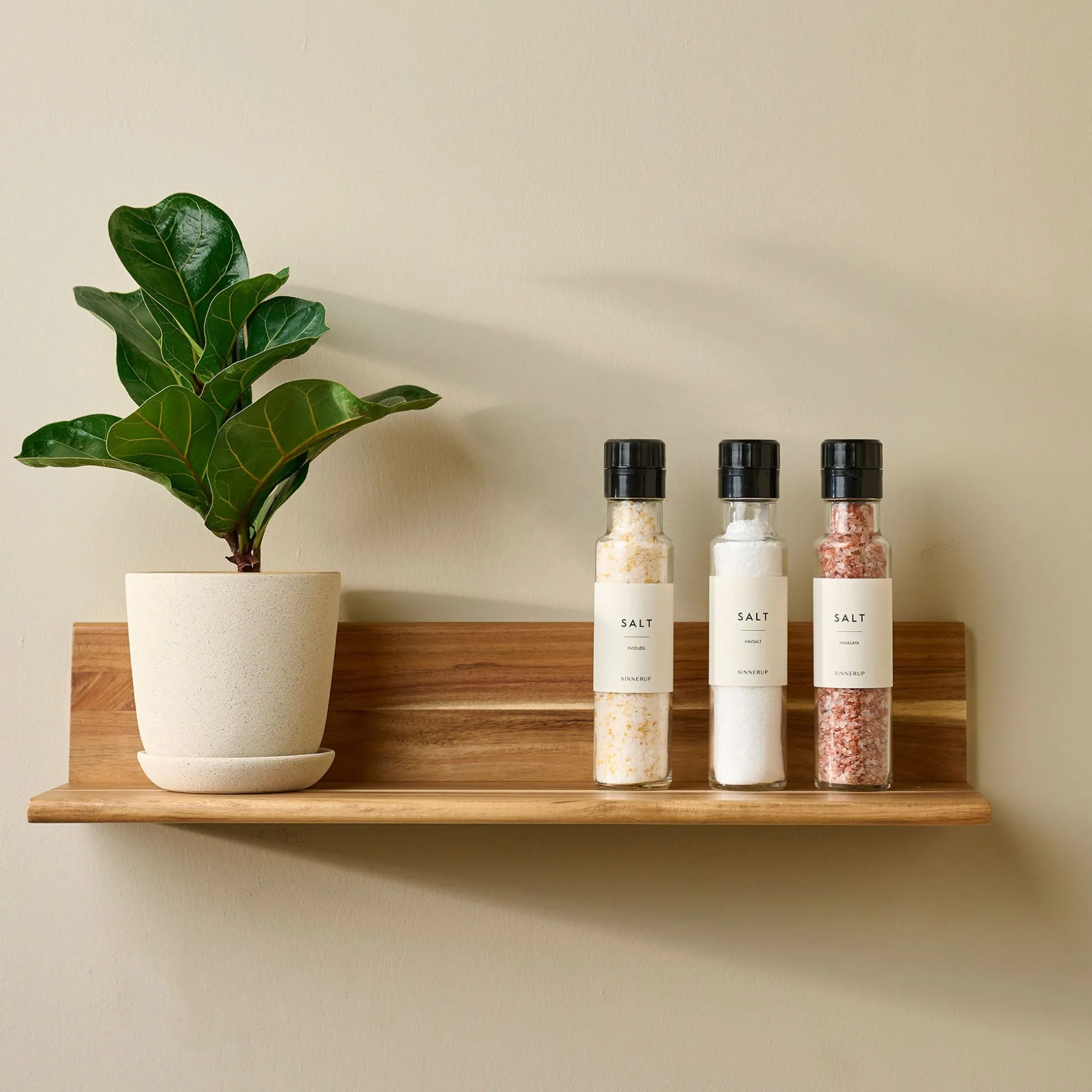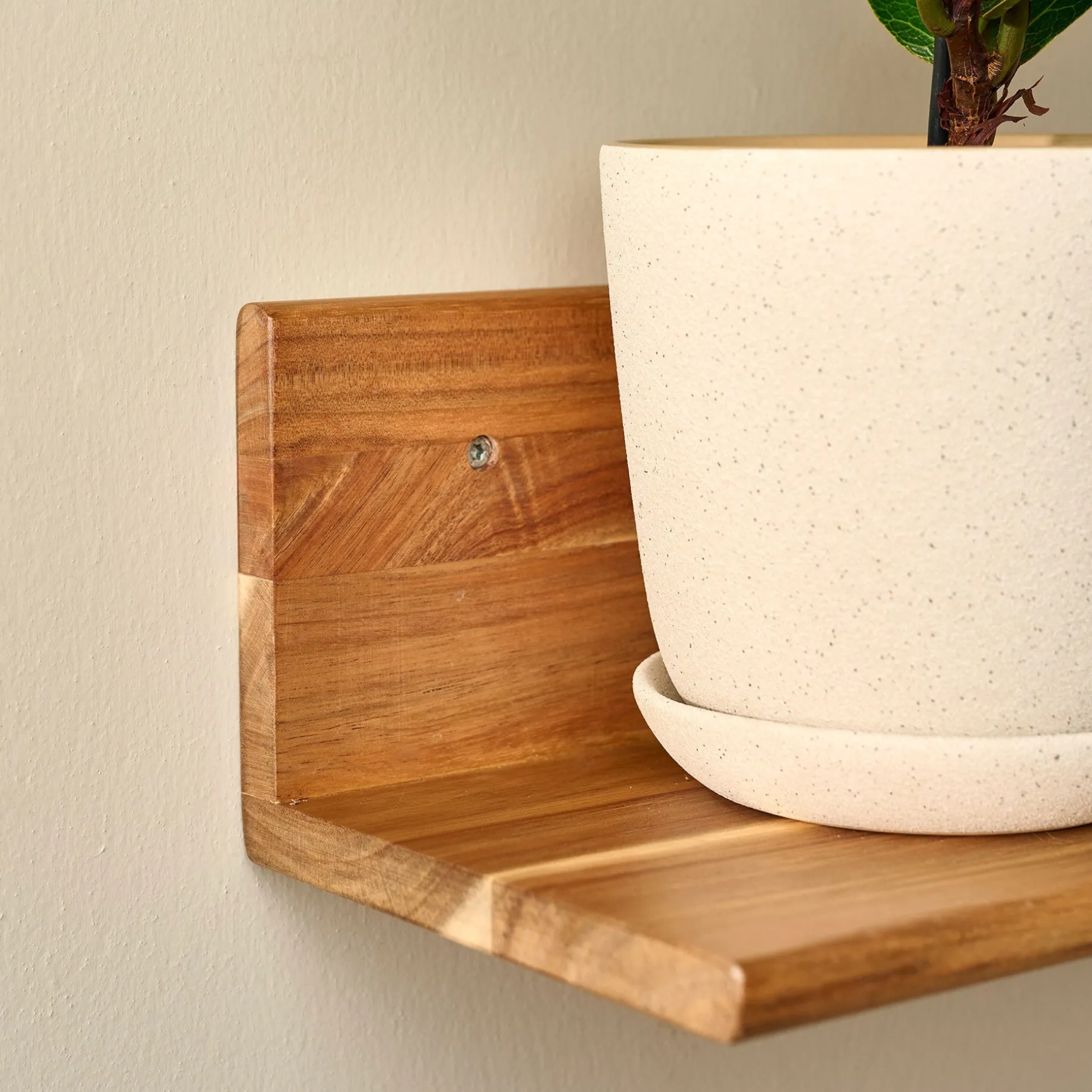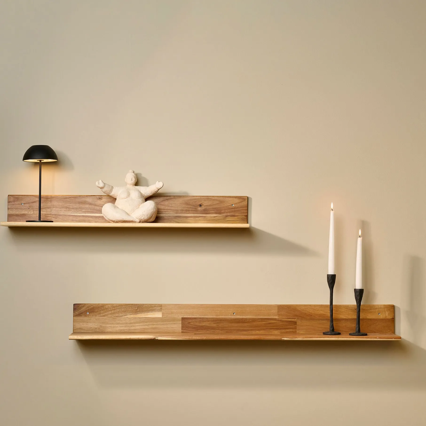 Da hylden er udformet af akacietræ følger farven træets naturlige udtryk, og hver hylde er derfor unik.
