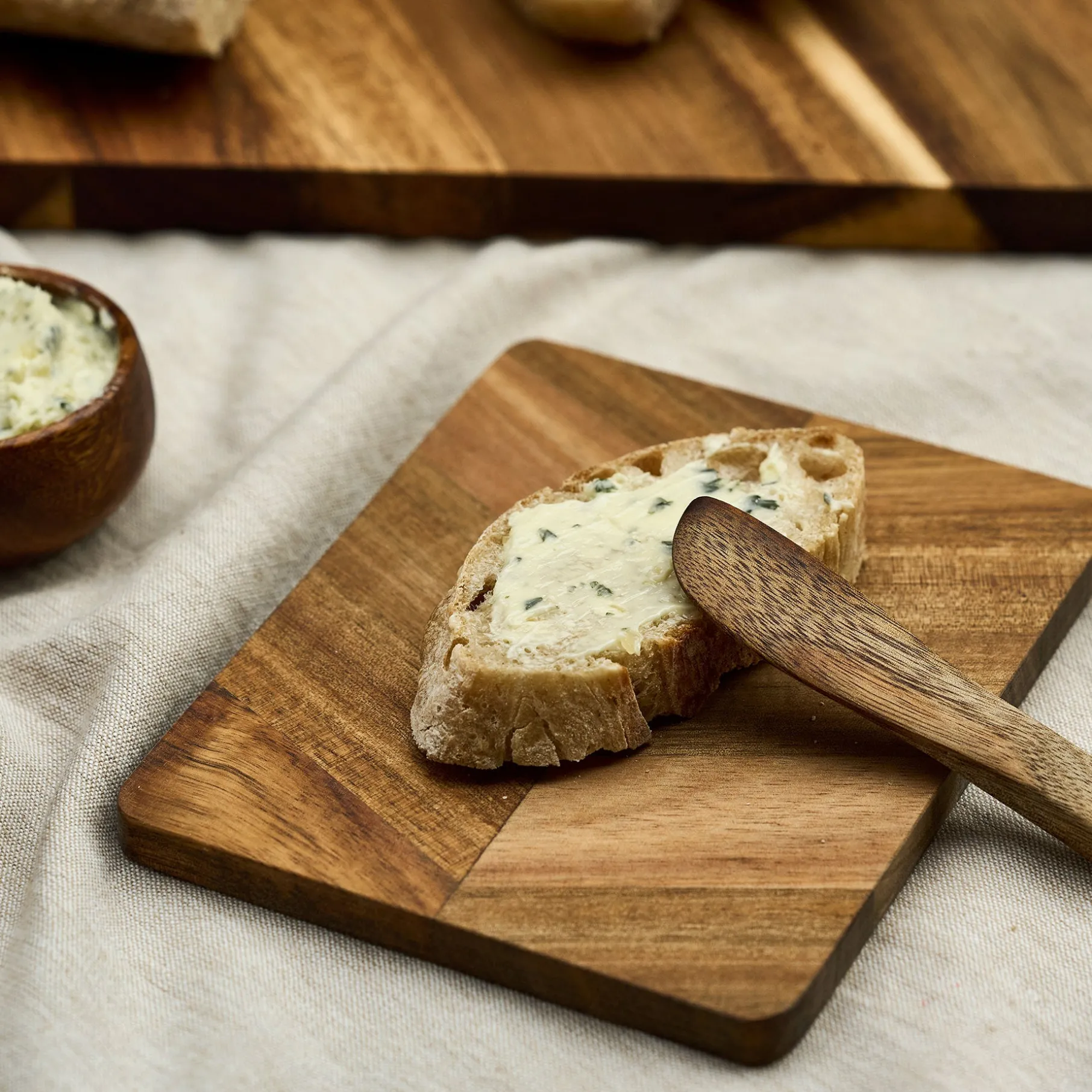 Denne lille smørekniv i akacietræ har en længde på 10 cm.