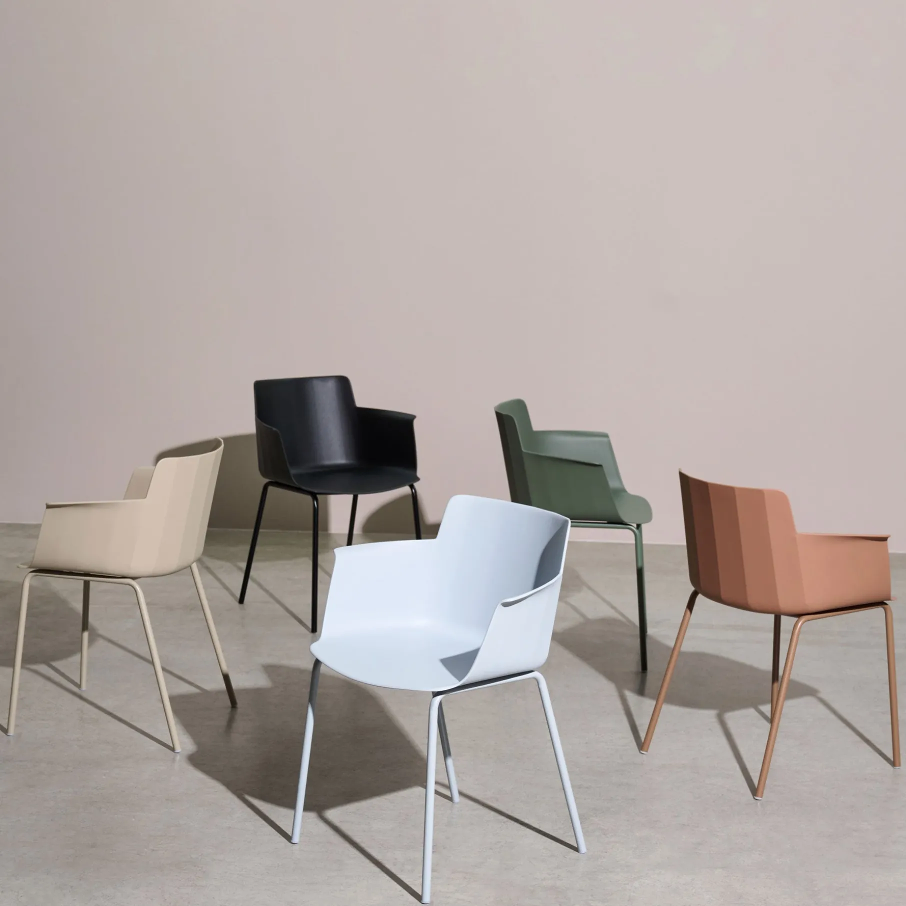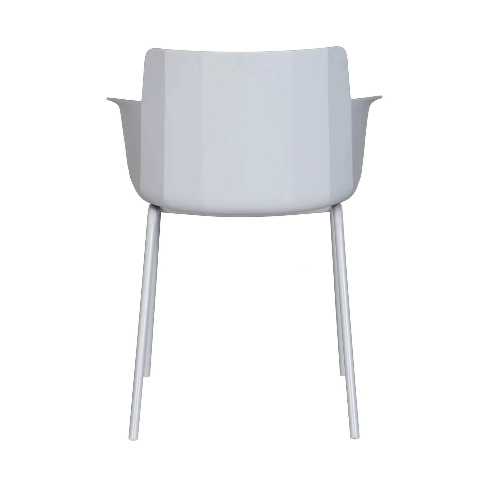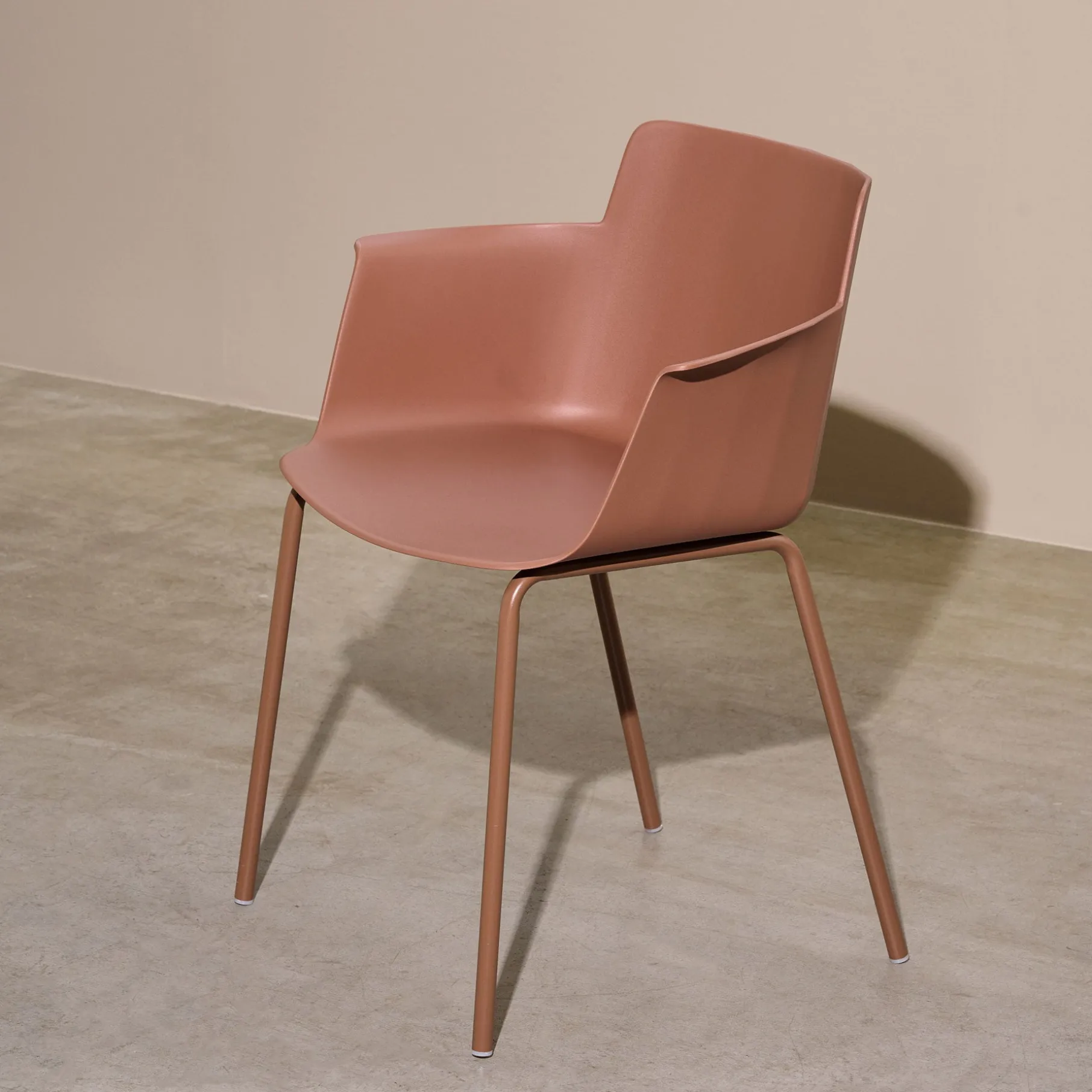 Spisebordsstol med et stilrent og enkelt design. Sædet er lavet i mat plast og benene er lavet i metal. Sæde og ben er lavet i samme tone i tone farve, hvilket giver stol og indretning et roligt udtryk. Bari stolen har en god siddekomfort og armlæn, så man kan hvile armene.