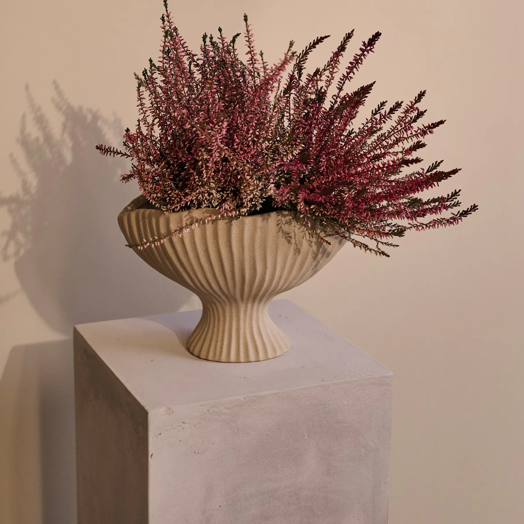 Dette alsidige designobjekt er fremstillet i robust grå beton og kombinerer rå æstetik med tidløs funktionalitet. Podiet er perfekt som en sokkel til dine yndlingsplanter, skulpturer eller andre dekorative genstande.