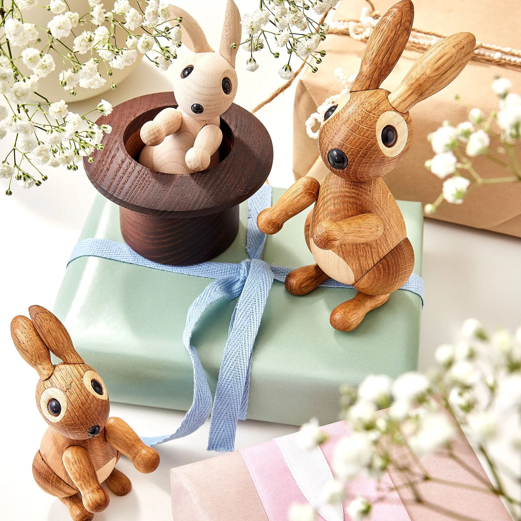 Bounce er en dekorativ figur fyldt med detaljer, der vil tilføre varme og personlighed til dit hjem. Inspireret af naturens kanin har Bounce spidse ører, en lille hale og en sød snude, hvilket bidrager til dens charmerende og karakteristiske udseende. Denne figur er lavet af FSC®-certificeret eg og har bevægelige dele, der giver den et mere livagtigt udtryk.