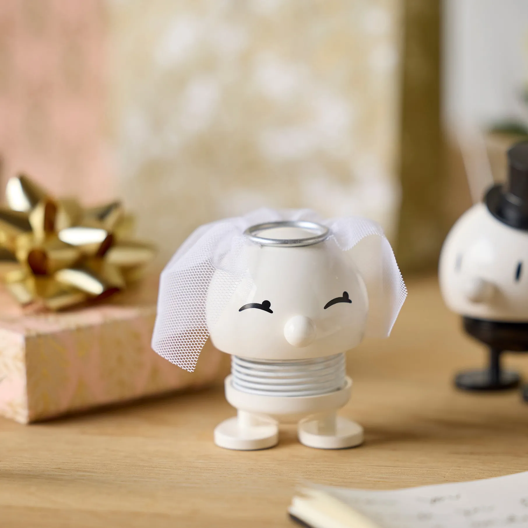 Hoptimist Brud er en sød og festlig figur, der symboliserer kærlighedens store dag. Med sit glade udtryk og fine detaljer er hun en oplagt gaveidé til bruden – som et minde om et smukt ja og starten på et nyt kapitel.