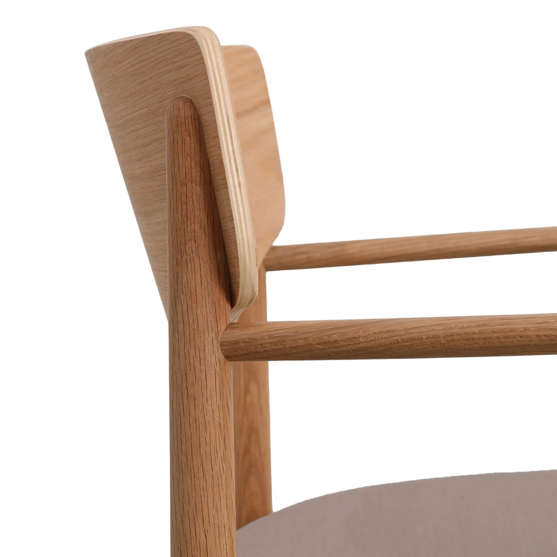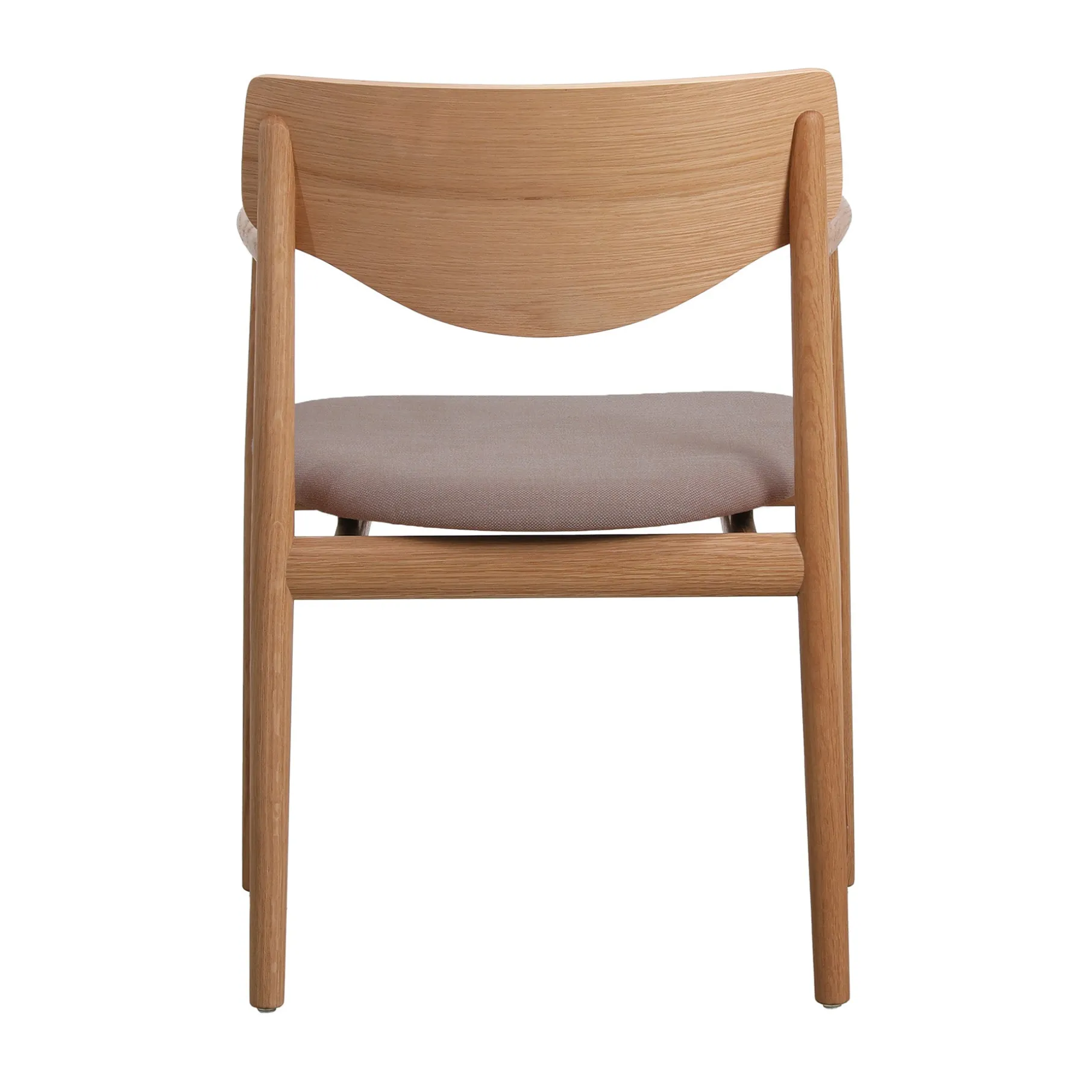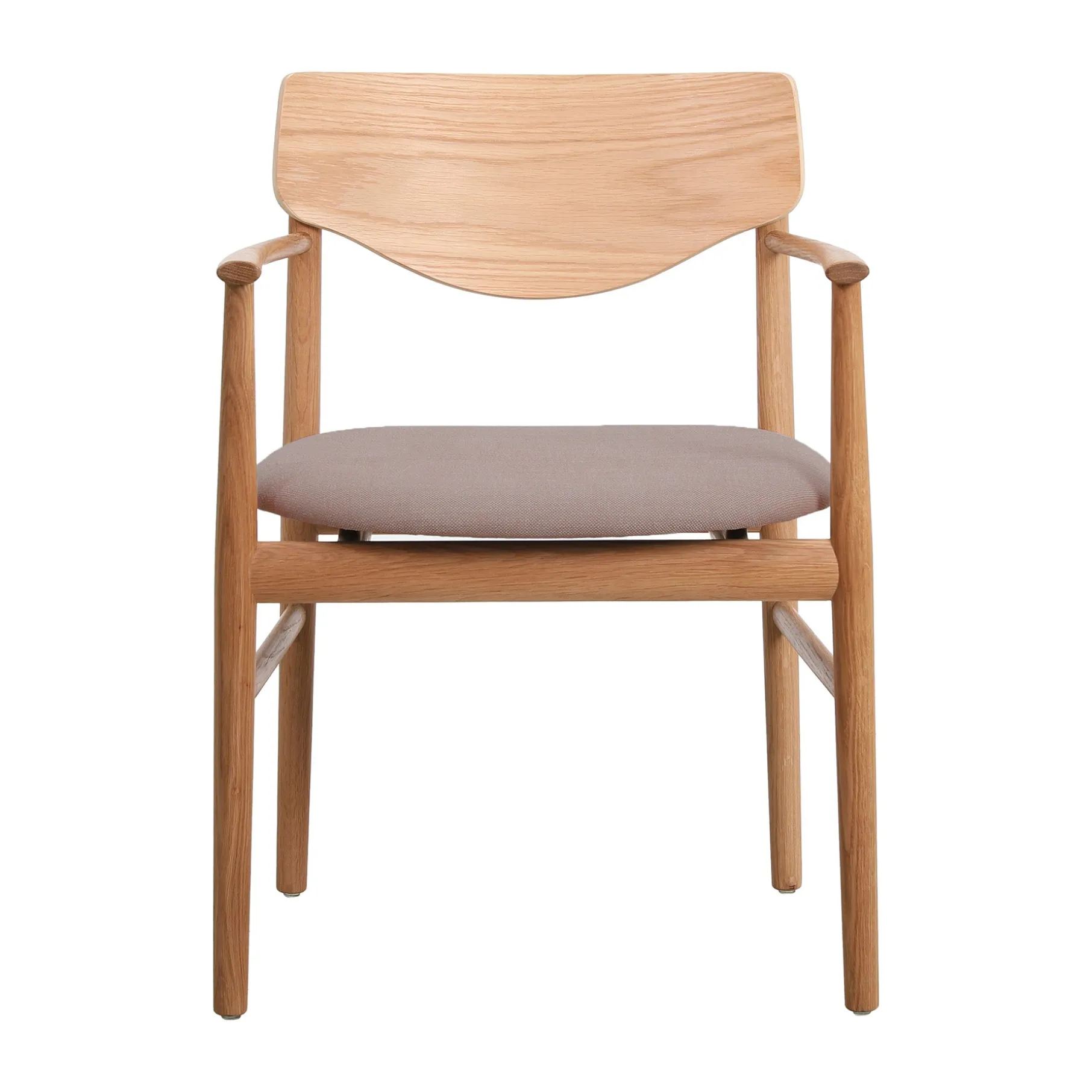 Sædet er polstret med blødt polyesterstof i en smuk lys brun nuance, som tilføjer varme og komfort til designet. Med de blidt buede armlæn tilbyder Celeste ikke kun stil, men også optimal støtte, perfekt til lange middage eller hyggelige stunder ved bordet.