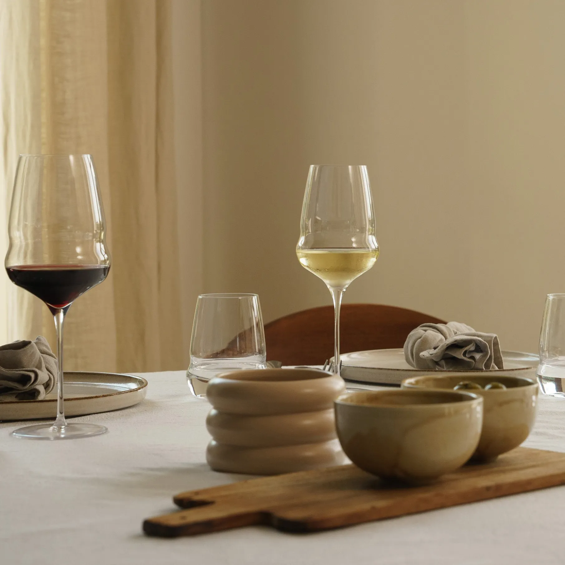 Et let hvidvinsglas med afrundet form, der understøtter vinens friskhed. Velegnet til både hvidvin og rosé – og til servering sammen med lette retter.