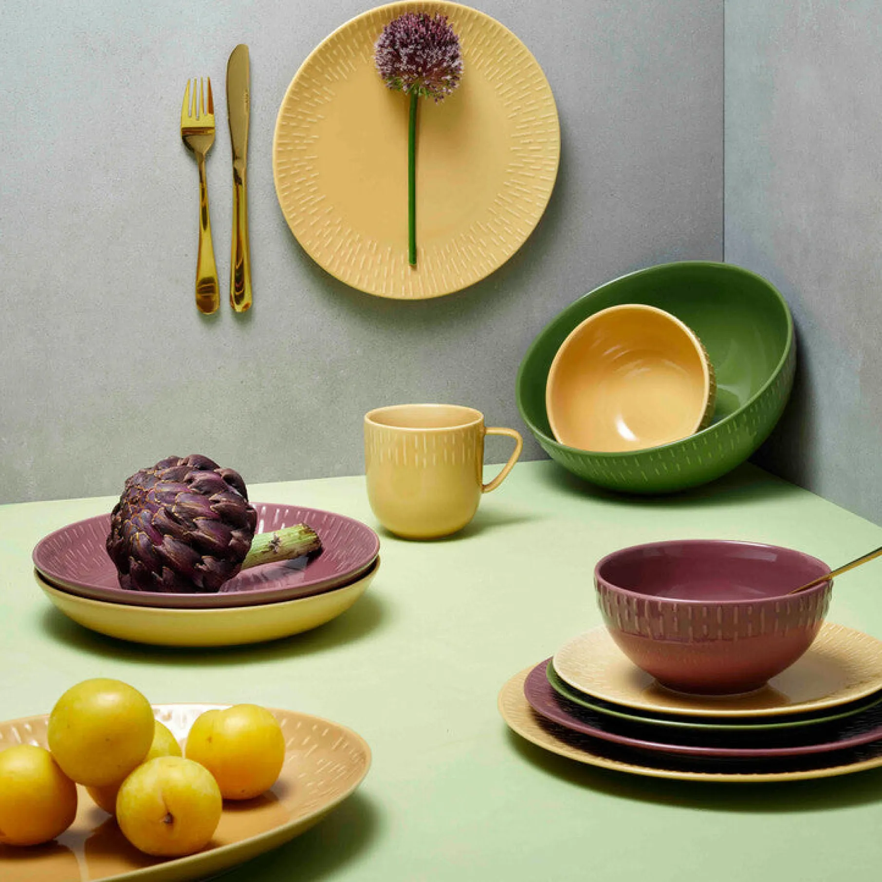 Den brede farvepalet giver dig mulighed for at eksperimentere med nye kombinationer og forvandle din spiseoplevelse til festlige øjeblikke. Den dybe tallerken er velegnet til servering af pasta og lignende retter, og det tilfældige relief på det hvide porcelæn under farverne træder tydeligt frem og tilføjer en legende effekt til den ridsefri glasur.