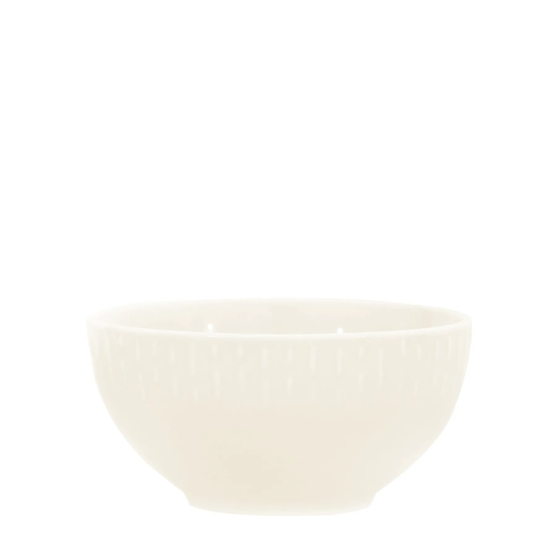 Confetti-skålen har en størrelse, der egner sig til både morgenmad og snacks. Den fås i flere farver og kan bidrage til en farverig borddækning. Et tilfældigt relief langs skålens kant lader det hvide porcelæn træde frem og skaber en levende effekt i udtrykket.