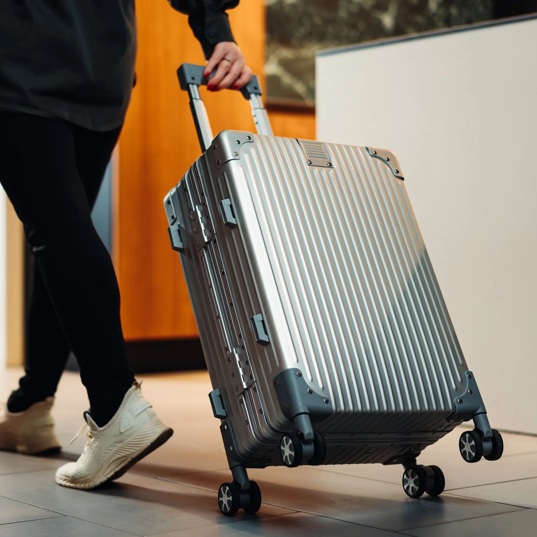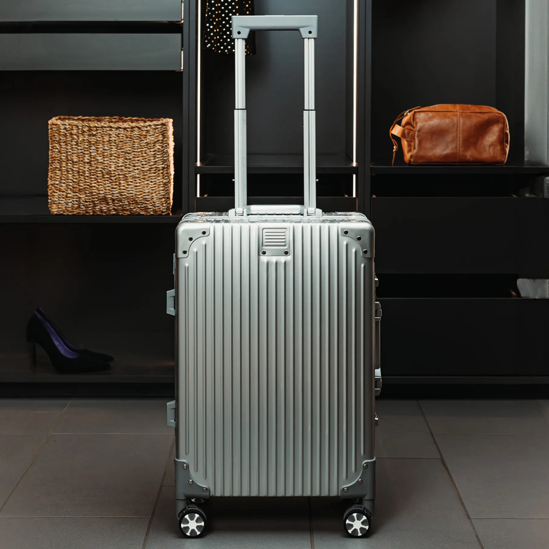 Copenhagen by hâws rejsetrolley forener skandinavisk design med funktionalitet og er udviklet med fokus på både æstetik og holdbarhed. Kufferten er fremstillet af slidstærkt aluminium i høj kvalitet, hvilket gør den modstandsdygtig over for både tidens brug og rejsens udfordringer. De fire glatte og letløbende hjul sikrer en stabil og komfortabel kørsel gennem lufthavne, hoteller og andre rejsedestinationer.