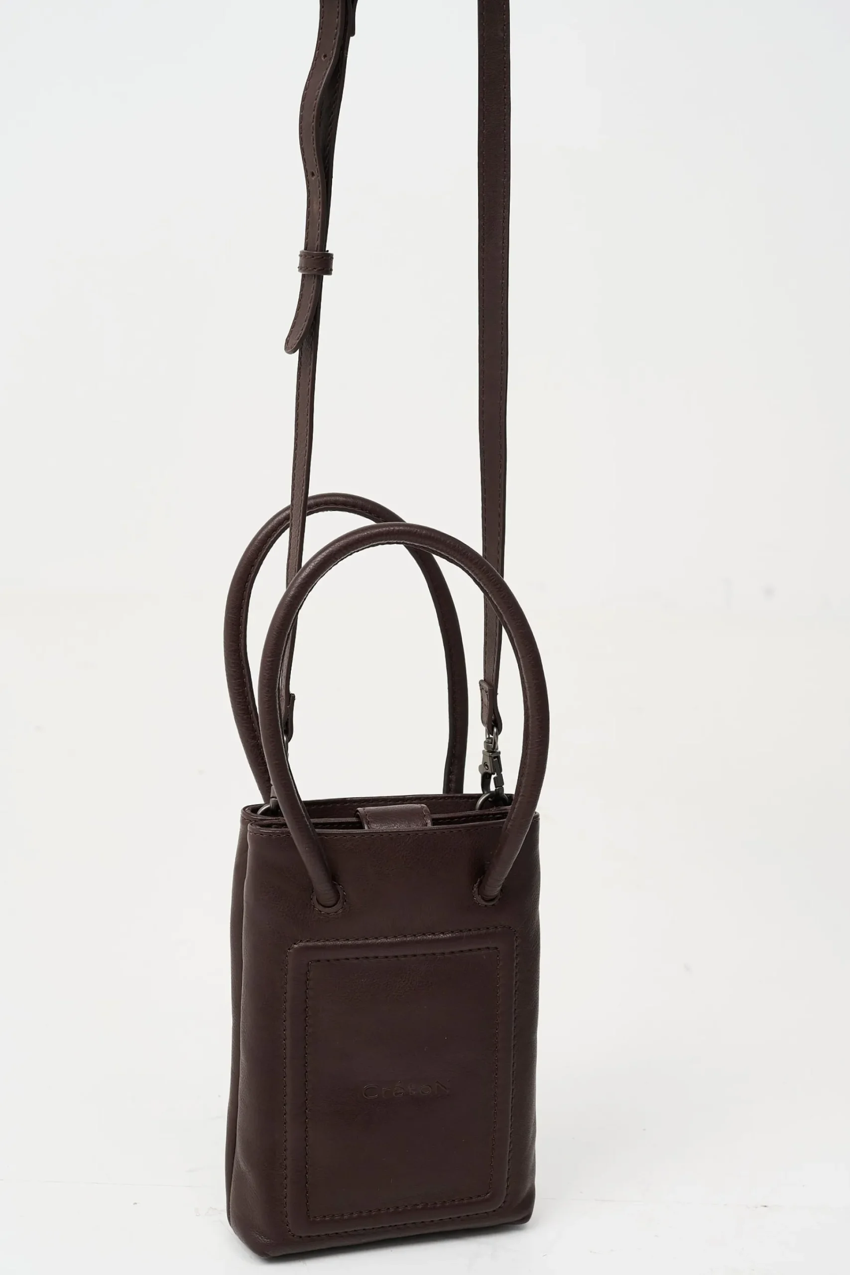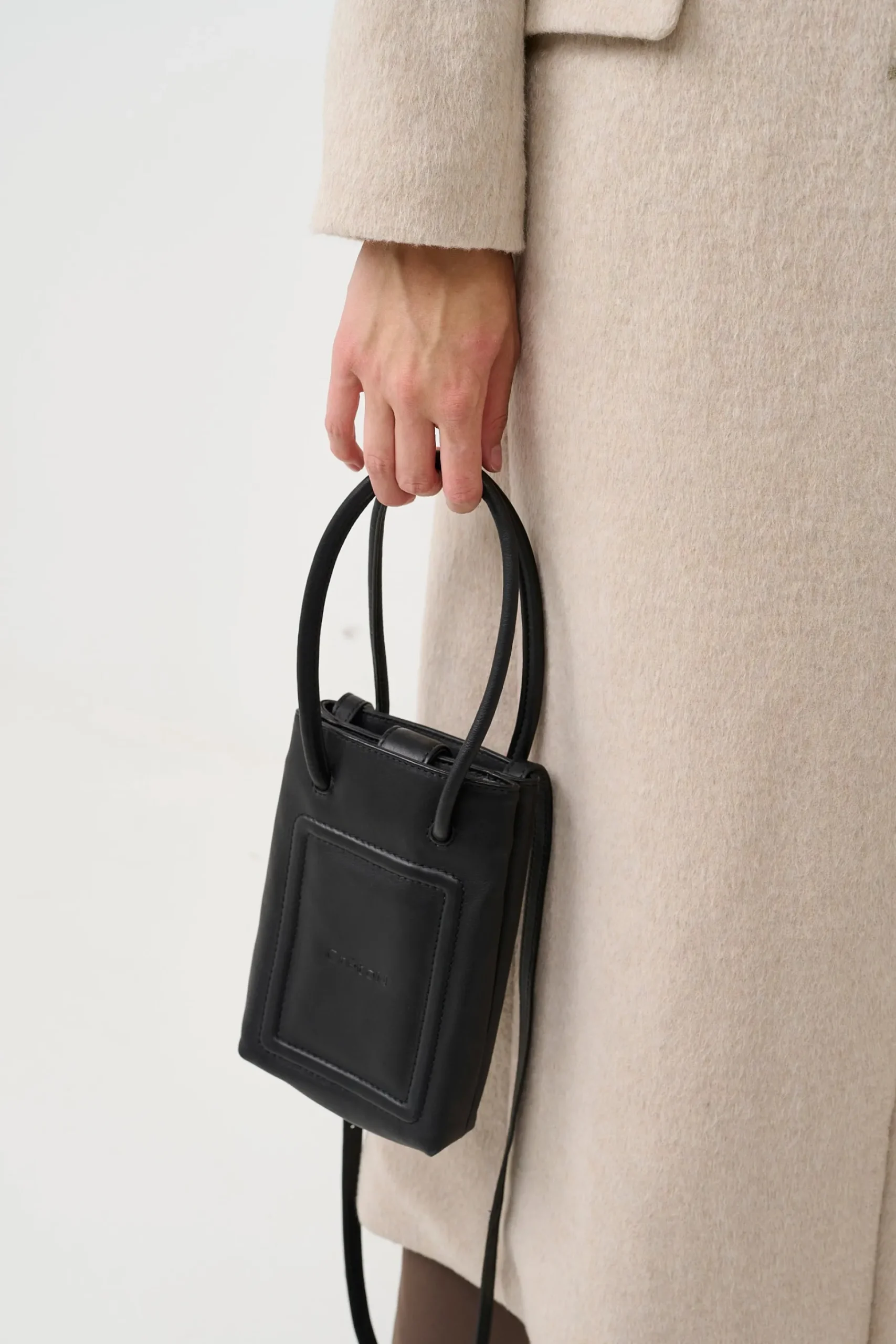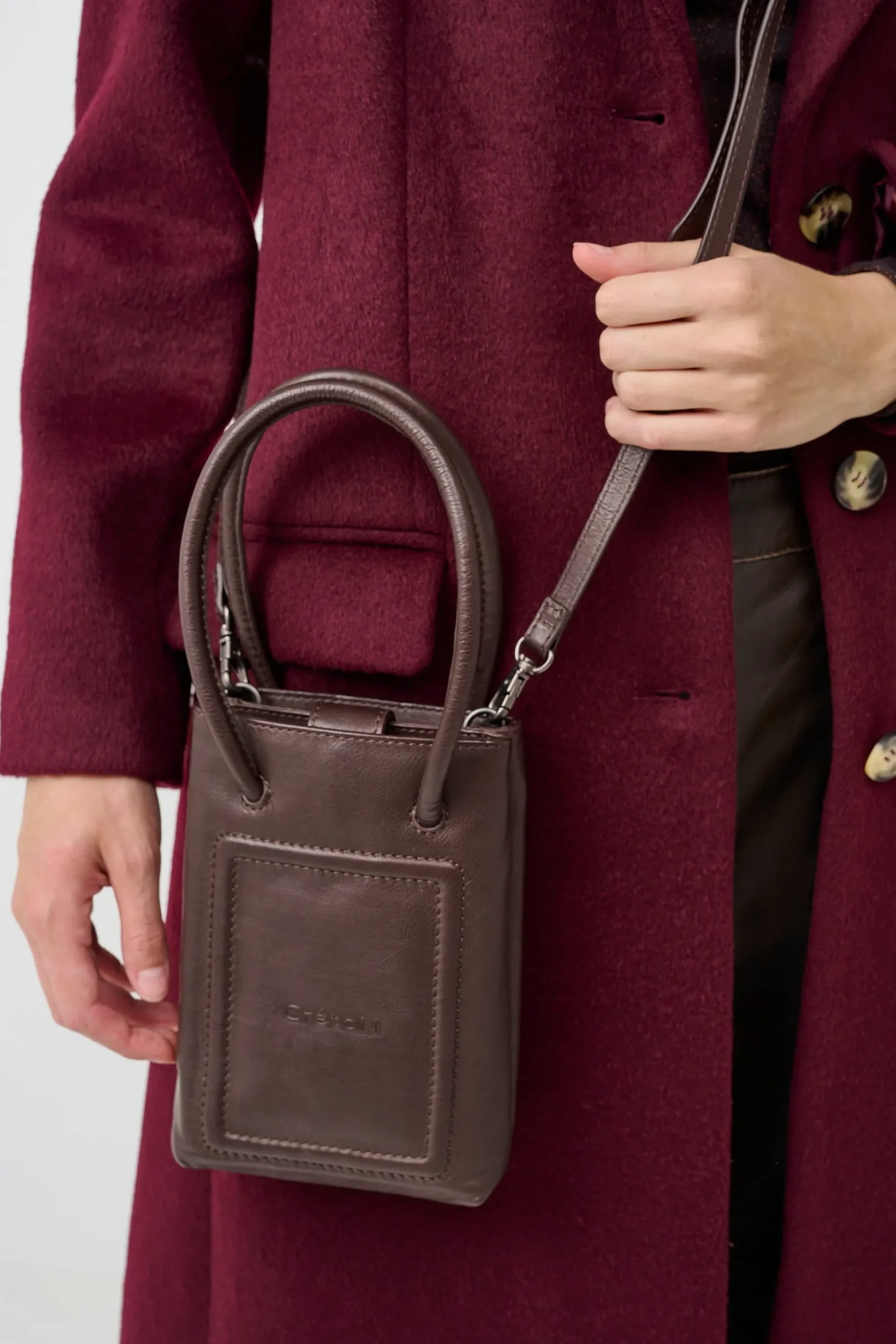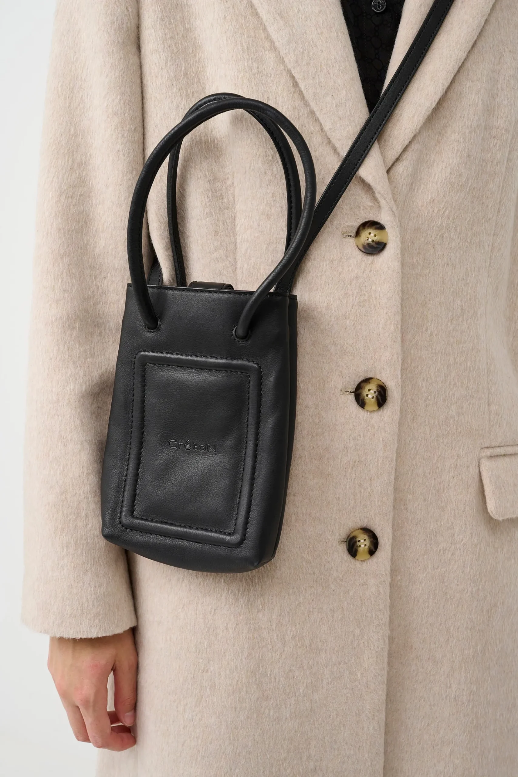 Tasken kan bruges både som håndtaske med den korte hank, og den kan også bruges som cross-over taske med den lange læderstrop.