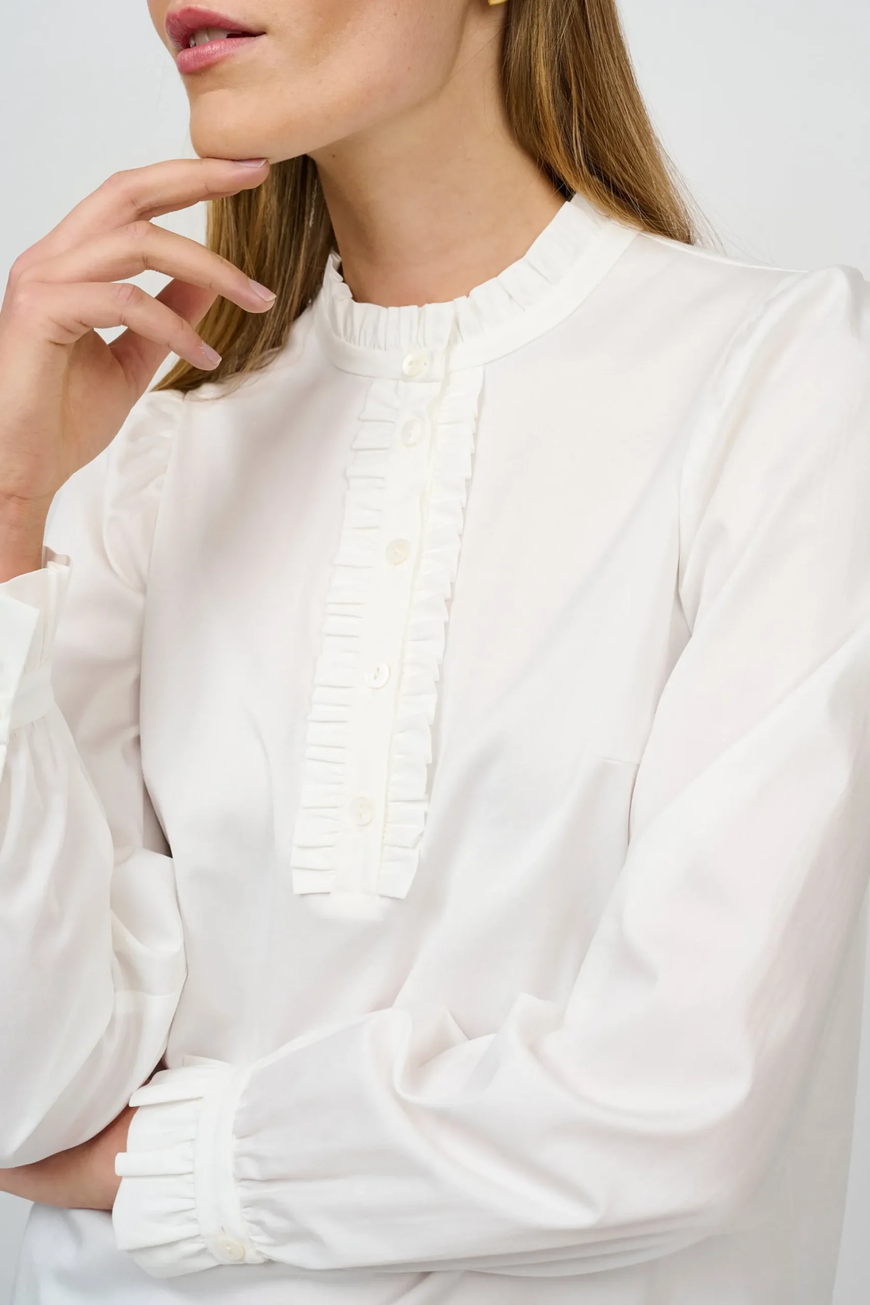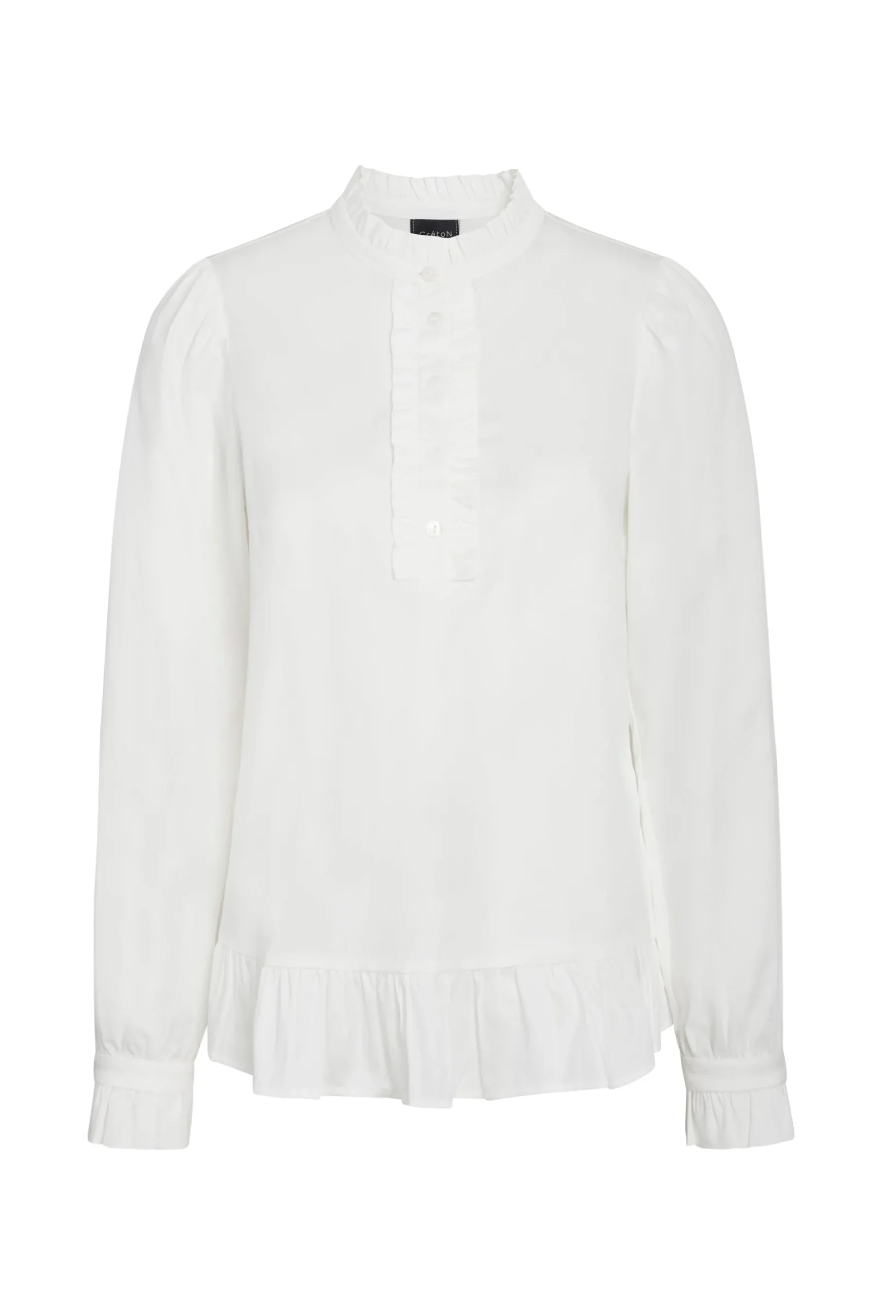 Skjorten er lavet i en let metervare af høj kvalitet. Metervaren består af bomuld og nylon, hvilket giver den et eksklusivt let shiny look. Der er 3% spandex i metervaren, hvilket gør den en smule strækbar og dermed utrolig behagelig at have på.