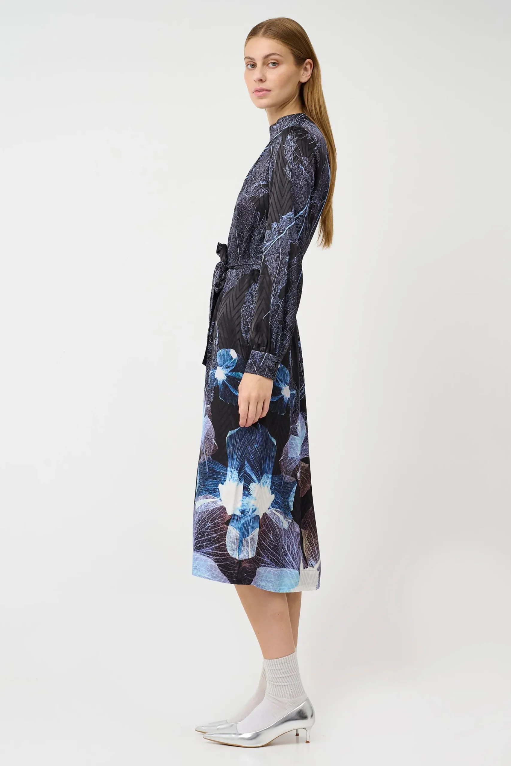 Materialet består af viskose og rayon, som er regenererede cellulosefibre. Kombinationen af de to materialer giver et eksklusivt glansfuldt look, med en fin tyngde der giver kjolen et flot fald. Viskose og rayon skaber en naturlig blødhed, er åndbart og behageligt at have på.