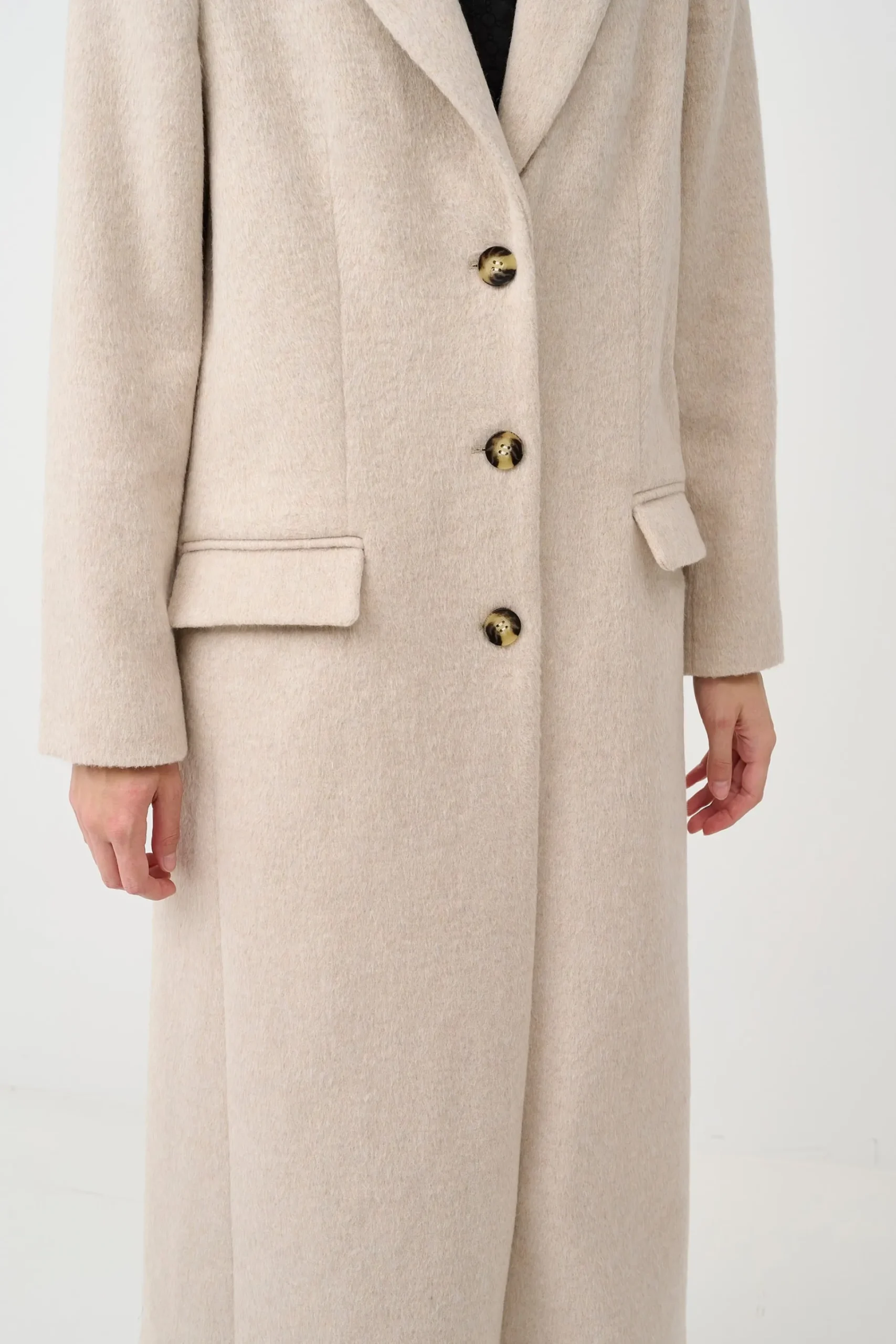 Lang frakke i en eksklusiv uldkvalitet. Denne frakke er den perfekte hverdagsfrakke til de køligere tider. Har den helt rigtige længde ned til midt på skinnebenet for et cool og klassisk look.