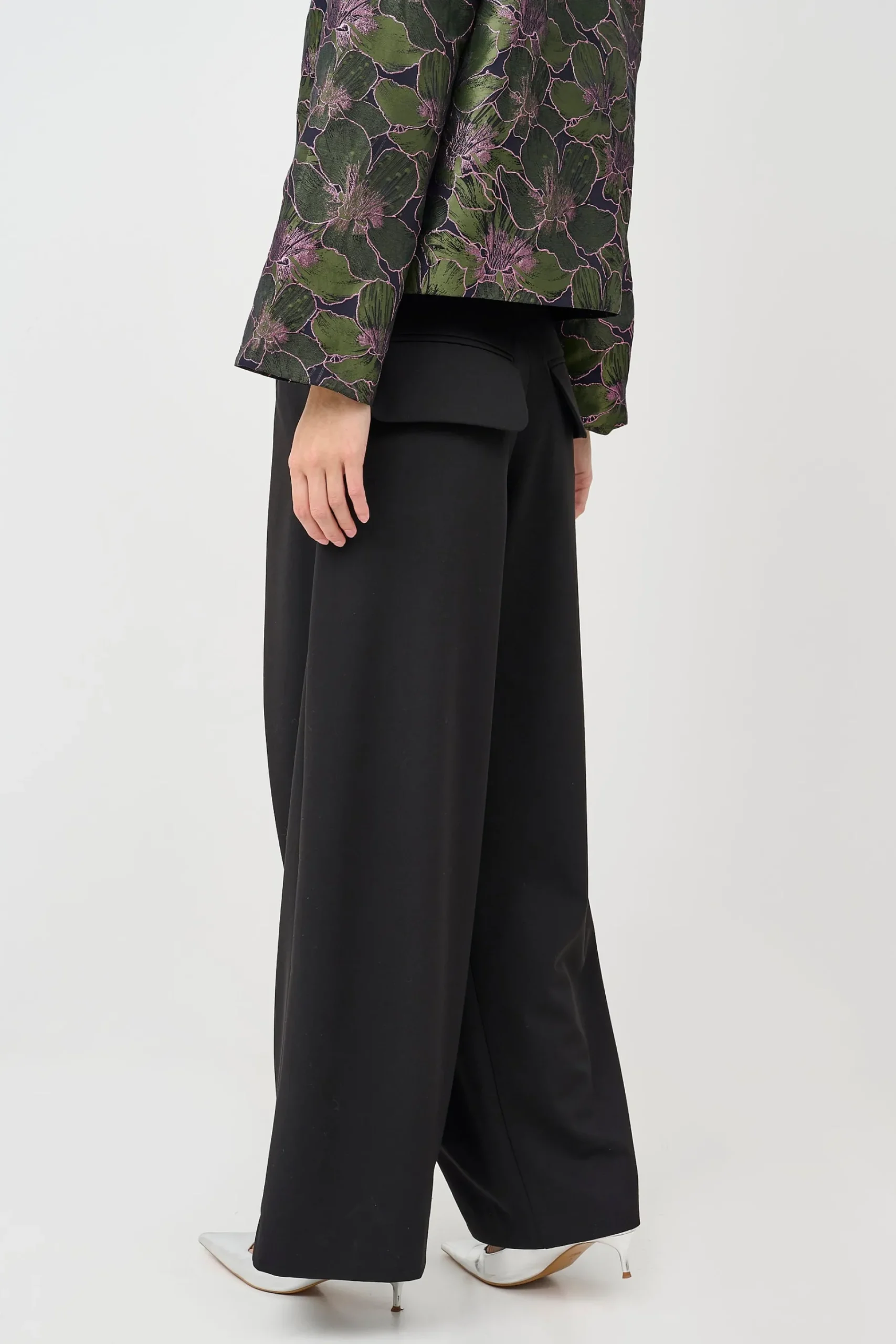 Bukserne er lavet i en metervare af høj kvalitet, med en flot tætvævet overflade, som er behagelig at have på og falder flot på en tung og stilfuld måde.