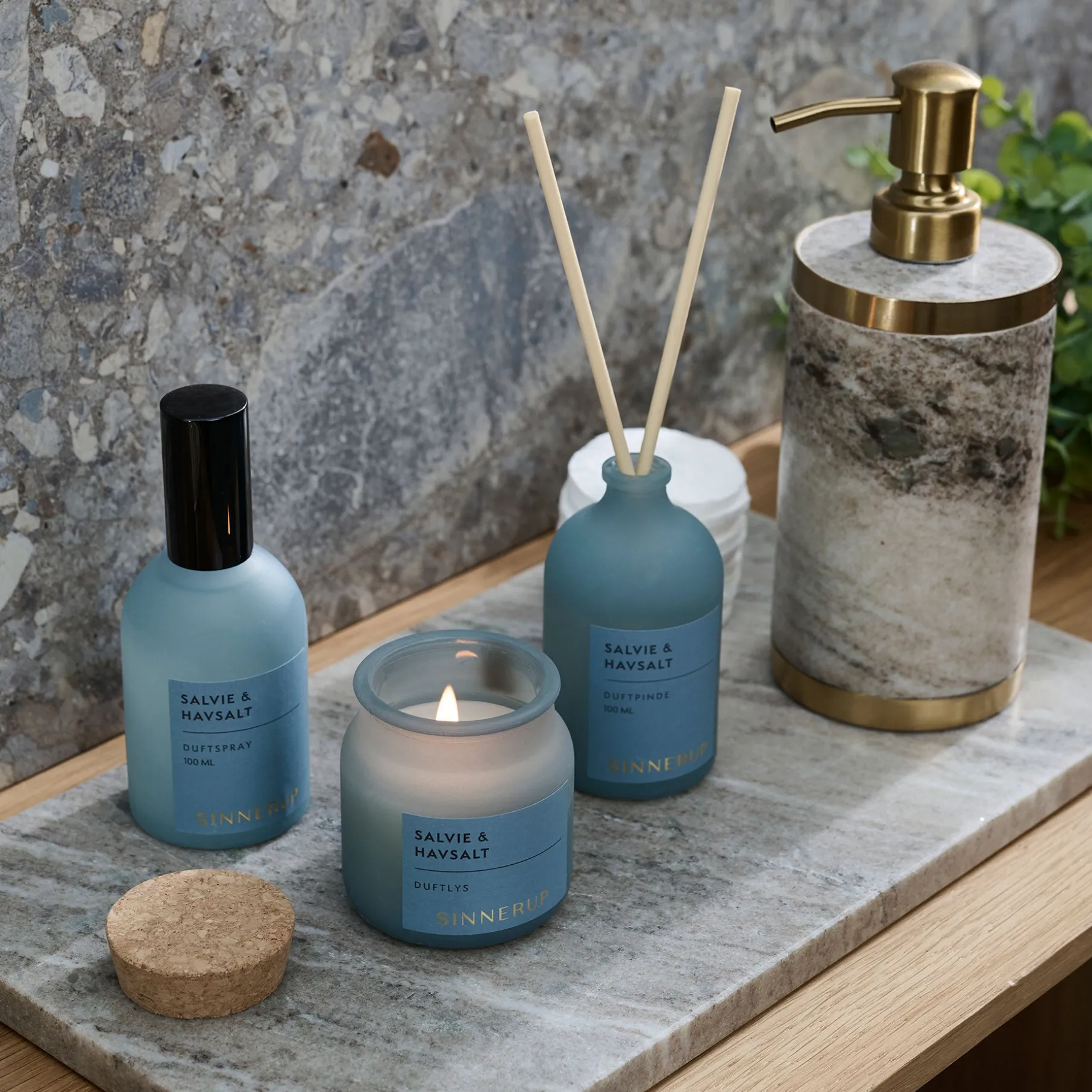 - Duftpinde – Lad den friske aroma af salvie og havsalt langsomt sprede sig i dit hjem, mens duftpindene skaber en konstant og mild duft, der fylder rummet på en diskret måde.
