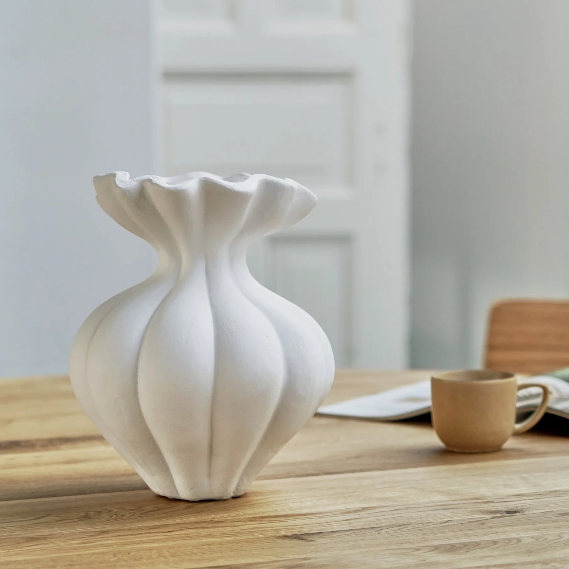Med sit bløde, organiske formsprog er Elora II vasen et dekorativt statement i indretningen. De elegante kurver og den bølgende åbning tilfører et legende og moderne udtryk.