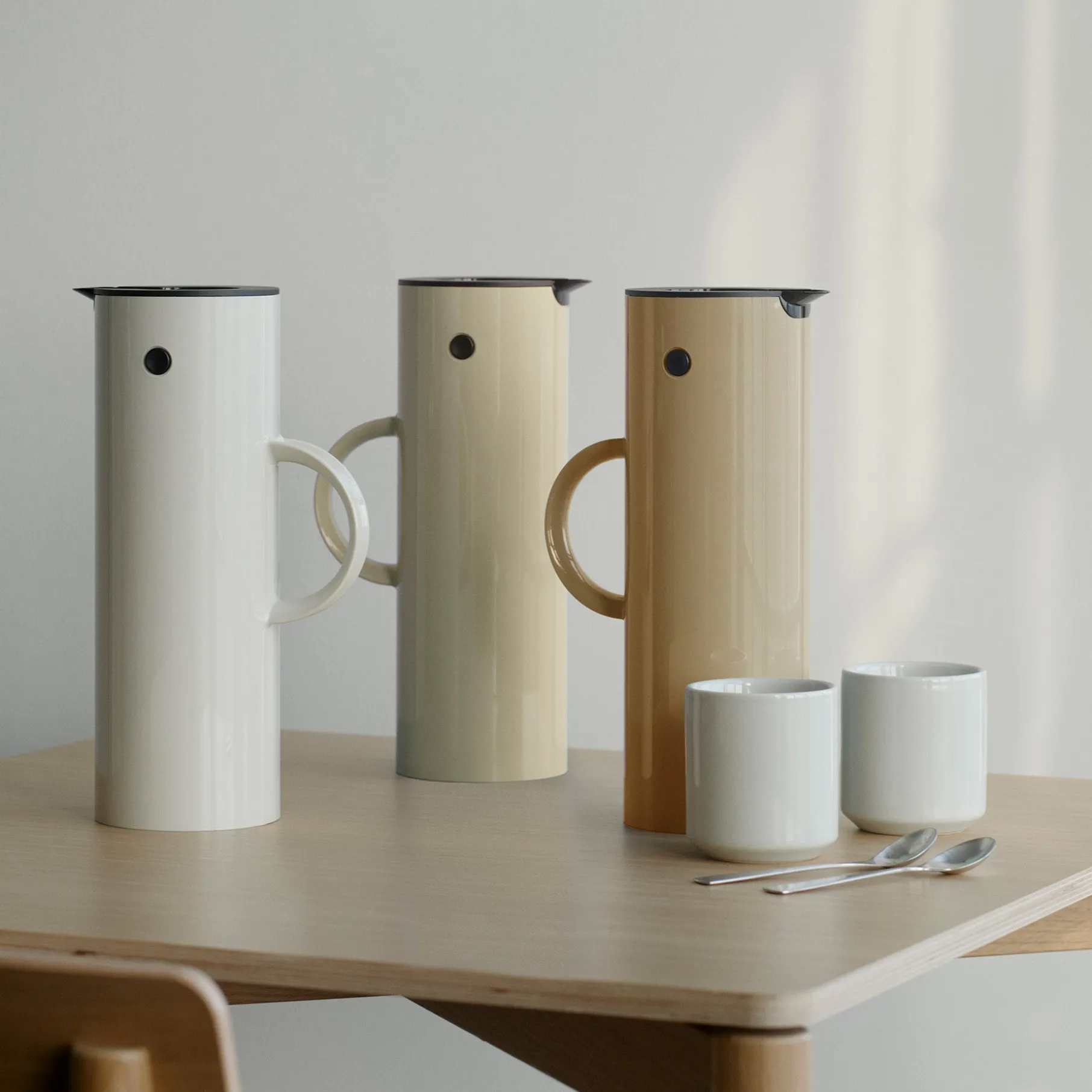 EM77 termokanden, et ikonisk dansk design siden 1977, er blevet produceret i over 100 farver og pryder designmuseer verden over. Med sin perfekte balance mellem æstetik og funktionalitet er den en tidløs klassiker. Den indvendige glasindsats sikrer, at væsken forbliver varm eller kold i timevis.