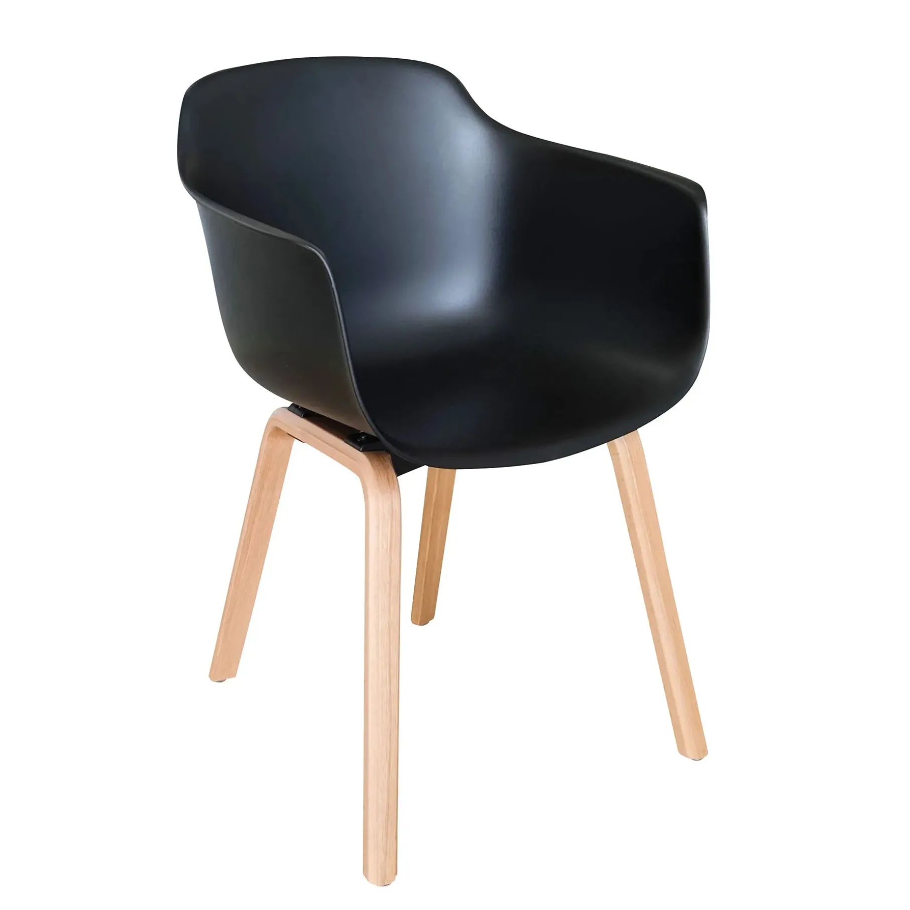 Stolen har et sæde i formstøbt hård plast. Benene er i egetræ og tilføjer en varm atmosfære til din indretning.