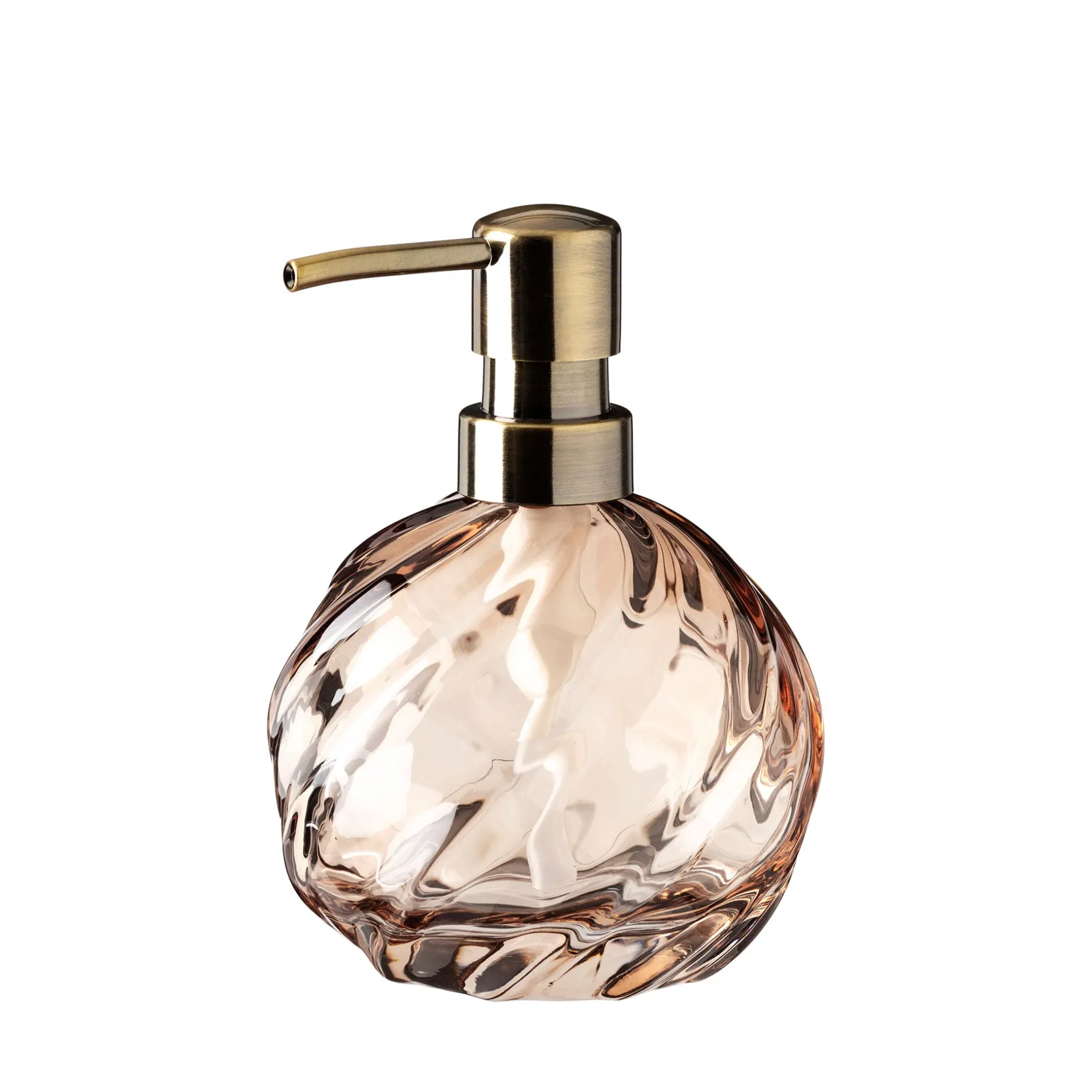 Kugleformet sæbedispenser i sprayfarvet glas, med fine linjer som følger den runde form.