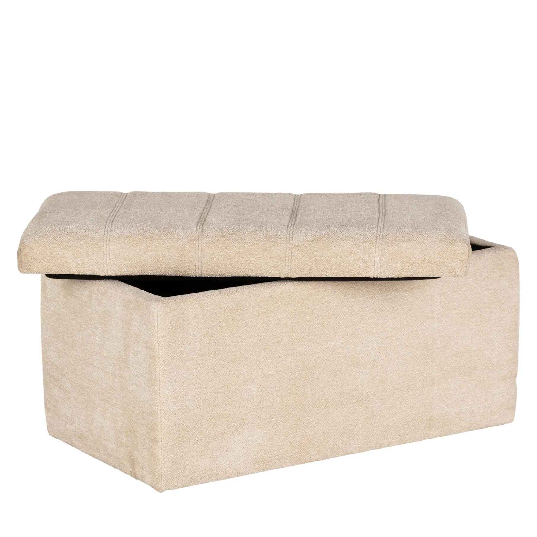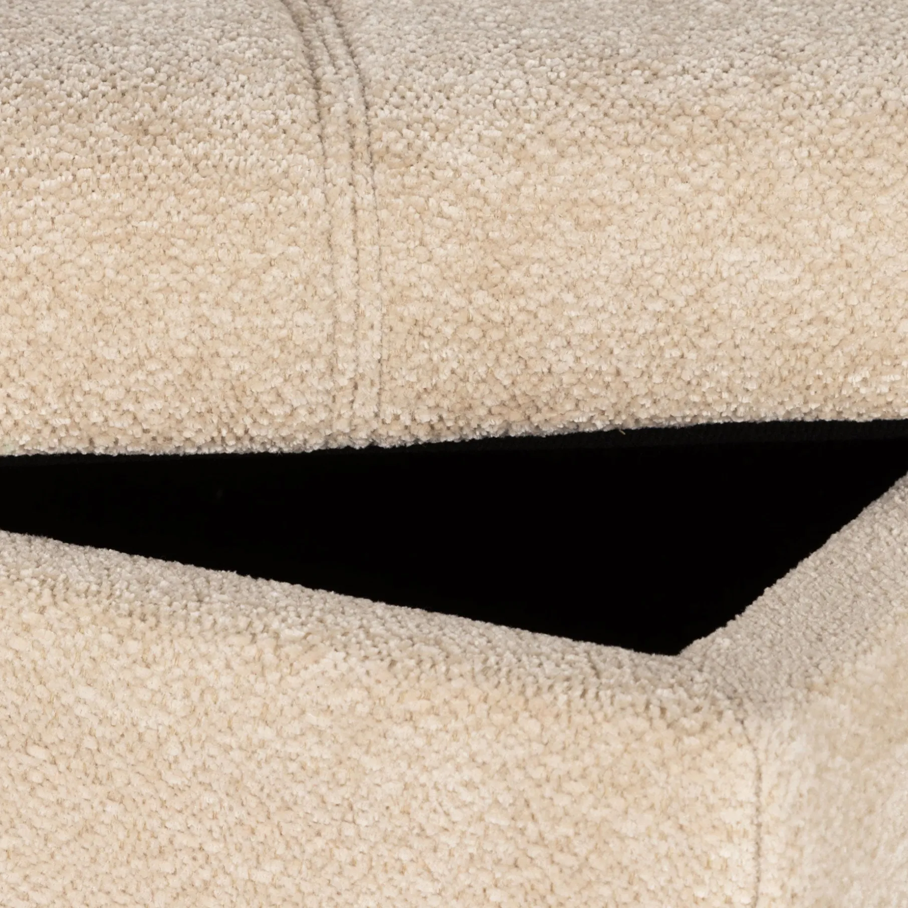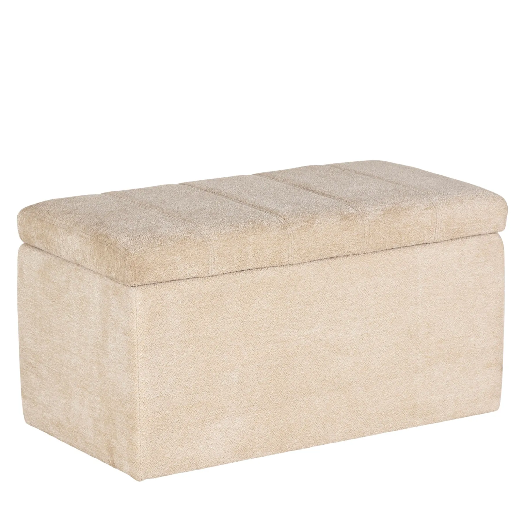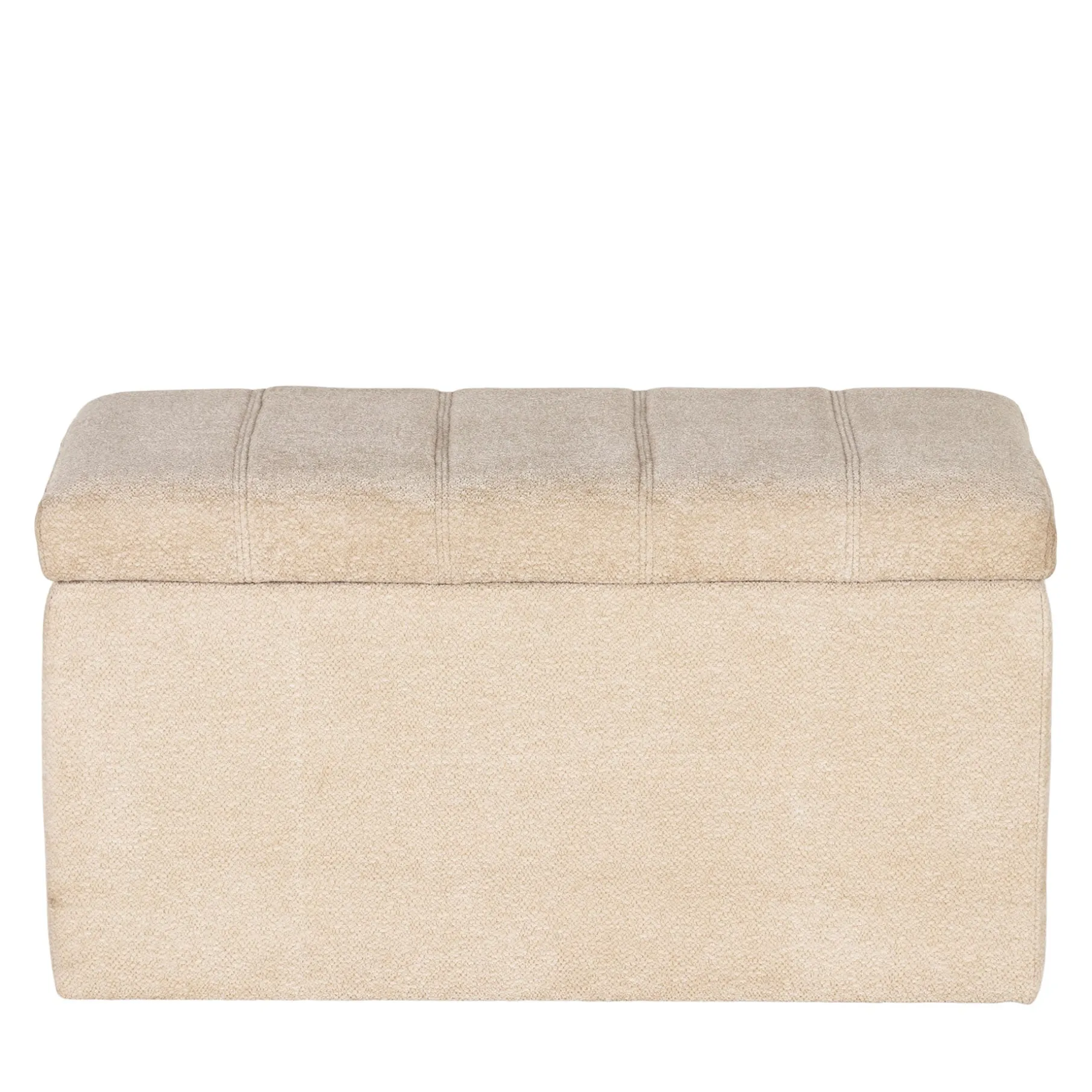 Bænken er lavet i praktisk meleret polyester med en grov vævet struktur. Den har et stabilt låg, som er nemt at tage af og på