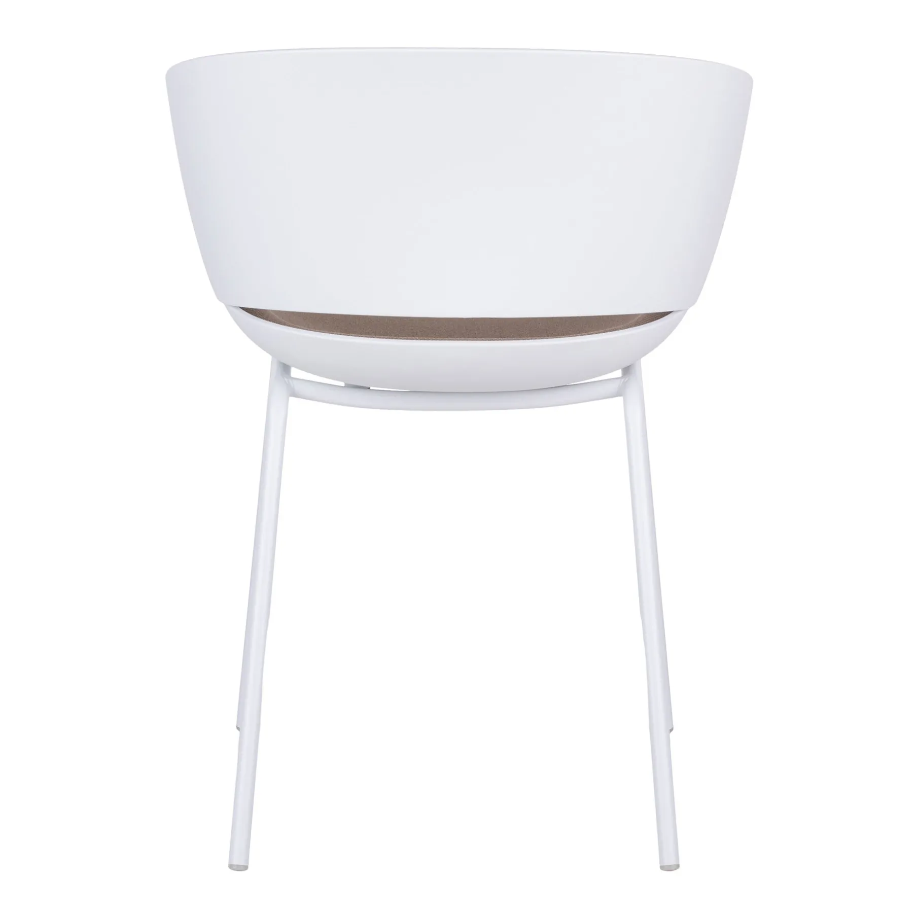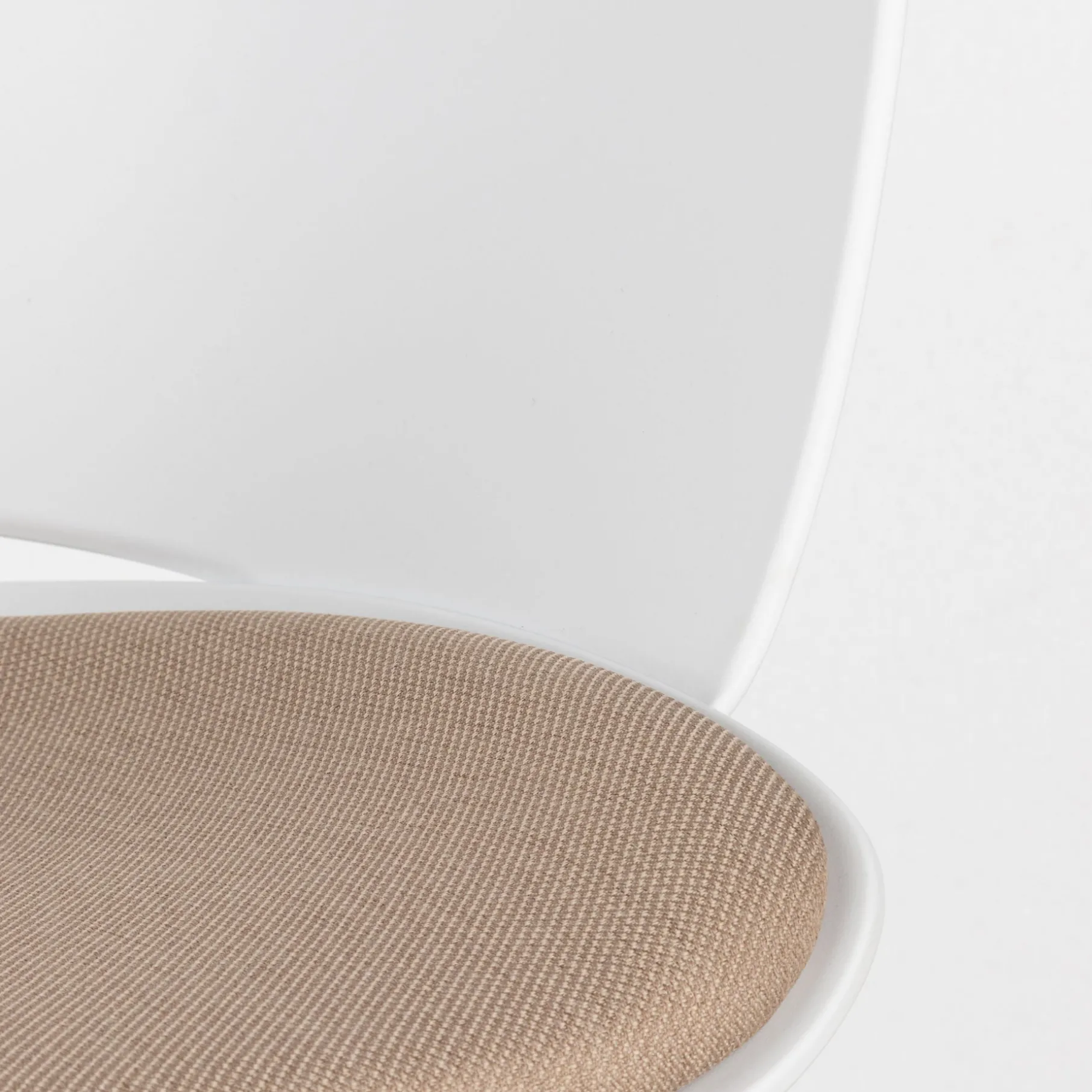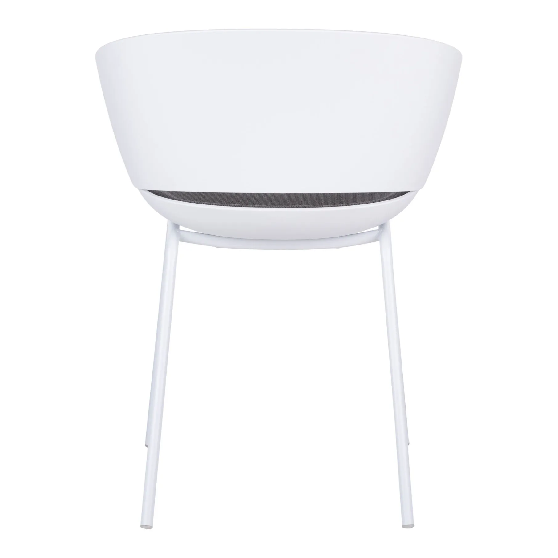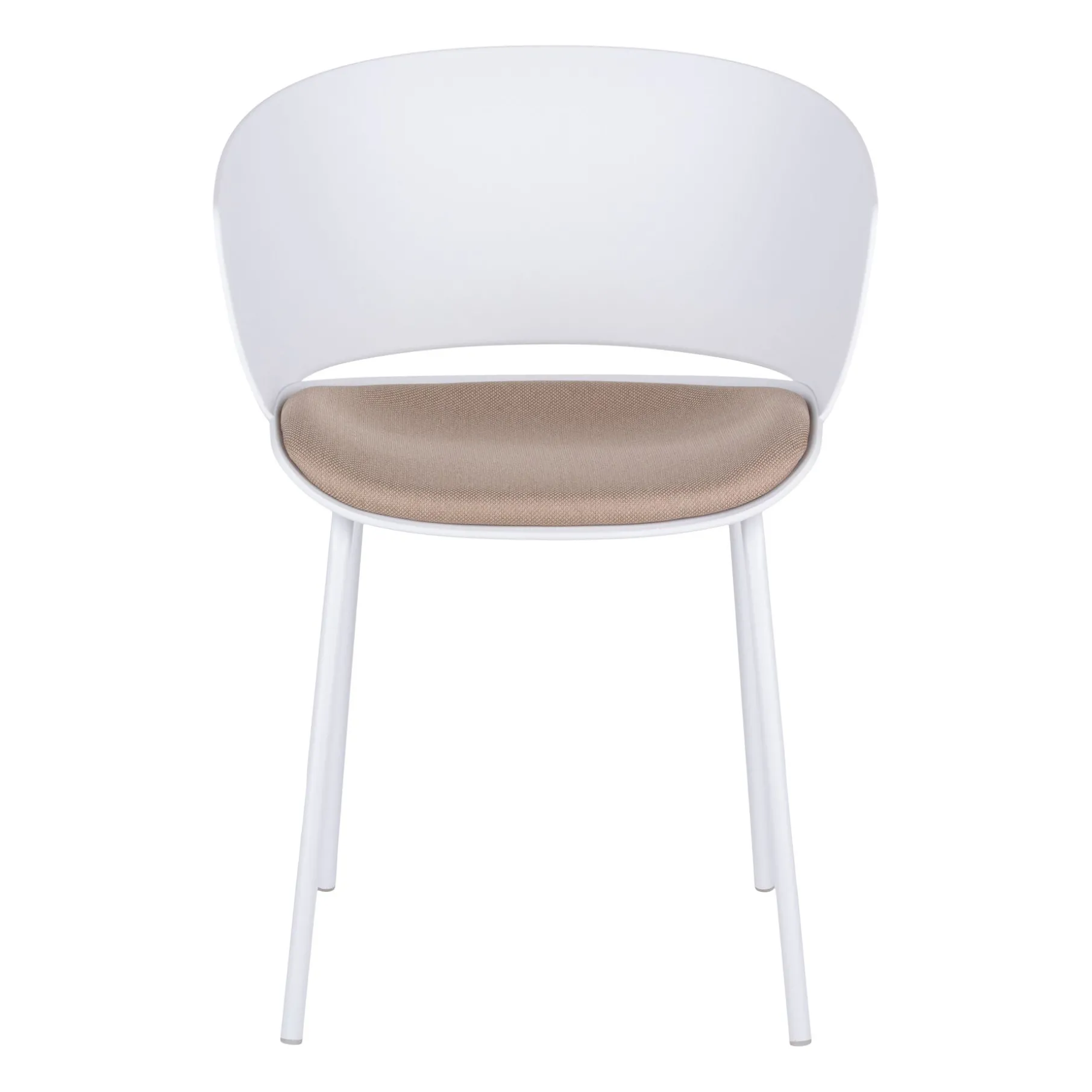 Florence spisebordsstol i skarpt nordisk design. Sædet er polstret og betrukket med 100% recycled polyester, som giver dig en god siddekomfort. Ryggen er i formstøbt hård plast der giver stolen et skarpt og elegant design. Benene er i pulverlakeret hvidt metal, der giver en lethed i designet.