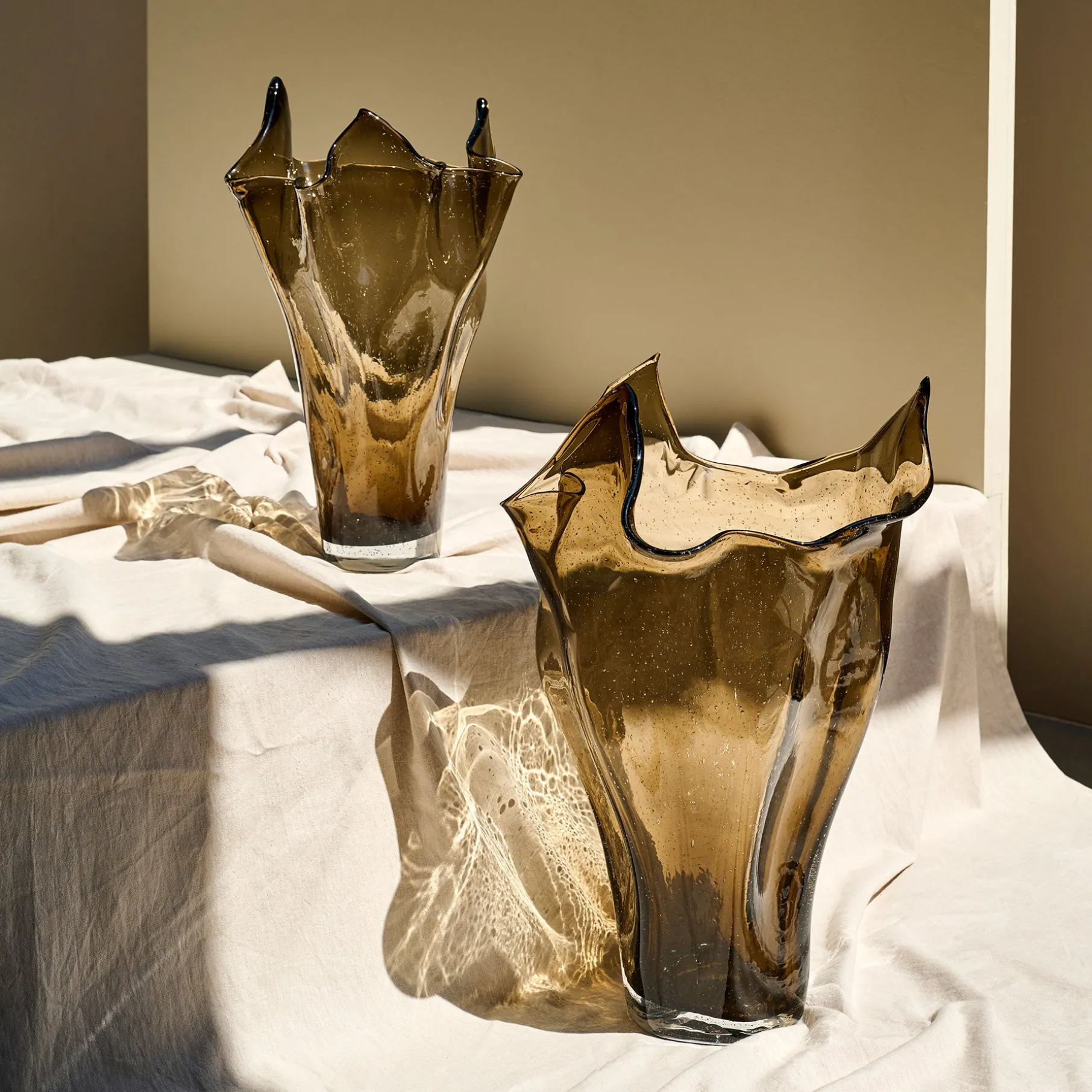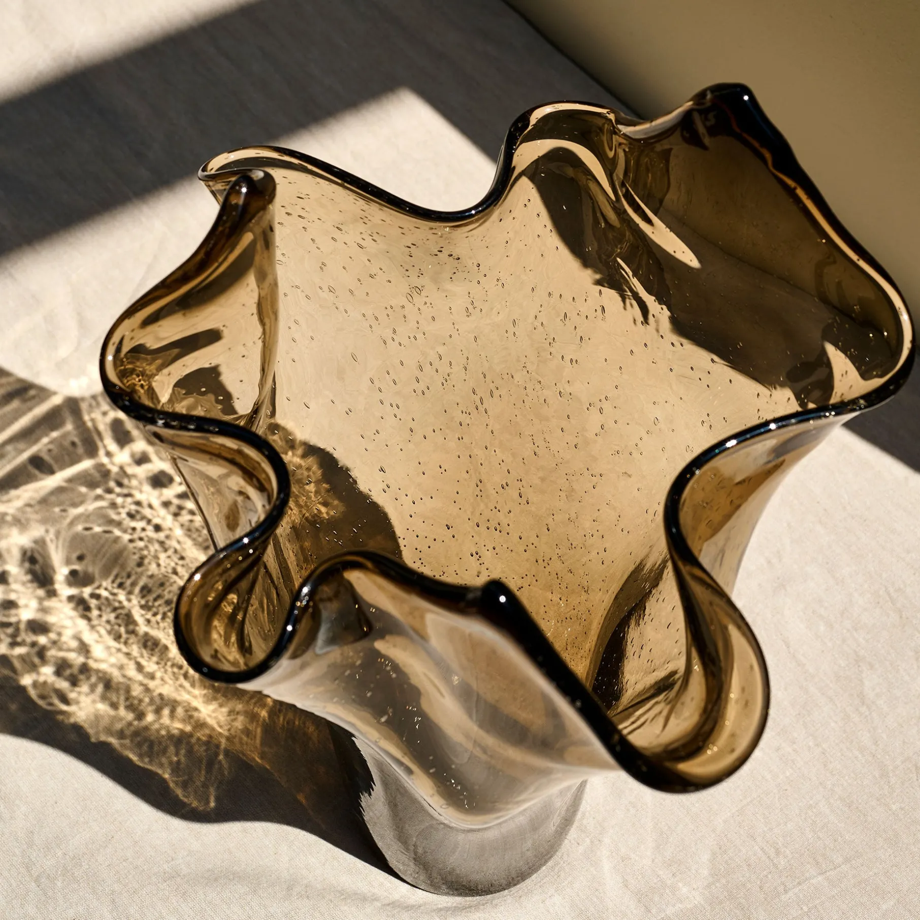 Flower bubbles er en elegant og unik glasvase. Den har en høj, slank form og er navngivet efter de små bobler, der kan ses i glasset, da vasen er håndlavet og mundblæst. Disse bobler tilføjer en charmerende og unik detalje til vasen, der får den til at skille sig ud.