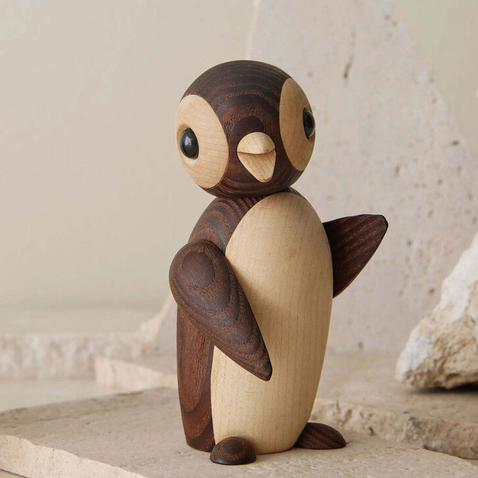 Pingvinen Frost – den søde pingvin, der bringer glæde til dit hjem. Denne charmerende pingvin står elegant oprejst med solid fod på jorden. Dens vinger samt hoved kan justeres for at ændre udtrykket og skabe et personligt præg. Frost pingvinen er en skøn gave til dyreelskere og vil tilføje et tidløst og organisk touch til ethvert rum.