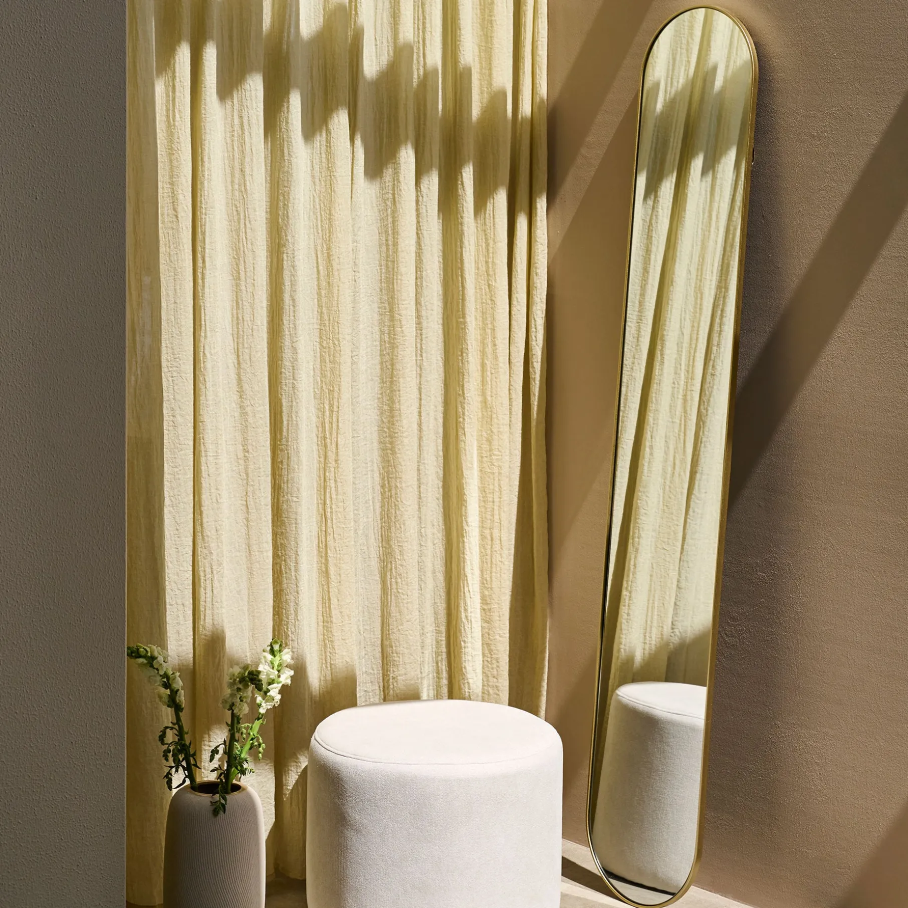 Garda II er et højt slankt spejl med en rund top og bund, der tilføjer en moderne elegance til ethvert rum. Dets minimalistiske design og slanke ramme gør det ideelt til at skabe vægkunst ved at placere flere Garda-spejle ved siden af hinanden eller i forskellige højder.