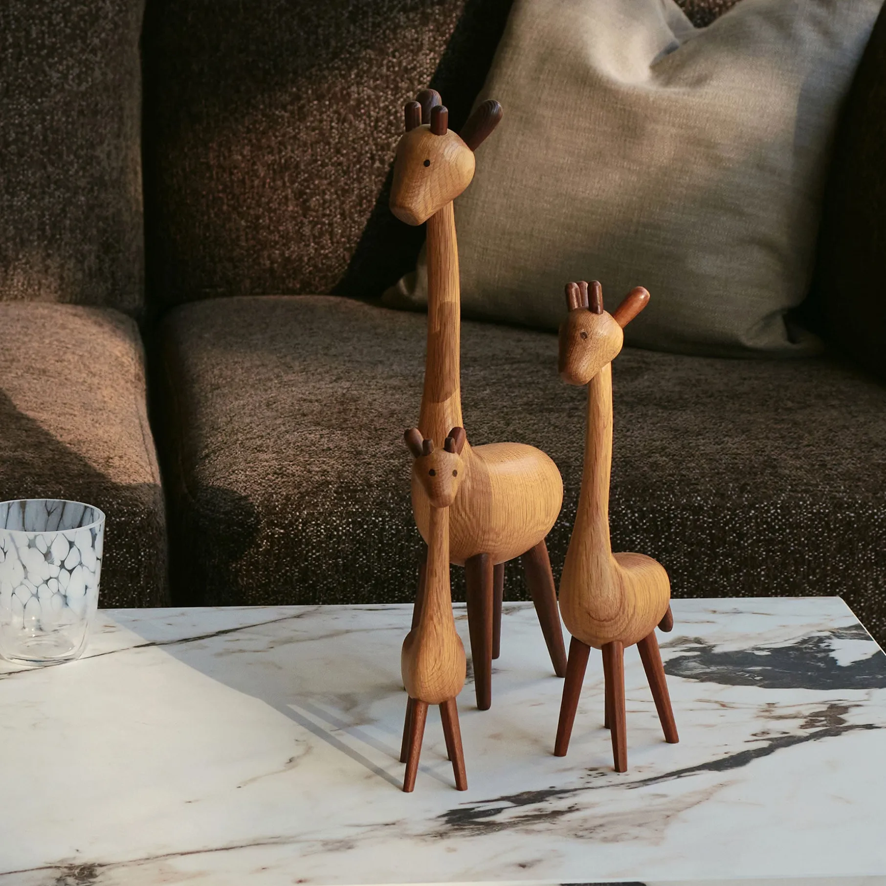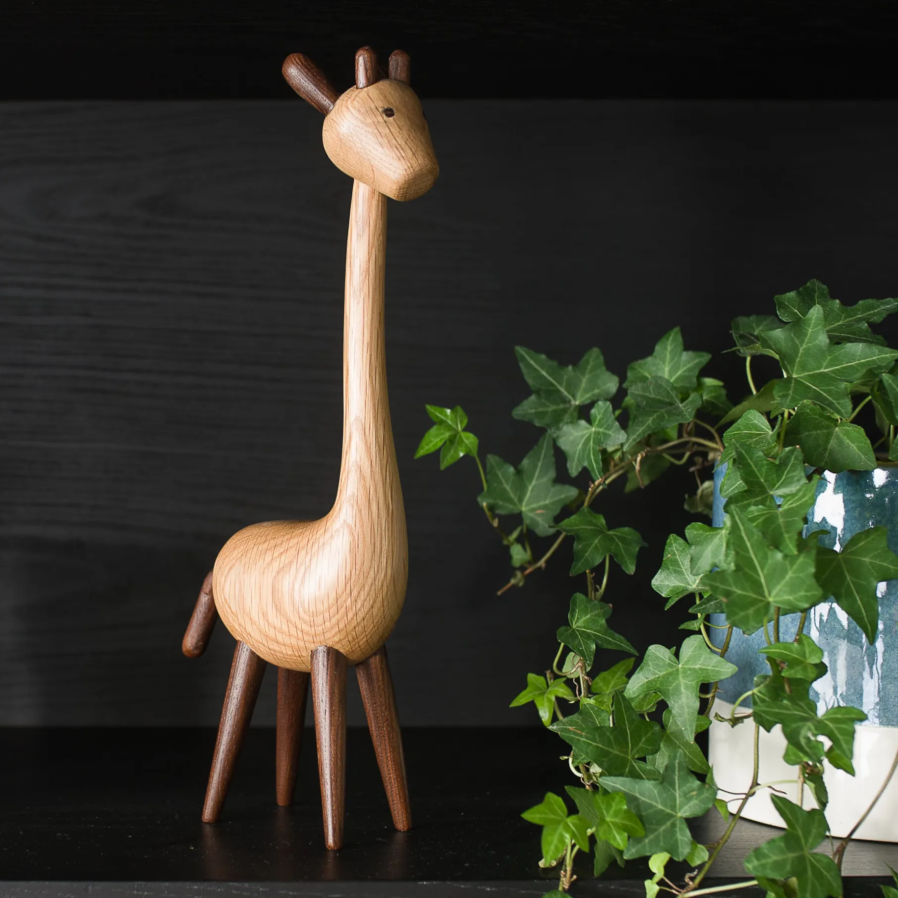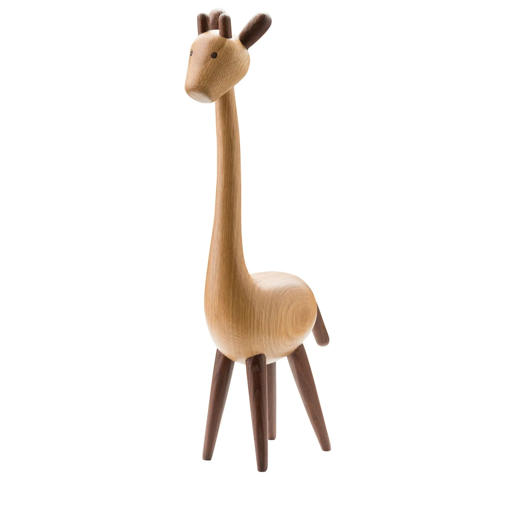 Selvom giraffen holder hovedet højt og virker som om, at den går med hovedet i skyerne, har den dog stadig begge sine lange ben på jorden. Giraffen er nemlig også fuld af ro, varme og medfølelse, da den med sin næsten seks meter lange krop har det største hjerte af alle landdyr. Giraffen er derfor både blid, varm og målrettet, hvilket gør den perfekt som gave eller følgesvend i indretningen, hvor den kan minde os om at følge vores drømme.