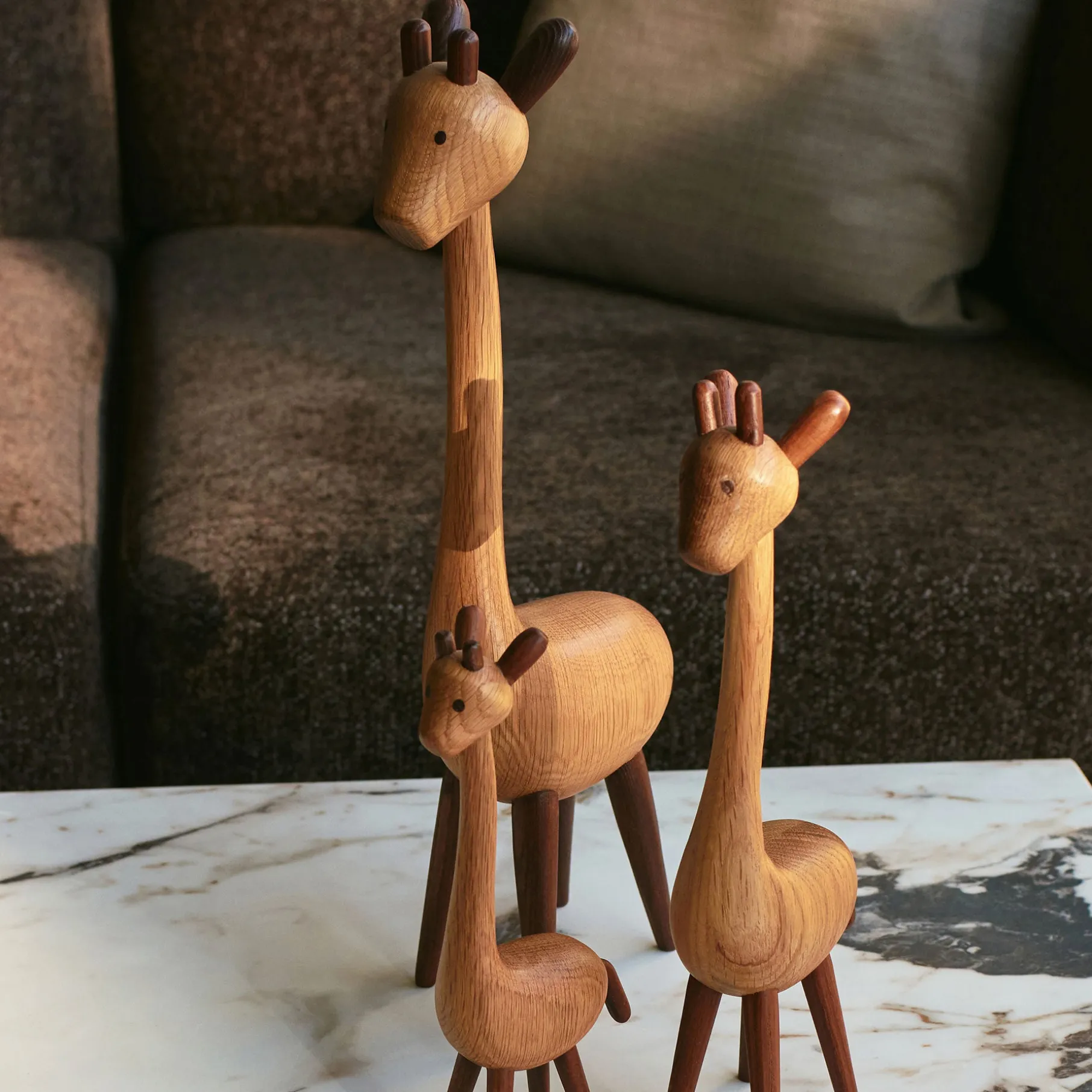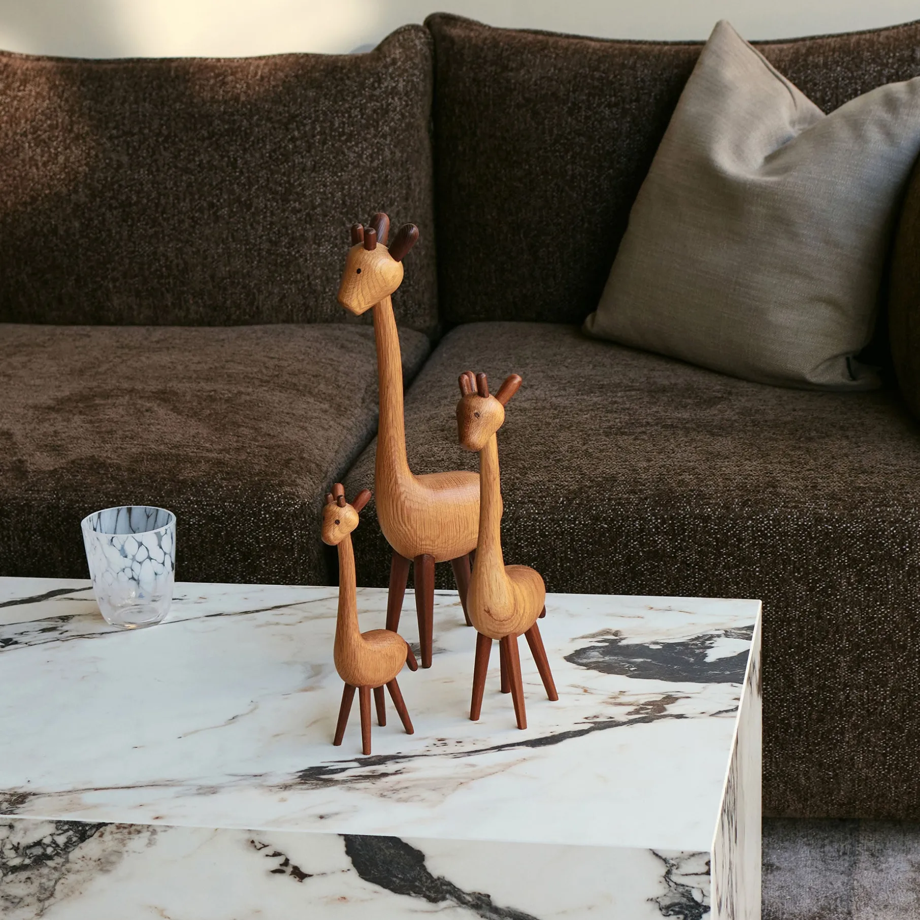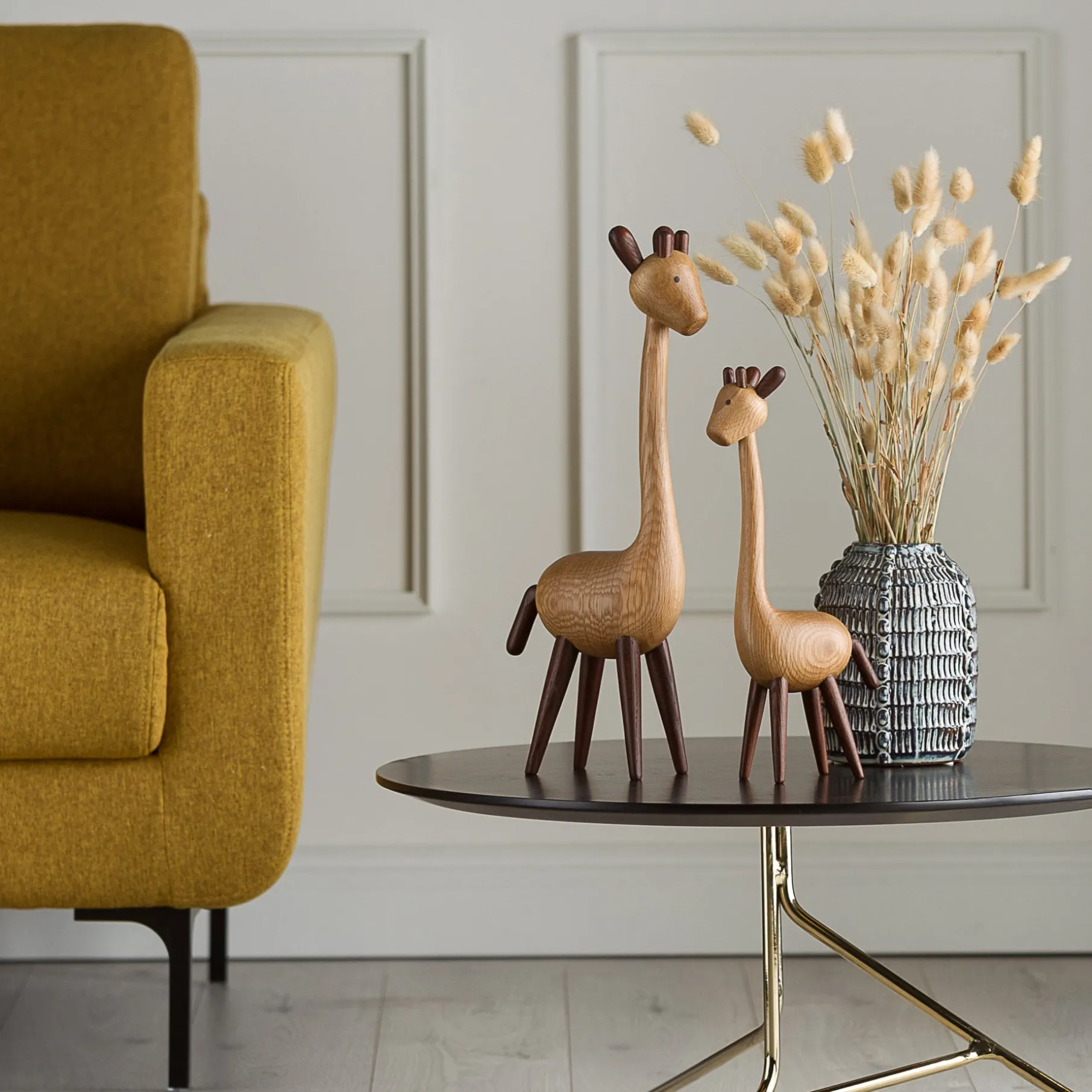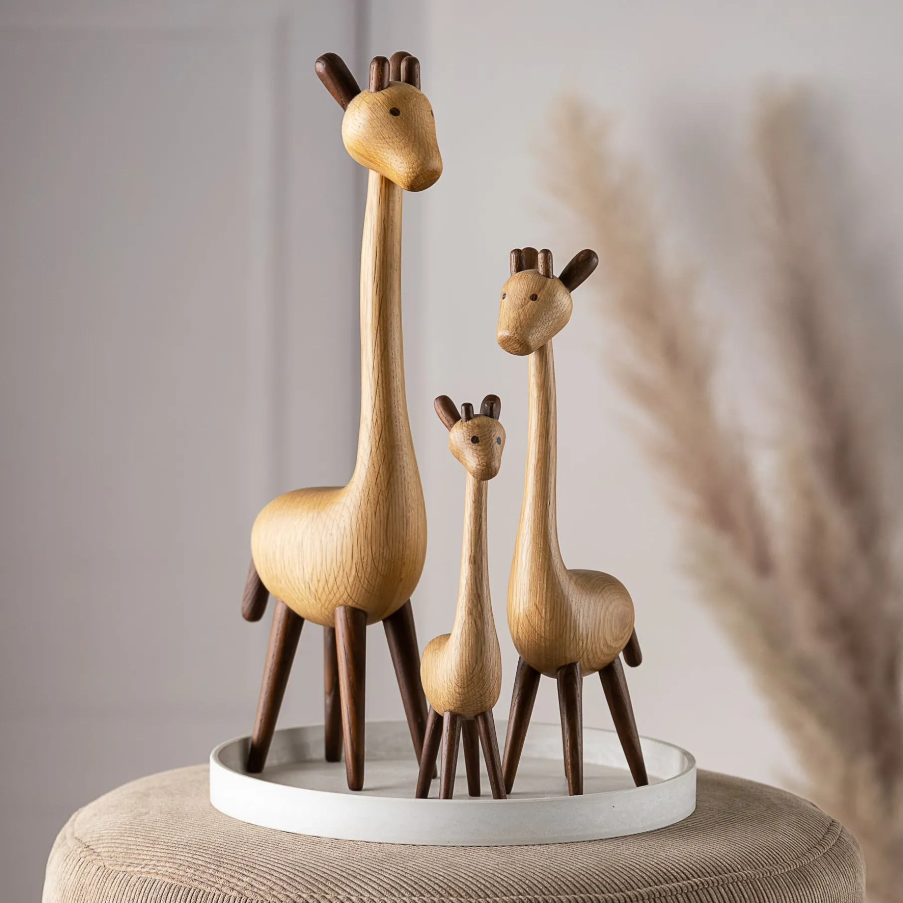 Selvom giraffen holder hovedet højt og virker som om, at den går med hovedet i skyerne, har den dog stadig begge sine lange ben på jorden. Giraffen er nemlig også fuld af ro, varme og medfølelse, da den med sin næsten seks meter lange krop har det største hjerte af alle landdyr. Giraffen er derfor både blid, varm og målrettet, hvilket gør den perfekt som gave eller følgesvend i indretningen, hvor den kan minde os om at følge vores drømme.