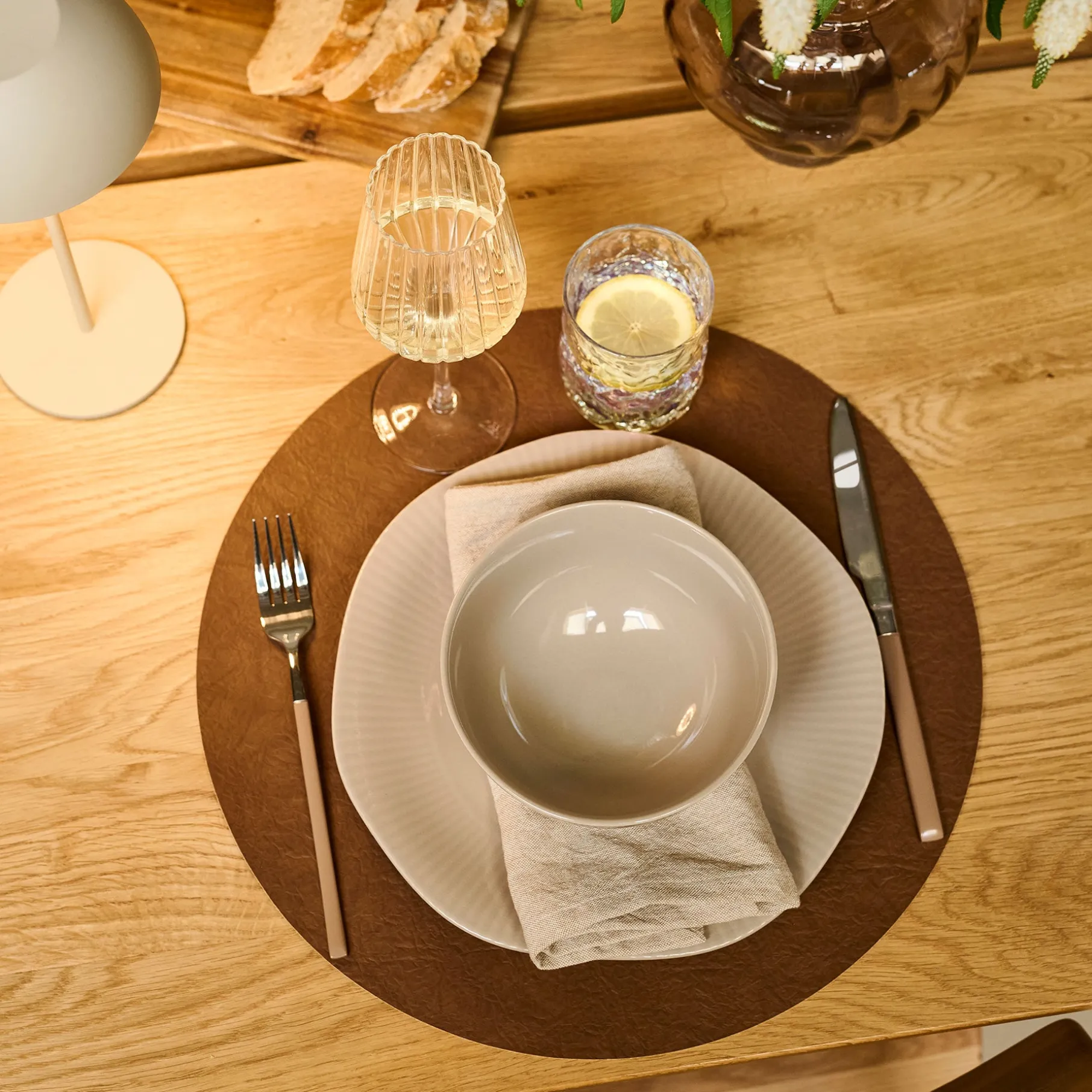 Opgrader din borddækning med den elegante og alsidige Glasgow Vendbar Dækkeserviet. Med en diameter på 38 cm passer denne dækkeserviet perfekt til både hverdags- og festlige måltider og beskytter samtidig dit bord. Den vendbare funktion giver dig to stilerene designs i én, så du nemt kan skifte behov.