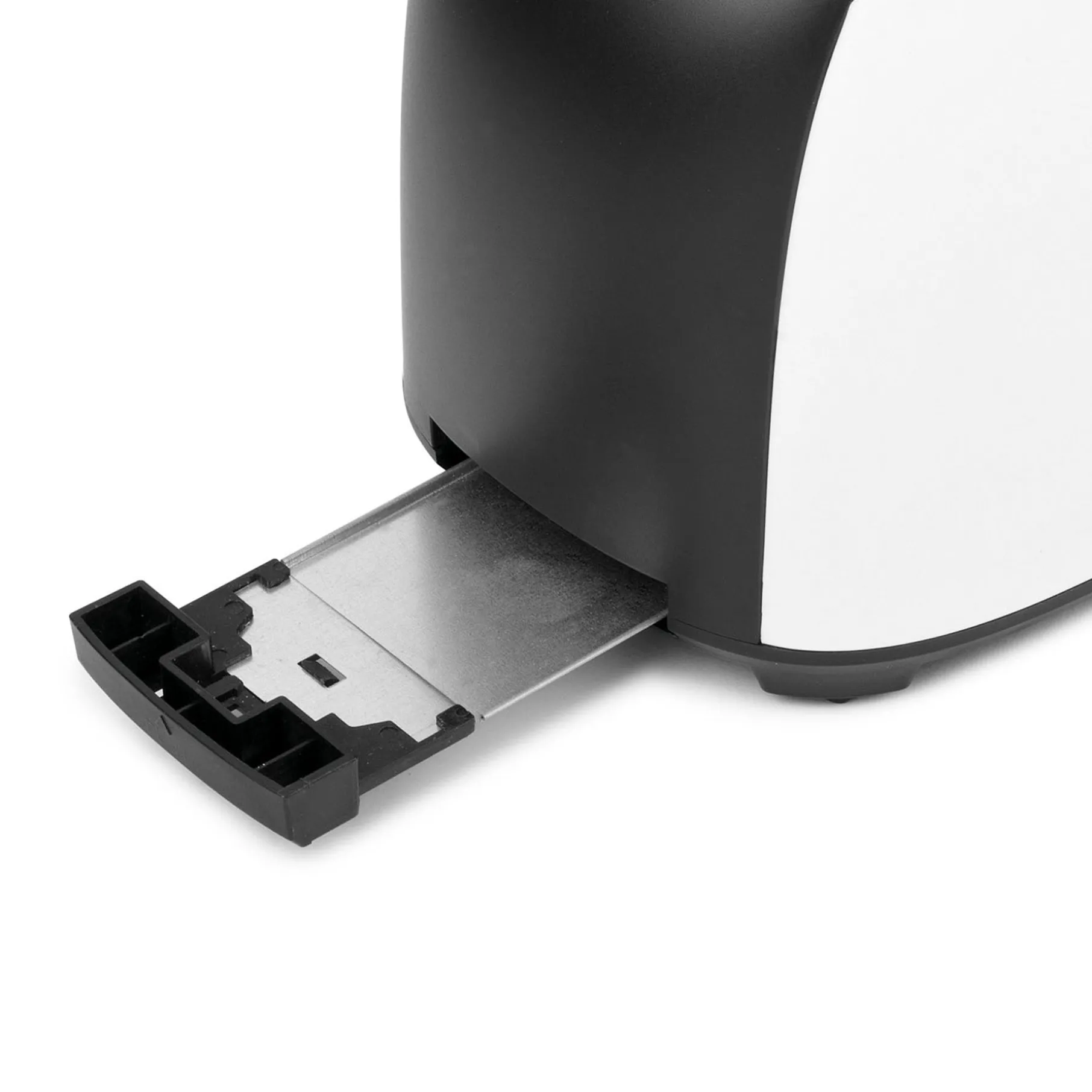 Brødristeren tilbyder to funktioner: traditionel ristning samt optøning, hvilket gør det muligt at riste frossent brød direkte. Modellen er udstyret med en timer og giver mulighed for at justere ristegraden i syv forskellige niveauer. De store, brede risterum gør den særligt velegnet til at riste to skiver brød ad gangen. En integreret krummebakke gør rengøringen enkel. Der medfølger to sandwichholdere i rustfrit stål, som kan bruges til at lave fyldte toast, hvor brødet ristes jævnt på begge sider.