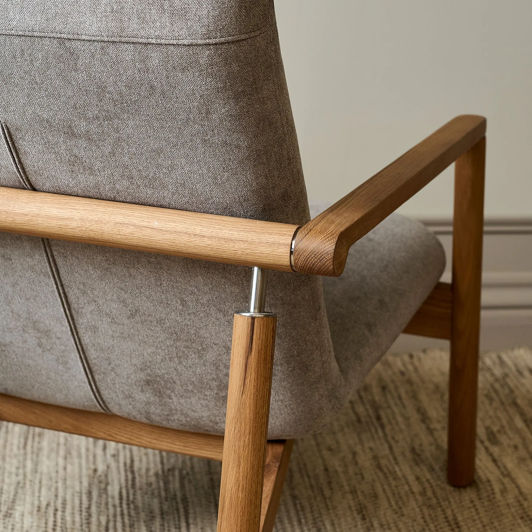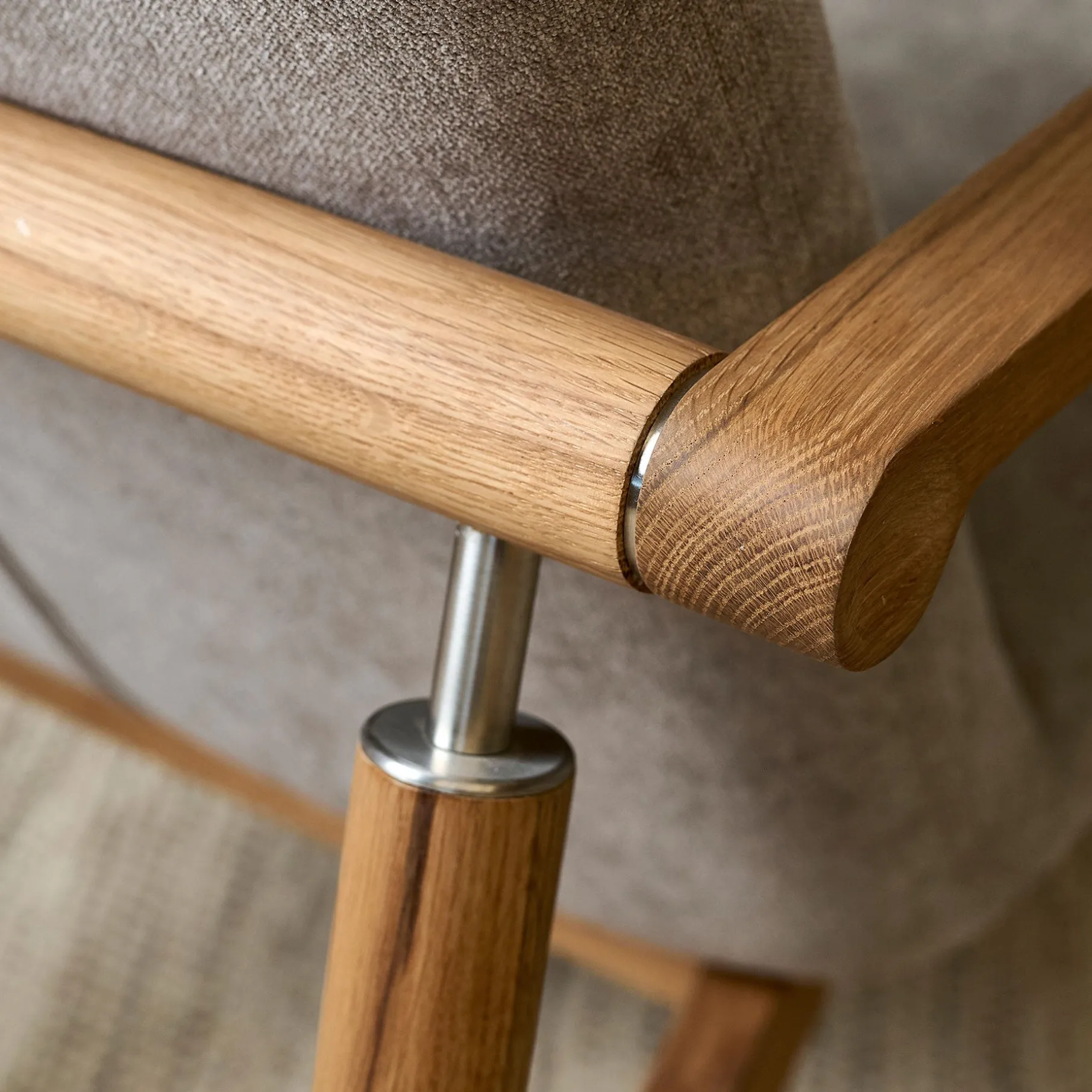- Stel i massiv egetræ: Det varme og naturlige træ understreger stolens organiske formsprog og sikrer lang holdbarhed.