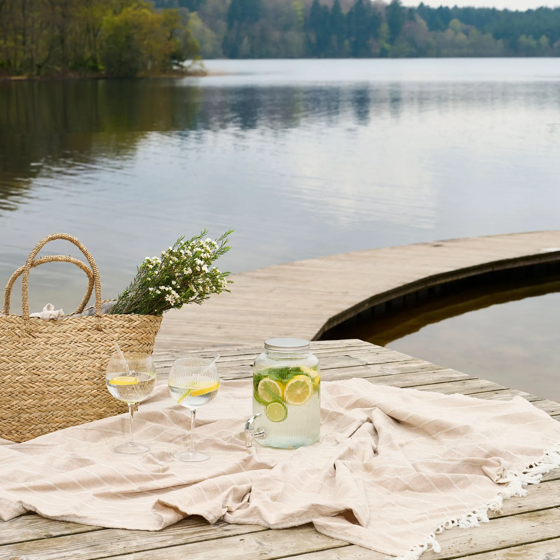 Dispenseren kan gøres ekstra dekorativ ved at tilføje friske mynteblade, isterninger og farverige citrusfrugter.