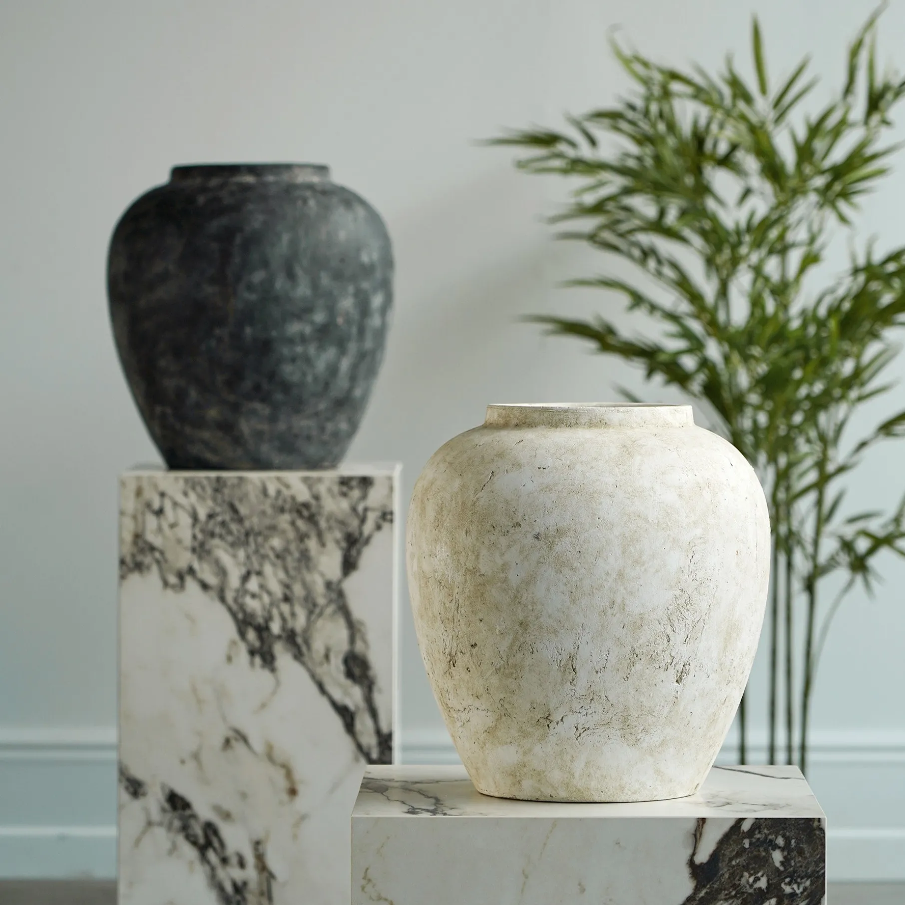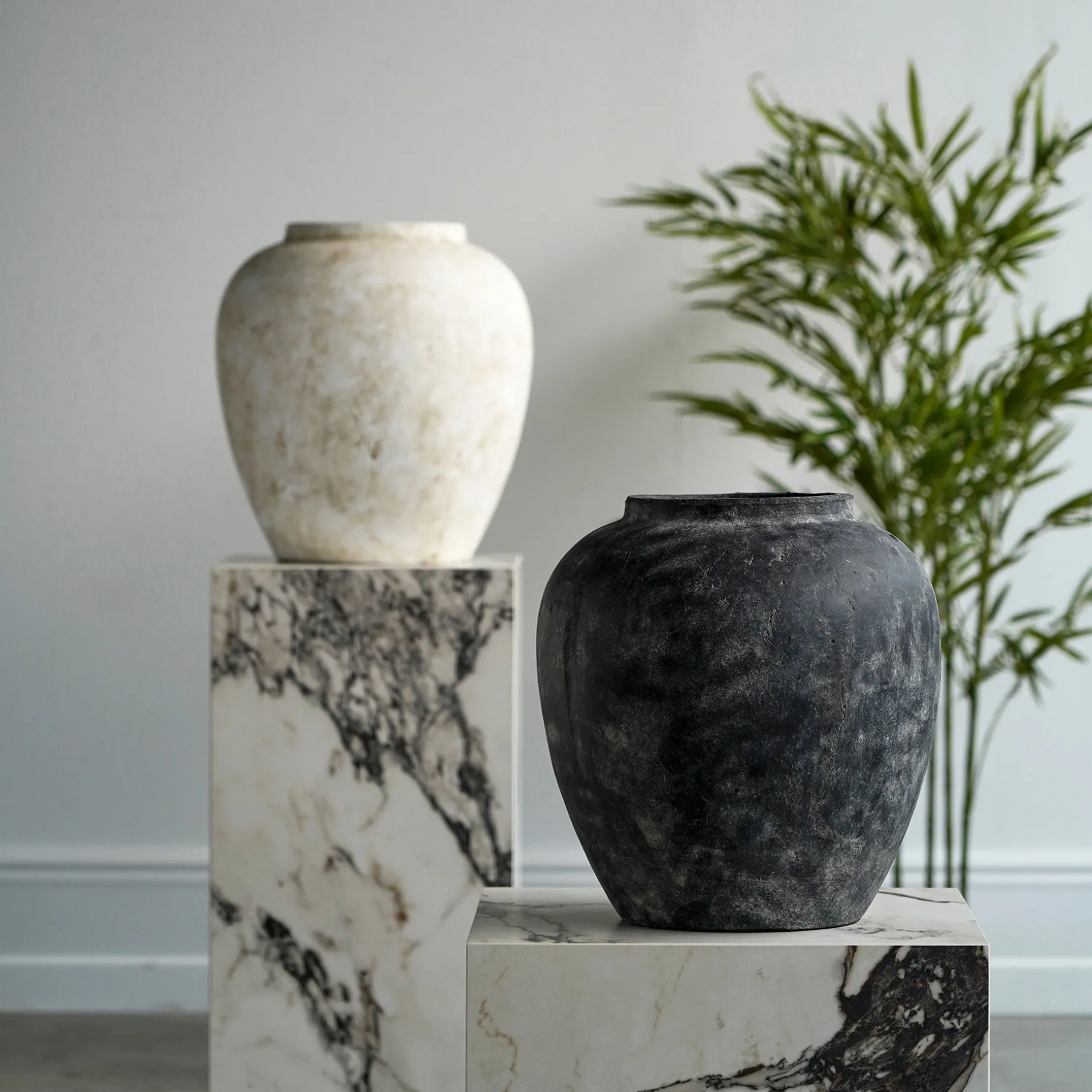Kairo er håndlavet i terracotta med en blød, organisk form og smukt patineret overflade. Den naturlige struktur giver et roligt og tidløst udtryk, der passer perfekt til både moderne og klassiske hjem.