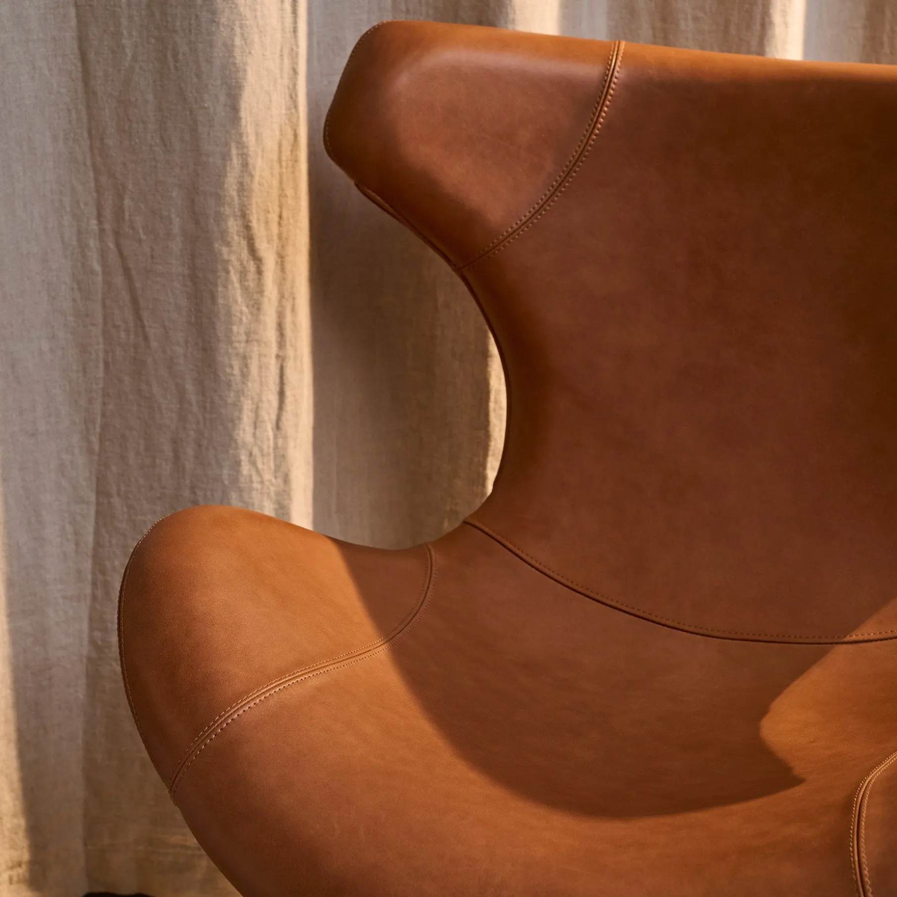 Forkæl dig selv med Kato loungestol i læder, en perfekt kombination af eksklusivt håndværk, moderne elegance og uovertruffen komfort. Med sit bløde semianilinlæder får stolen et autentisk vintage look, der tilfører varme og karakter til enhver indretning. Det buede design omfavner kroppen og sikrer en afslappende oplevelse, perfekt til lange aftener med en god bog eller en kop kaffe.