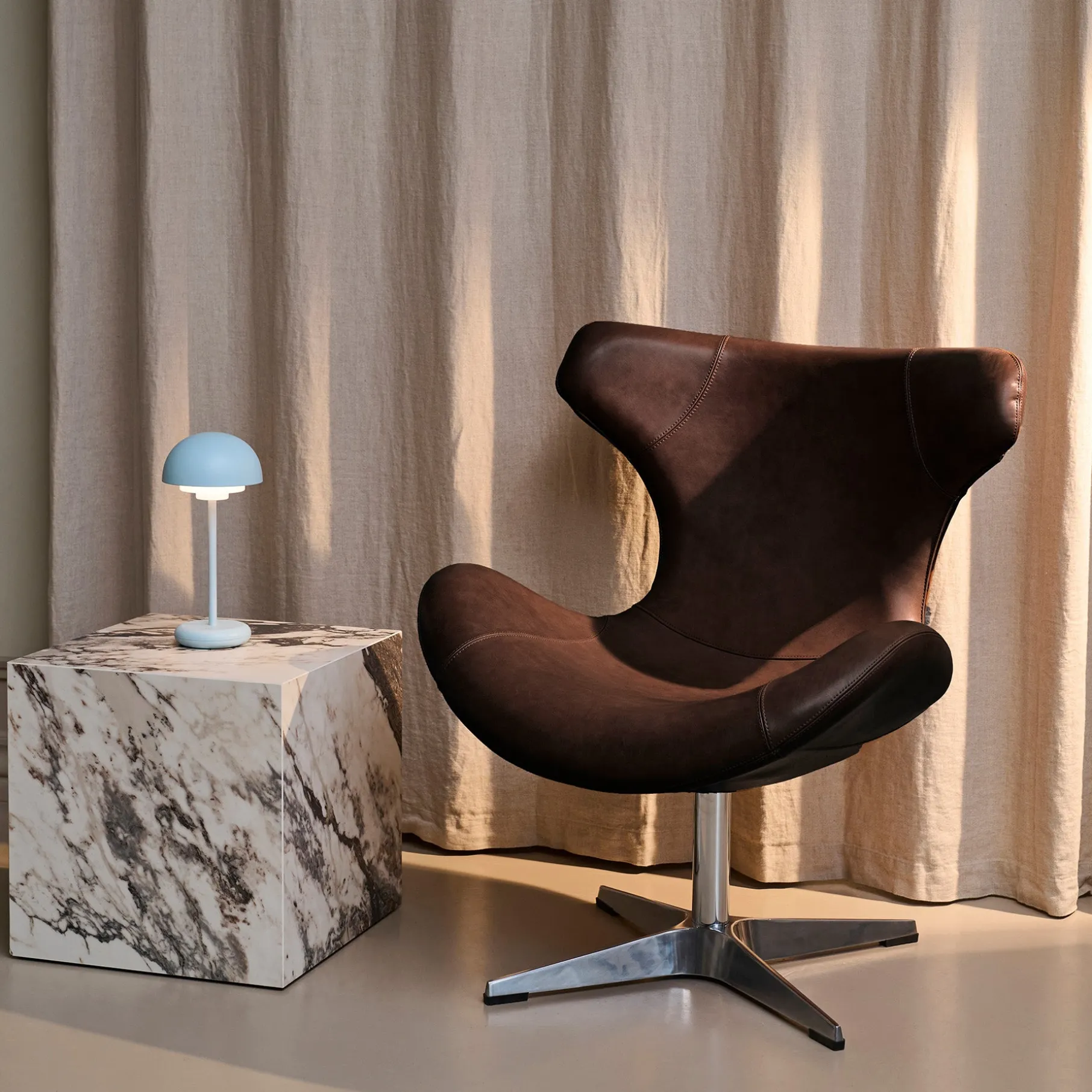Den drejelige chromesokkel tilføjer både funktionalitet og stil, hvilket gør stolen ideel til både stuen, loungemiljøet eller det eksklusive kontor. Kato stolen passer smukt ind i dit sofaarrangement, men fungerer også fantastisk i et par med et lille bord – skab din egen hyggelige loungeoase.