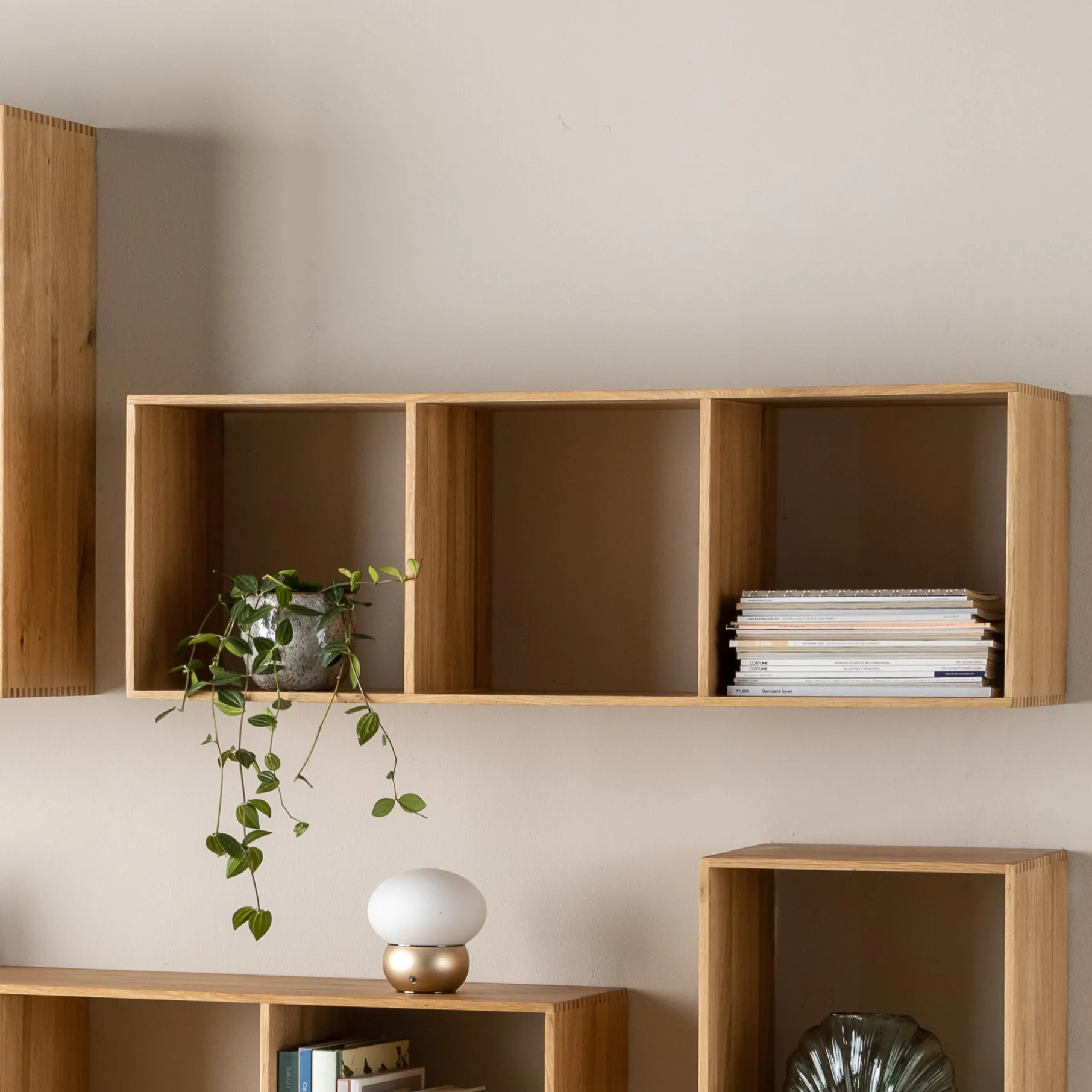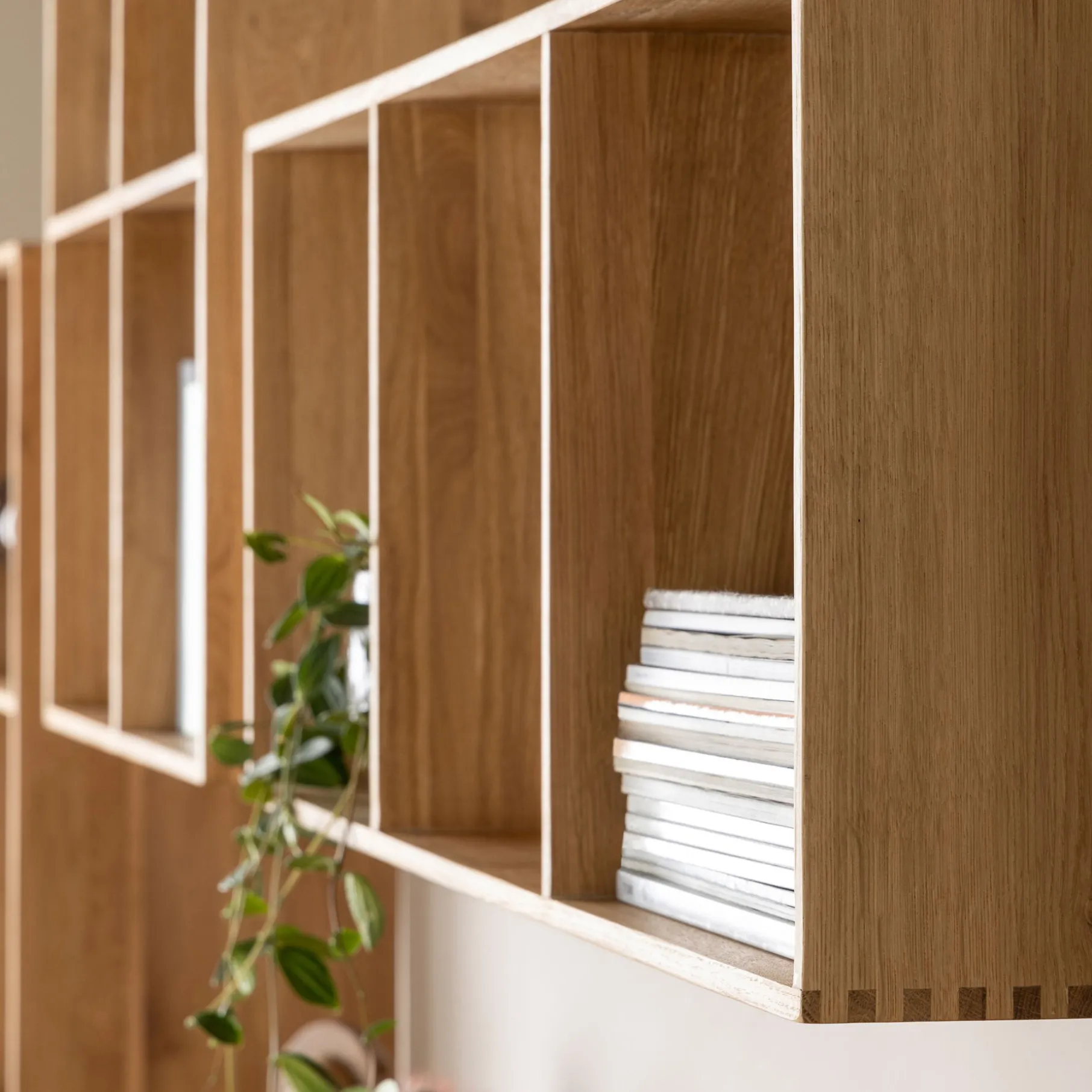 Reolerne er lavet i massivt FSC certificeret olieret egetræ. Samlingerne på reolerne er fingertappede, hvilket understreger de eksklusive snedker dyder.