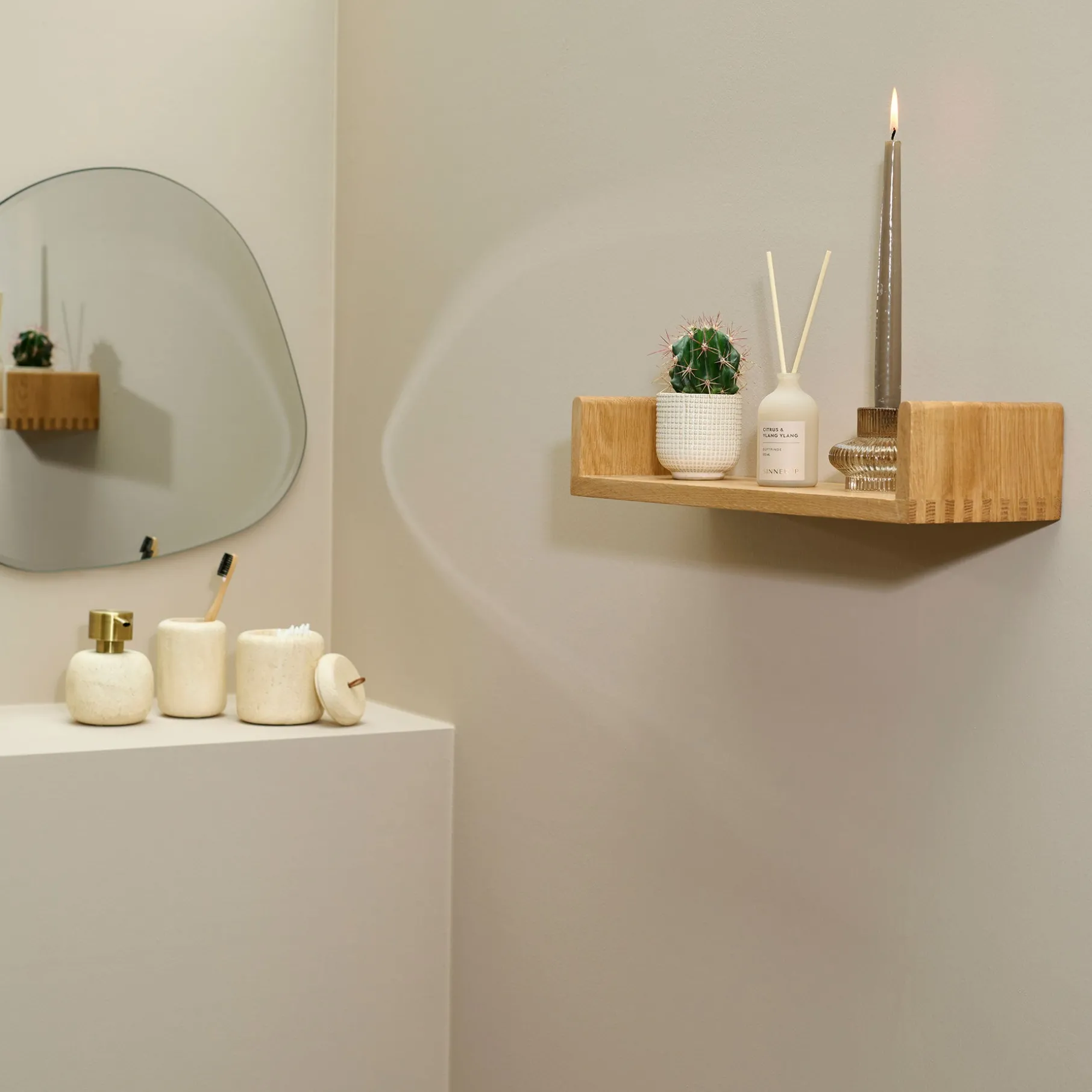 Den lave dybde på hylden, gør den nem af placere mange steder i hjemmet,