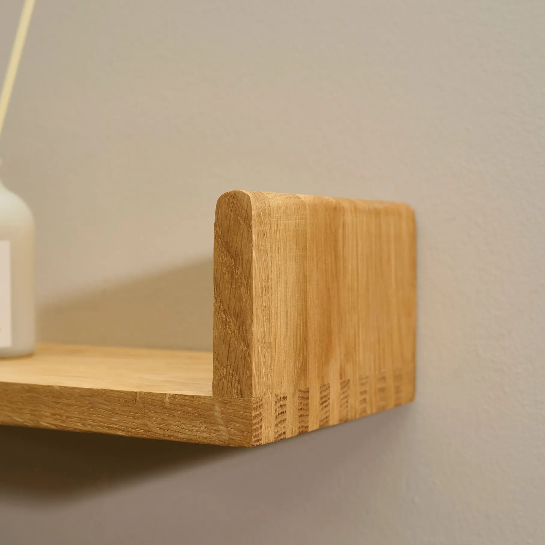 Denne U-hylde er lavet med høje sider, afrundede kanter og fingertappede samlinger