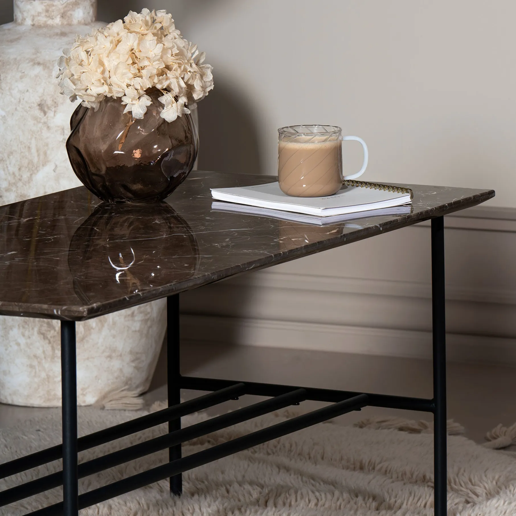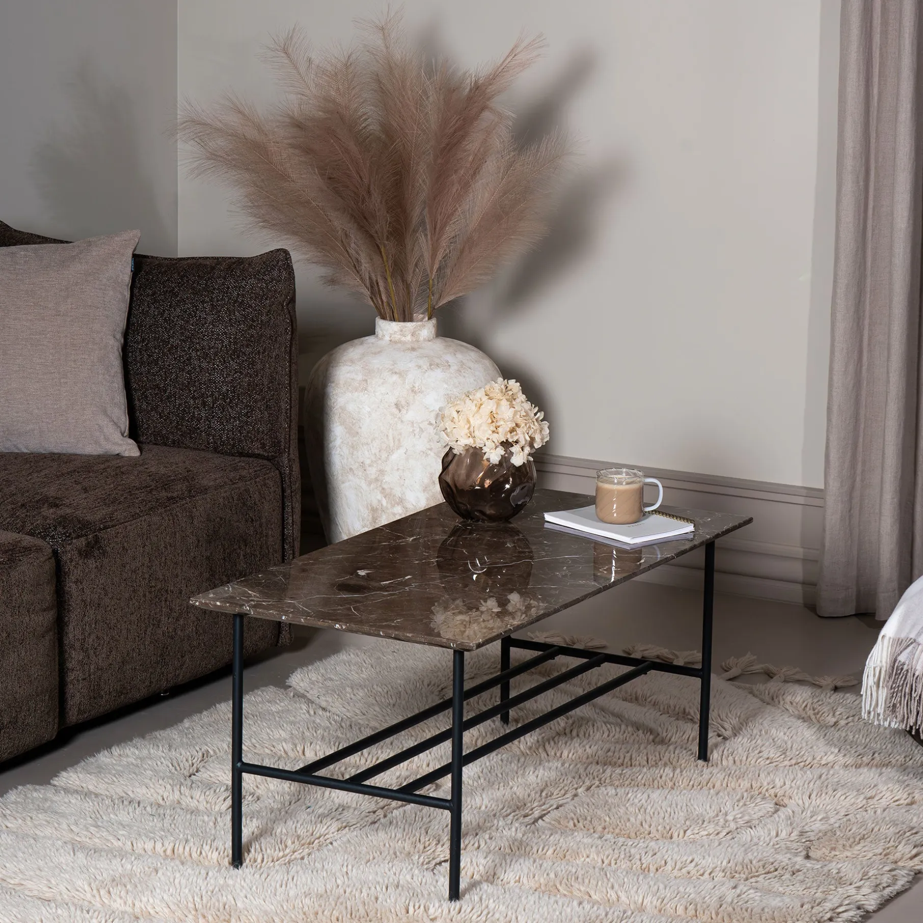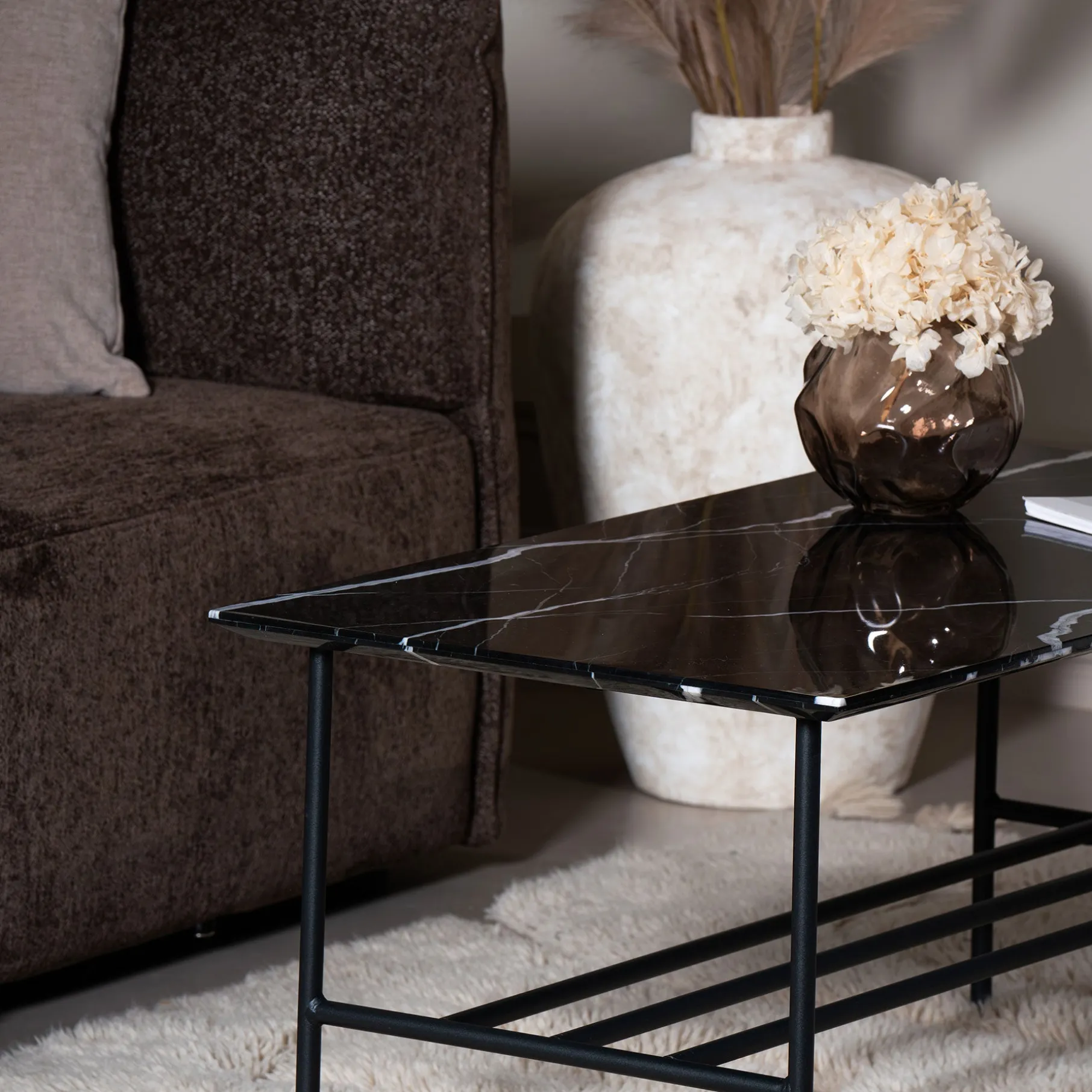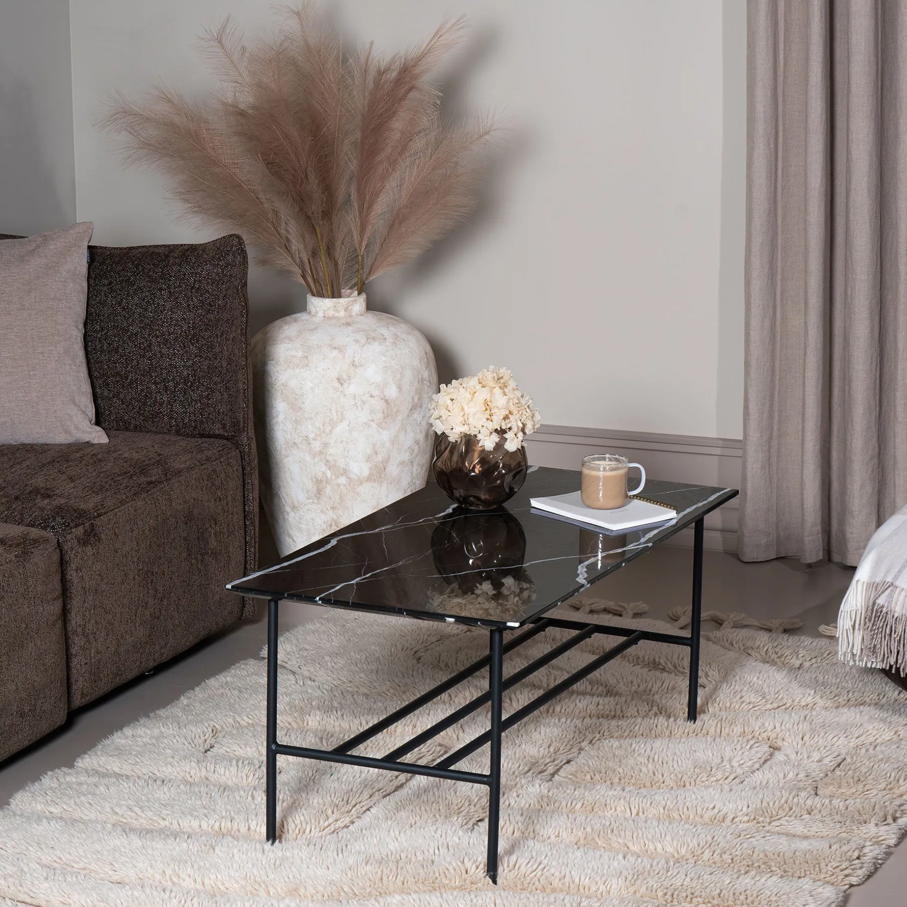 Stilrent sofabord tegnet i minimalistiske rene linjer. Bordpladen er i marmor og har en skrå afskæring på kanten, som giver sofabordet en lethed.