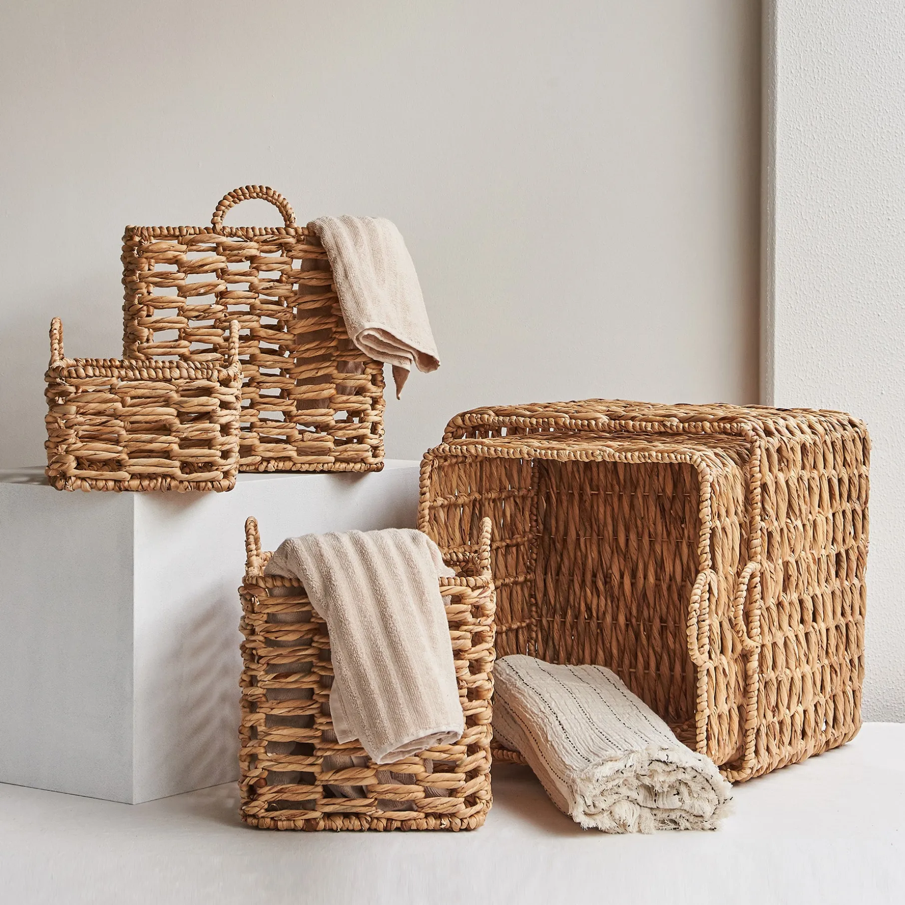 Livia-serien består af firkantede kurve i flere forskellige størrelser – perfekte til dig, der ønsker at organisere hjemmet uden at gå på kompromis med æstetikken. De er håndflettet i et let og holdbart naturmateriale, der giver kurvene et varmt og levende udtryk. Det fine mønster tilføjer et dekorativt element, som gør dem oplagte at have stående fremme i alt fra stue til soveværelse. Brug dem til opbevaring af tekstiler, legetøj, magasiner eller hverdagens småting – og skab en rolig og indbydende stemning i hjemmet.