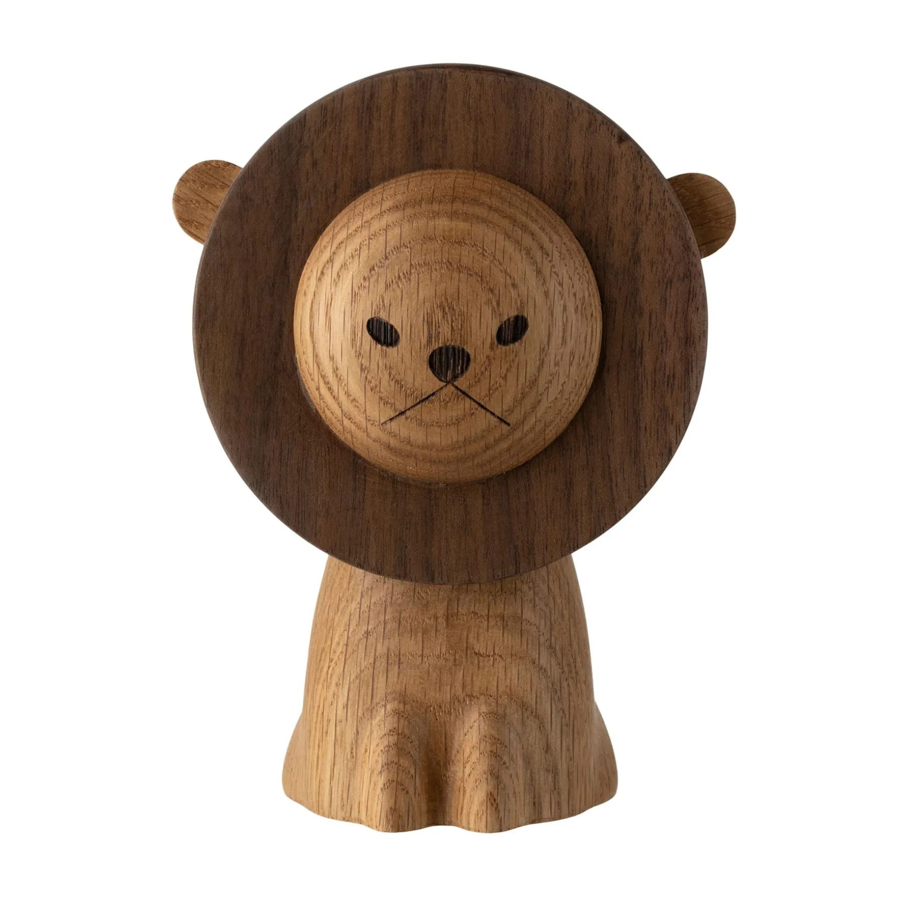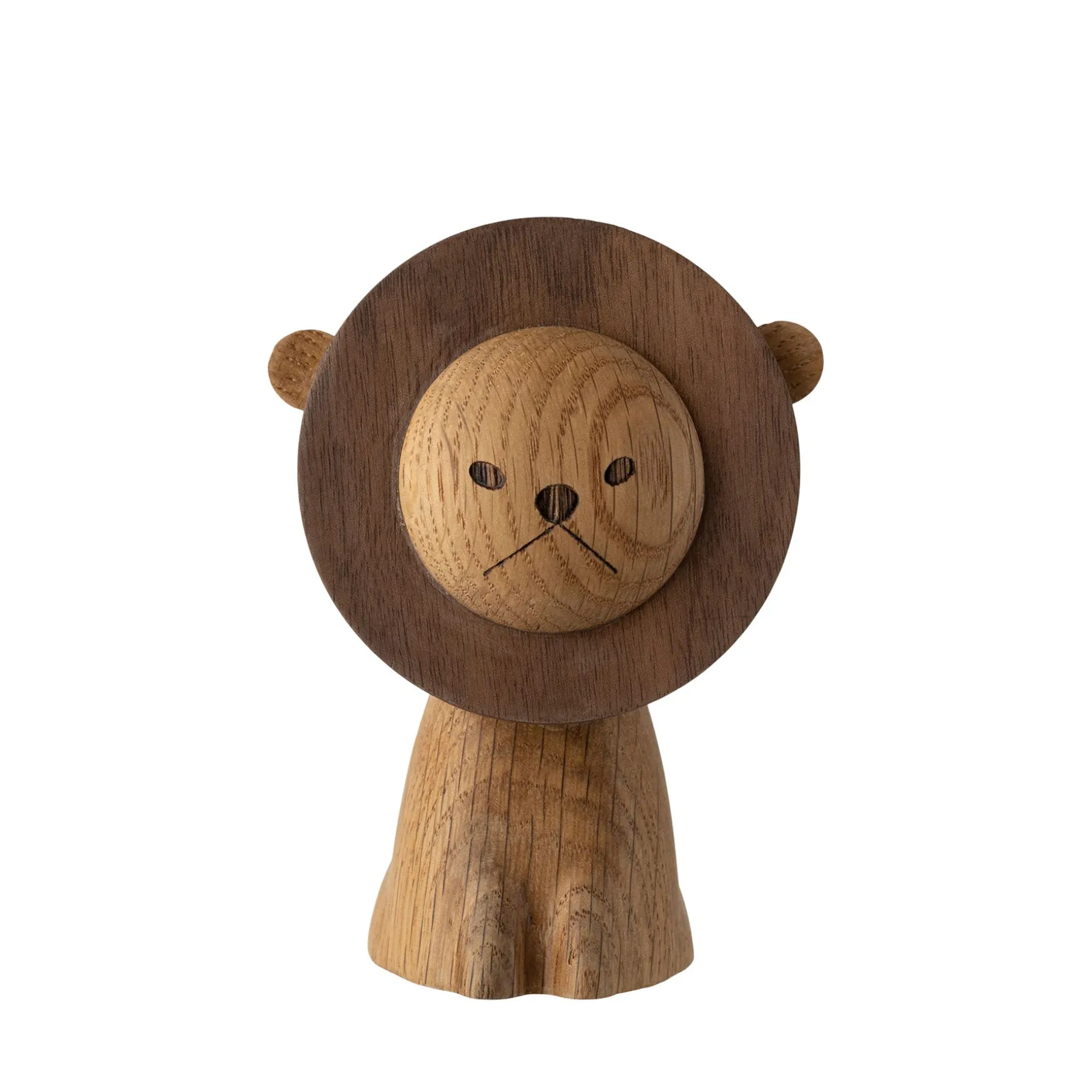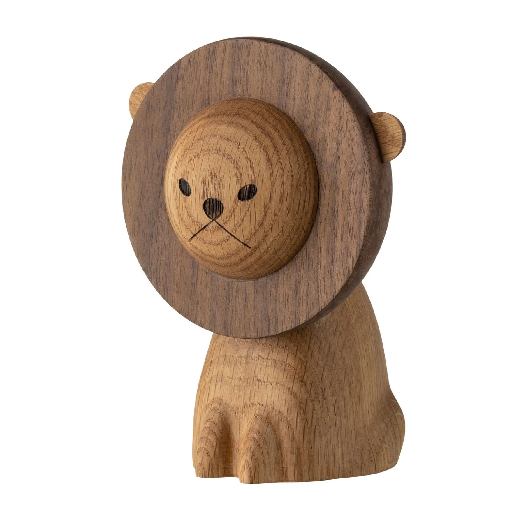 De fine organiske detaljer samt bløde former er et af kendetegnene for de nye trædyr. Lad løven stå alene på reolen eller i vindueskarmen, eller placer den på fødselsdagsbordet og med det samme er der skabt en stemning.